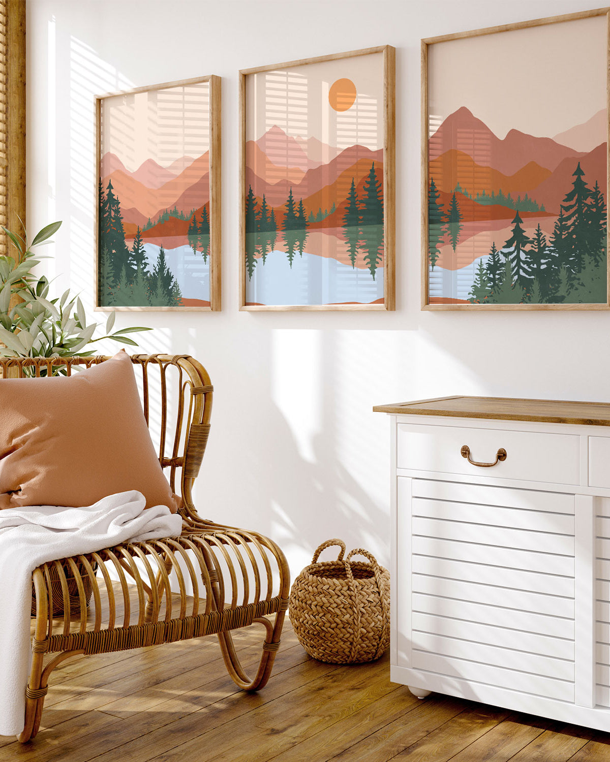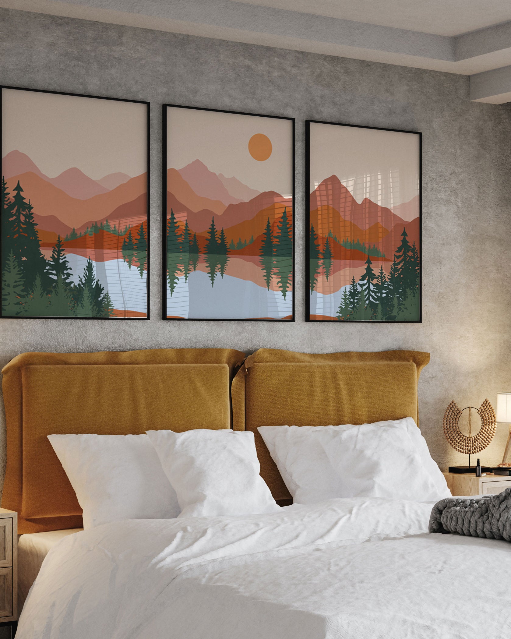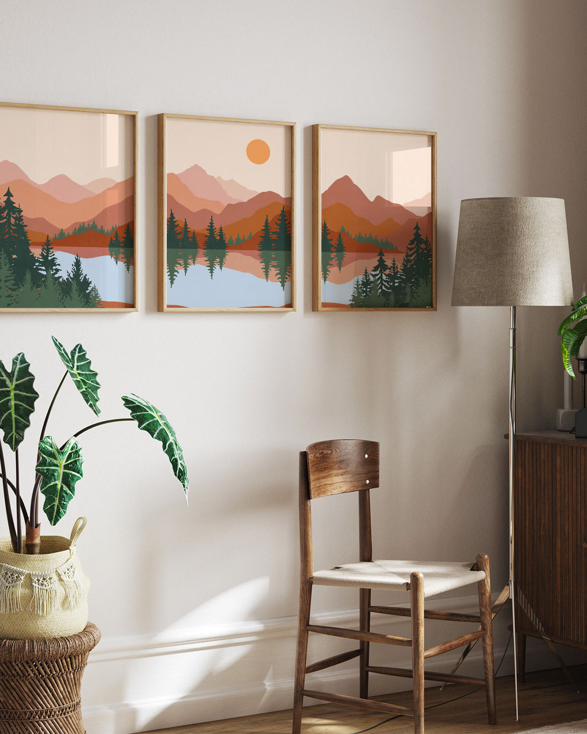 Abstract Mountain Lake Trees Set of 3 Set Of Three Paintings