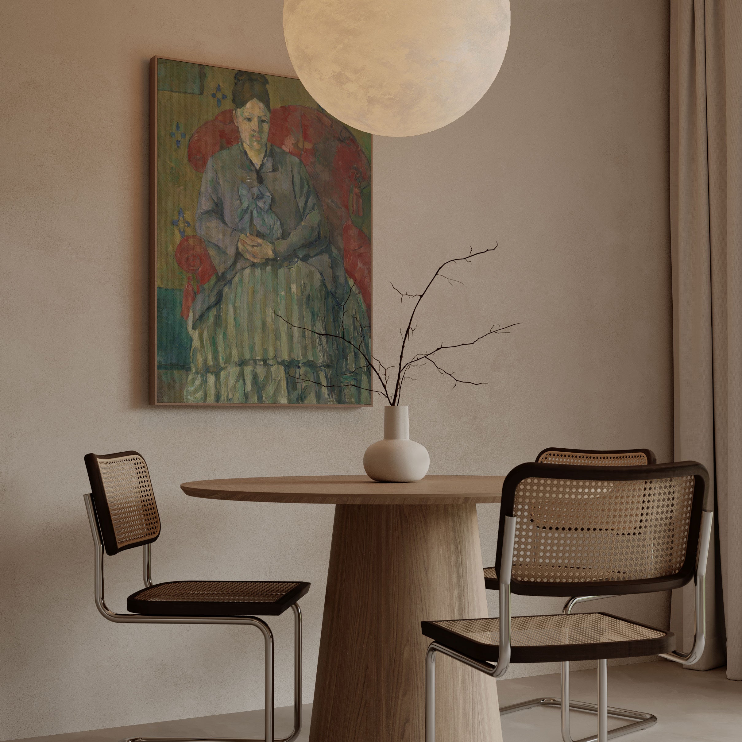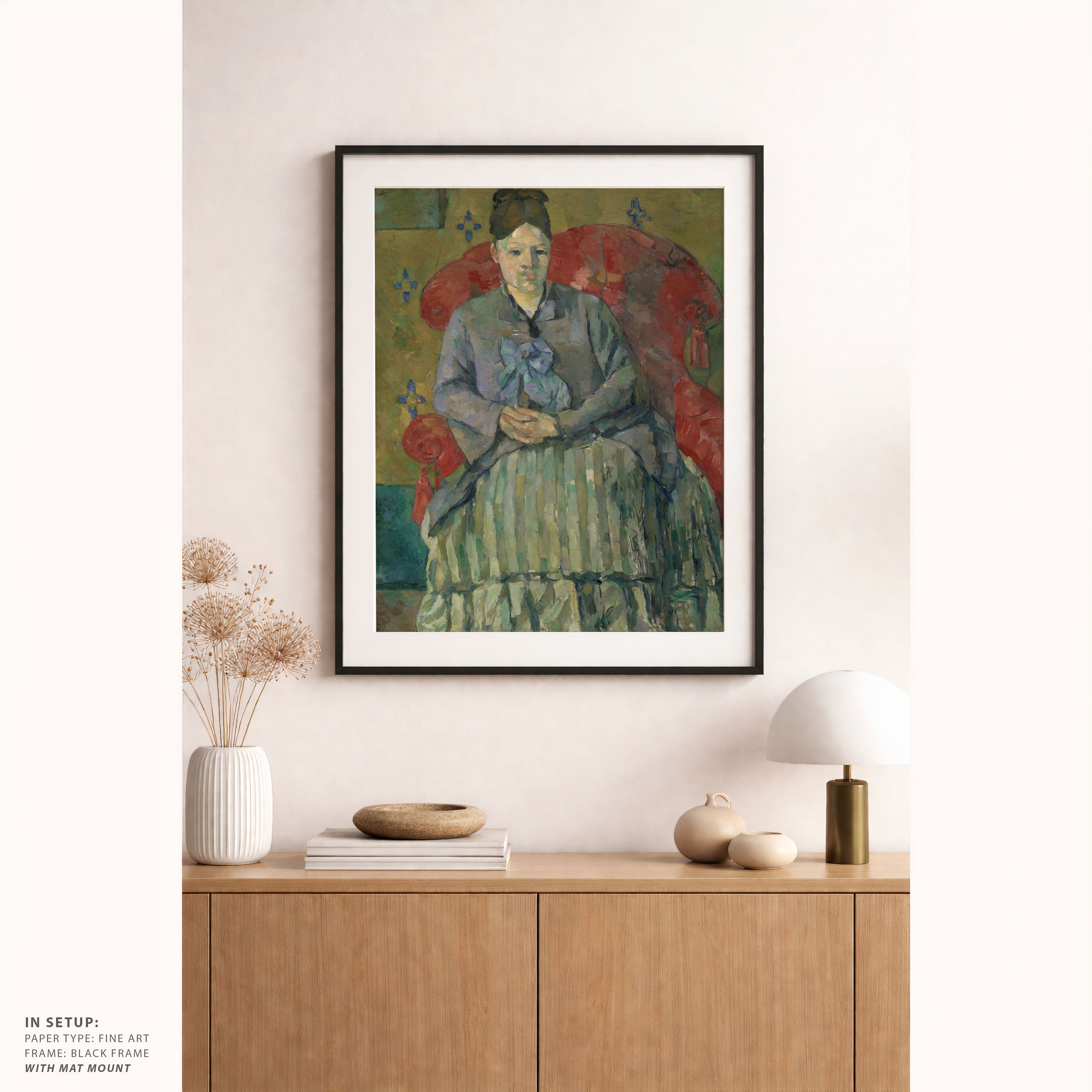 Bring elegance and harmony into your space with this beautiful artwork, Madame Cézanne in a Red Armchair, from our Paul Cézanne Painting Prints Collection. This piece reveals a quiet yet compelling interplay of rich tones, structured forms, and expressive brushwork that captures both warmth and depth. Subtle painting details, classic fine-art textures, and thoughtfully layered color transitions enhance its enduring charm. Its balanced composition and contemplative atmosphere introduce a refined and artistic presence to any interior, enriching your space with the timeless poetry and distinctive vision of this iconic Cézanne-inspired artistic style.