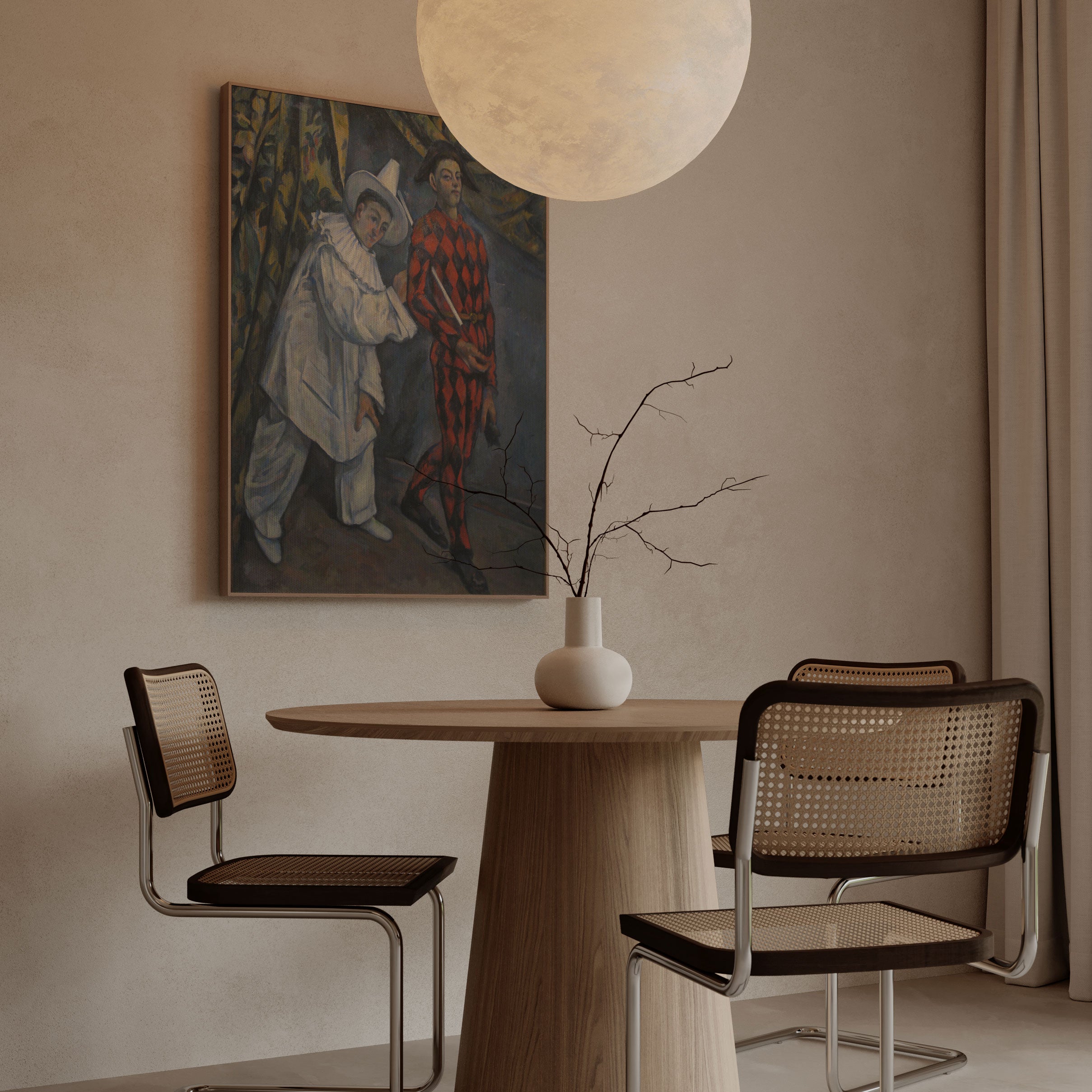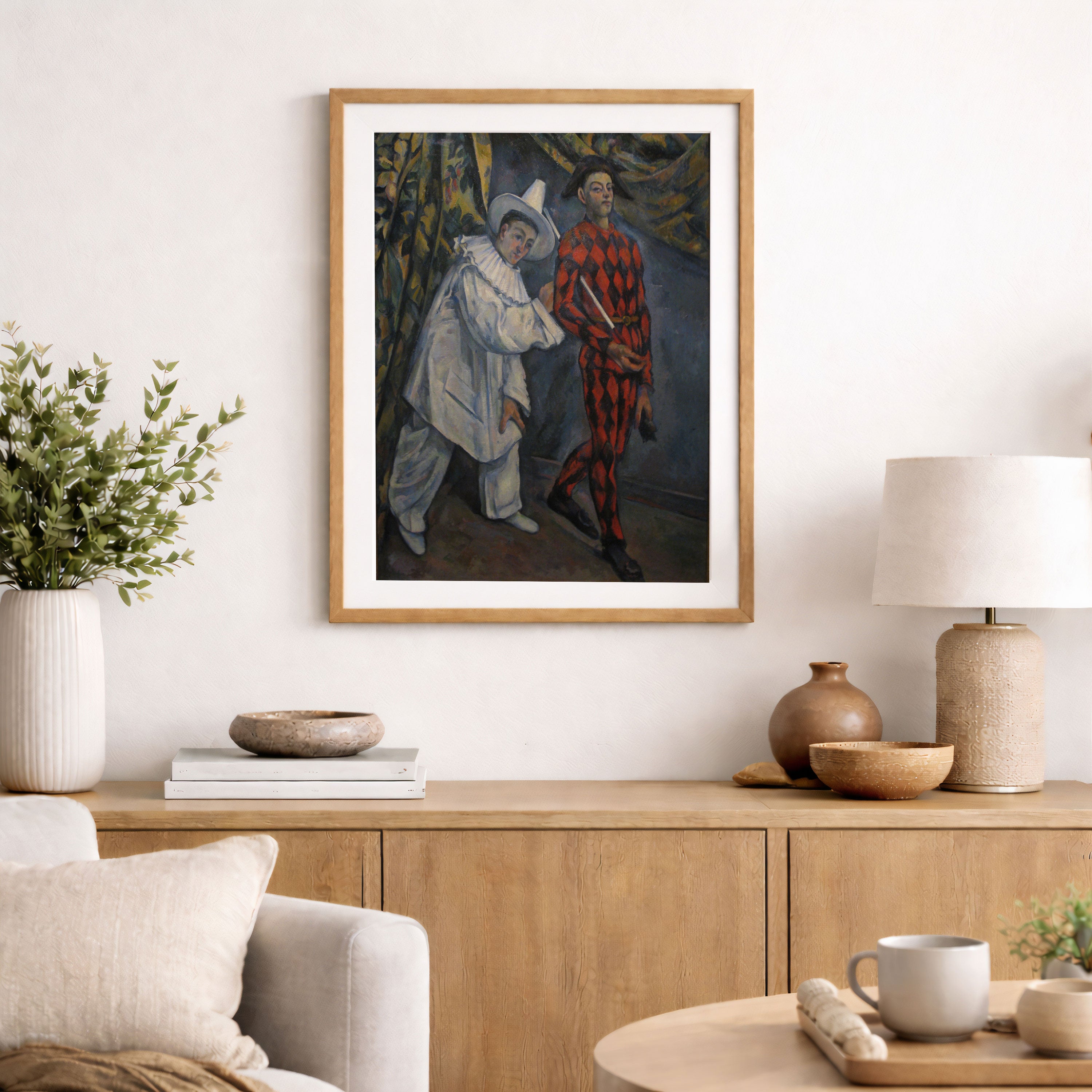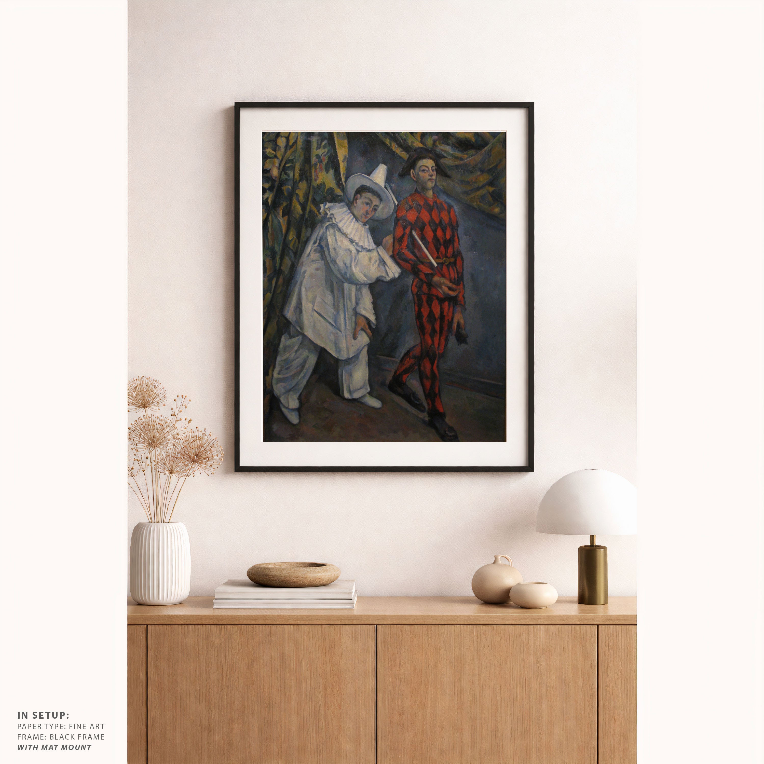 Bring elegance and harmony into your space with this beautiful artwork, Pierrot and Harlequin, from our Paul Cézanne Painting Prints Collection. This piece reveals a quiet yet compelling interplay of rich tones, structured forms, and expressive brushwork that captures both warmth and depth. Subtle painting details, classic fine-art textures, and thoughtfully layered color transitions enhance its enduring charm. Its balanced composition and contemplative atmosphere introduce a refined and artistic presence to any interior, enriching your space with the timeless poetry and distinctive vision of this iconic Cézanne-inspired artistic style.