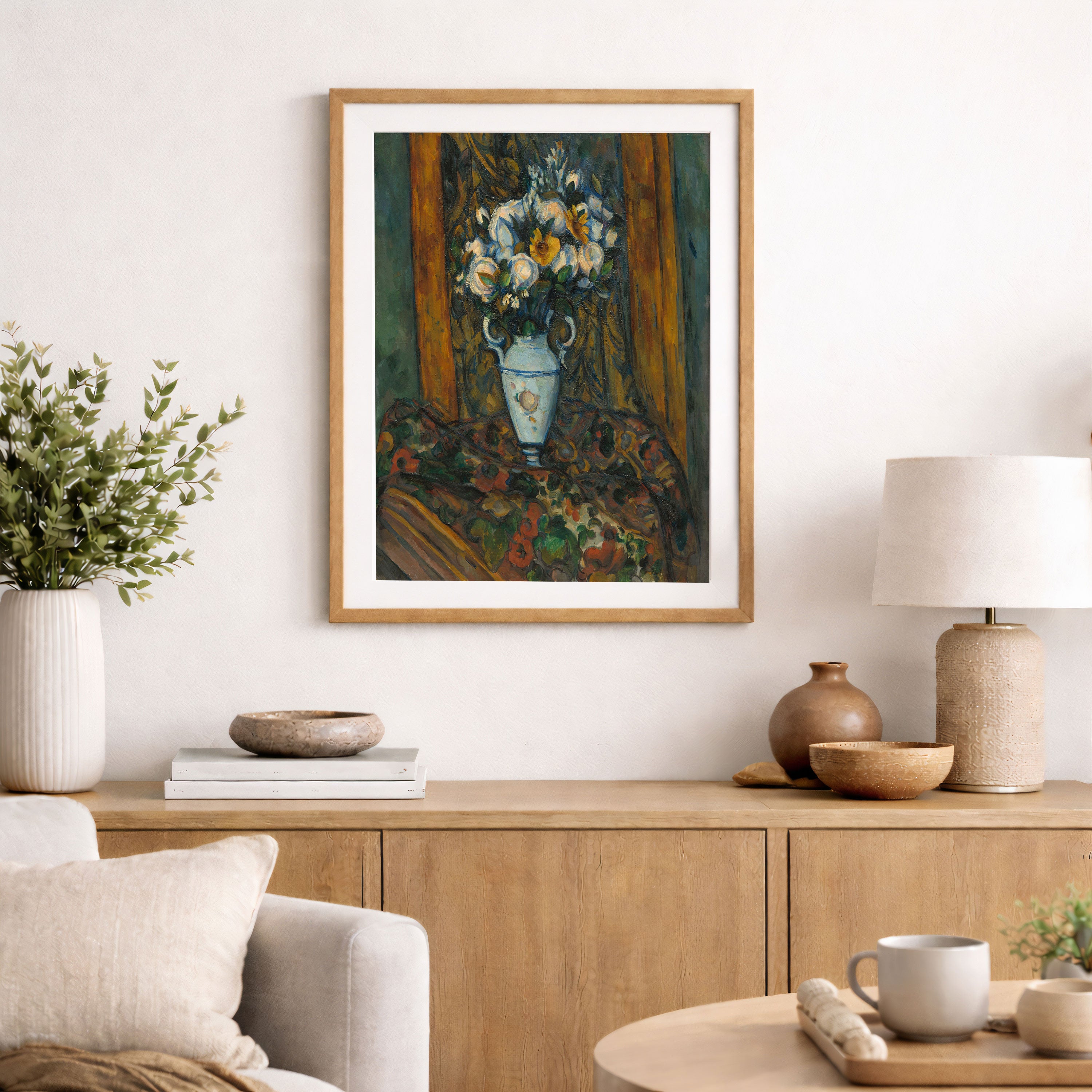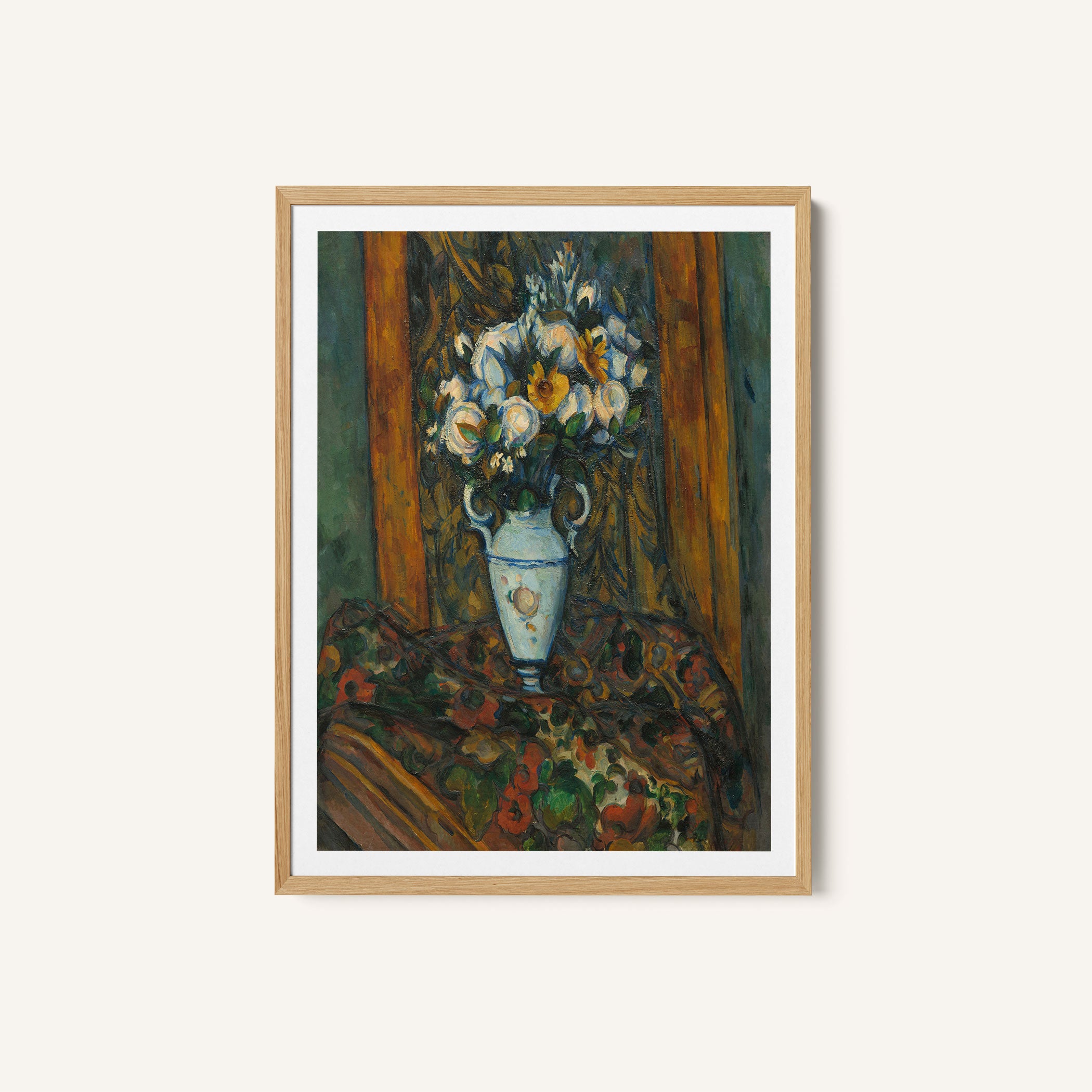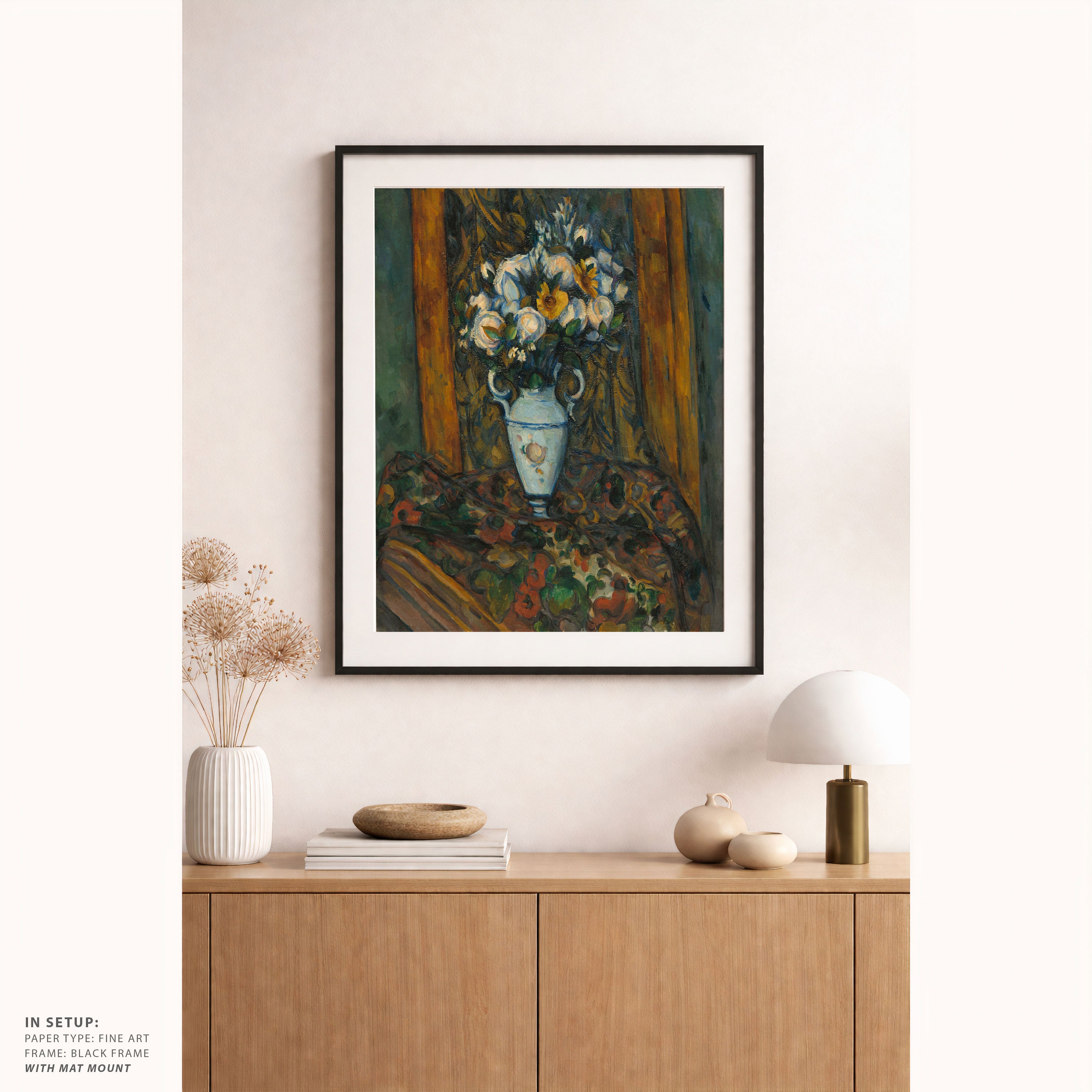 Bring elegance and harmony into your space with this beautiful artwork, Vase of Flowers, from our Paul Cézanne Painting Prints Collection. This piece reveals a quiet yet compelling interplay of rich tones, structured forms, and expressive brushwork that captures both warmth and depth. Subtle painting details, classic fine-art textures, and thoughtfully layered color transitions enhance its enduring charm. Its balanced composition and contemplative atmosphere introduce a refined and artistic presence to any interior, enriching your space with the timeless poetry and distinctive vision of this iconic Cézanne-inspired artistic style.