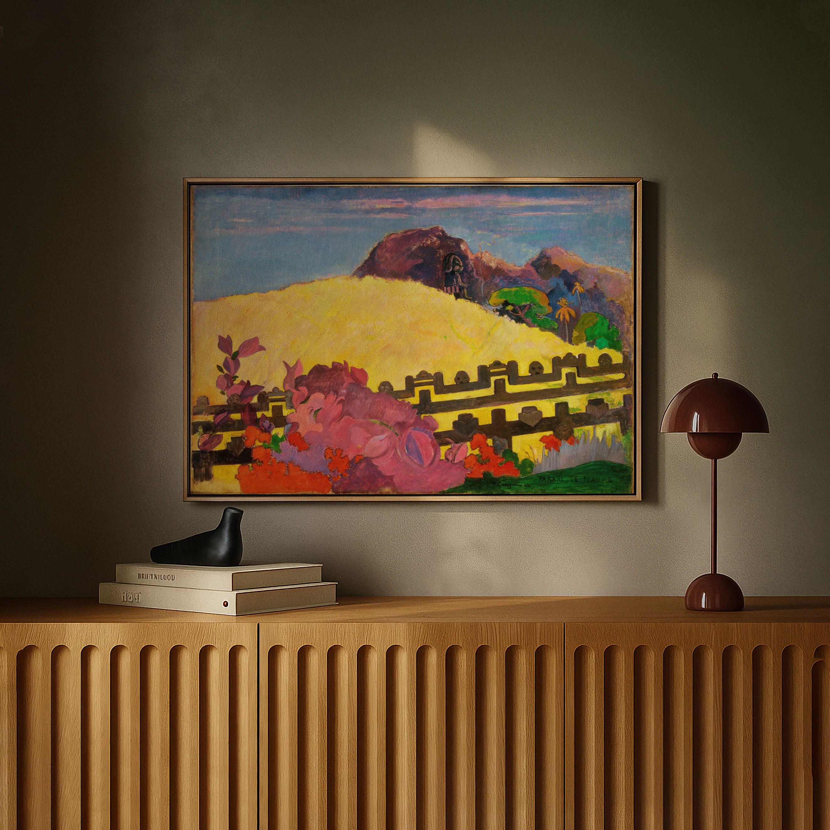 Bring elegance and harmony into your space with this beautiful artwork, Sanctuary of the Radiant Mountain, from our Paul Gauguin Art Prints Collection. This piece reveals a quiet yet compelling interplay of rich tones, gentle shapes, and expressive brushwork that captures both warmth and depth. Subtle painting details, classic art textures, and refined color transitions enhance its enduring charm. Its balanced contrasts and serene atmosphere introduce a thoughtful and artistic presence to any interior, enriching your space with the timeless poetry of this iconic artistic style.