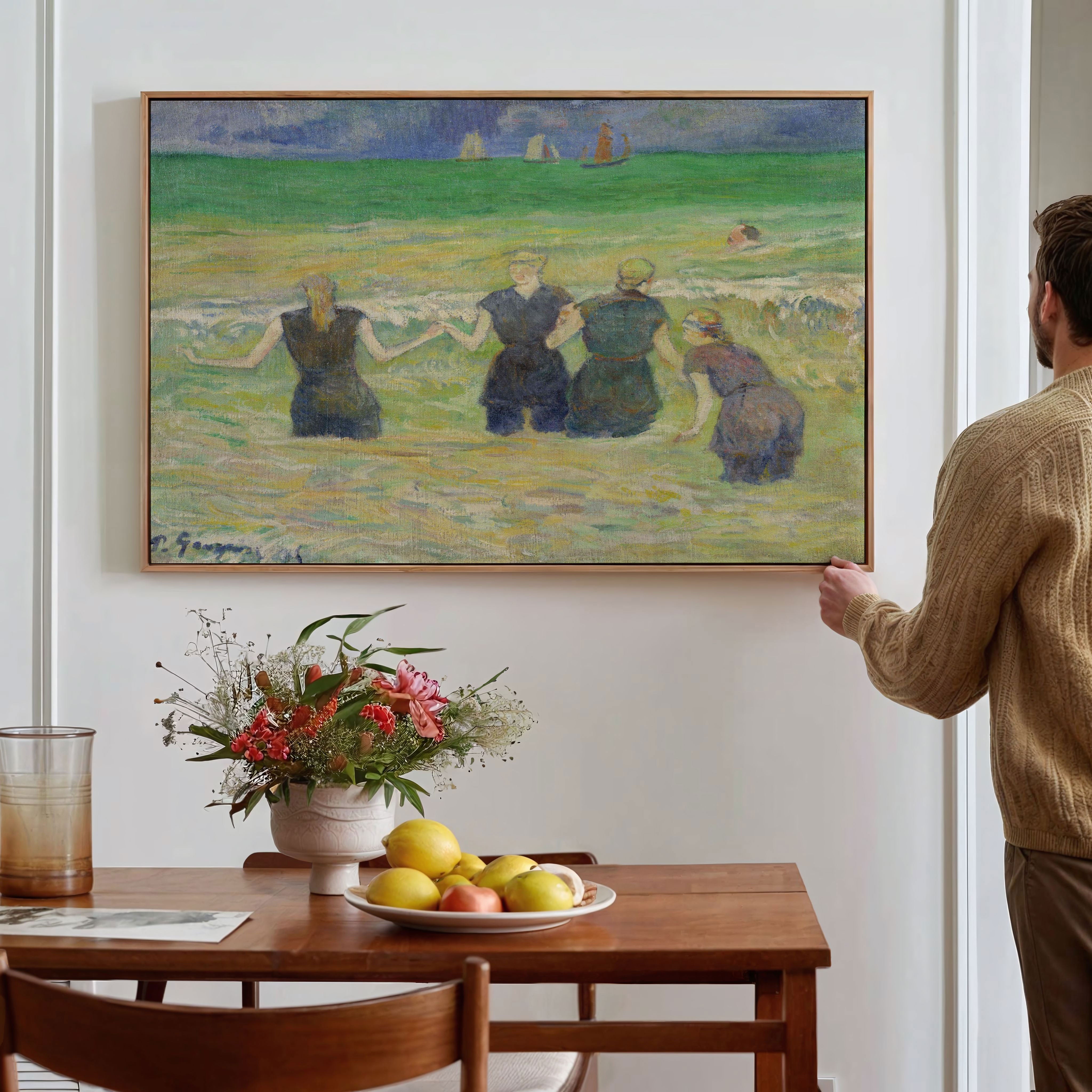 Bring elegance and harmony into your space with this beautiful artwork, Women Bathing, from our Paul Gauguin Art Prints Collection. This piece reveals a quiet yet compelling interplay of rich tones, gentle shapes, and expressive brushwork that captures both warmth and depth. Subtle painting details, classic art textures, and refined color transitions enhance its enduring charm. Its balanced contrasts and serene atmosphere introduce a thoughtful and artistic presence to any interior, enriching your space with the timeless poetry of this iconic artistic style.