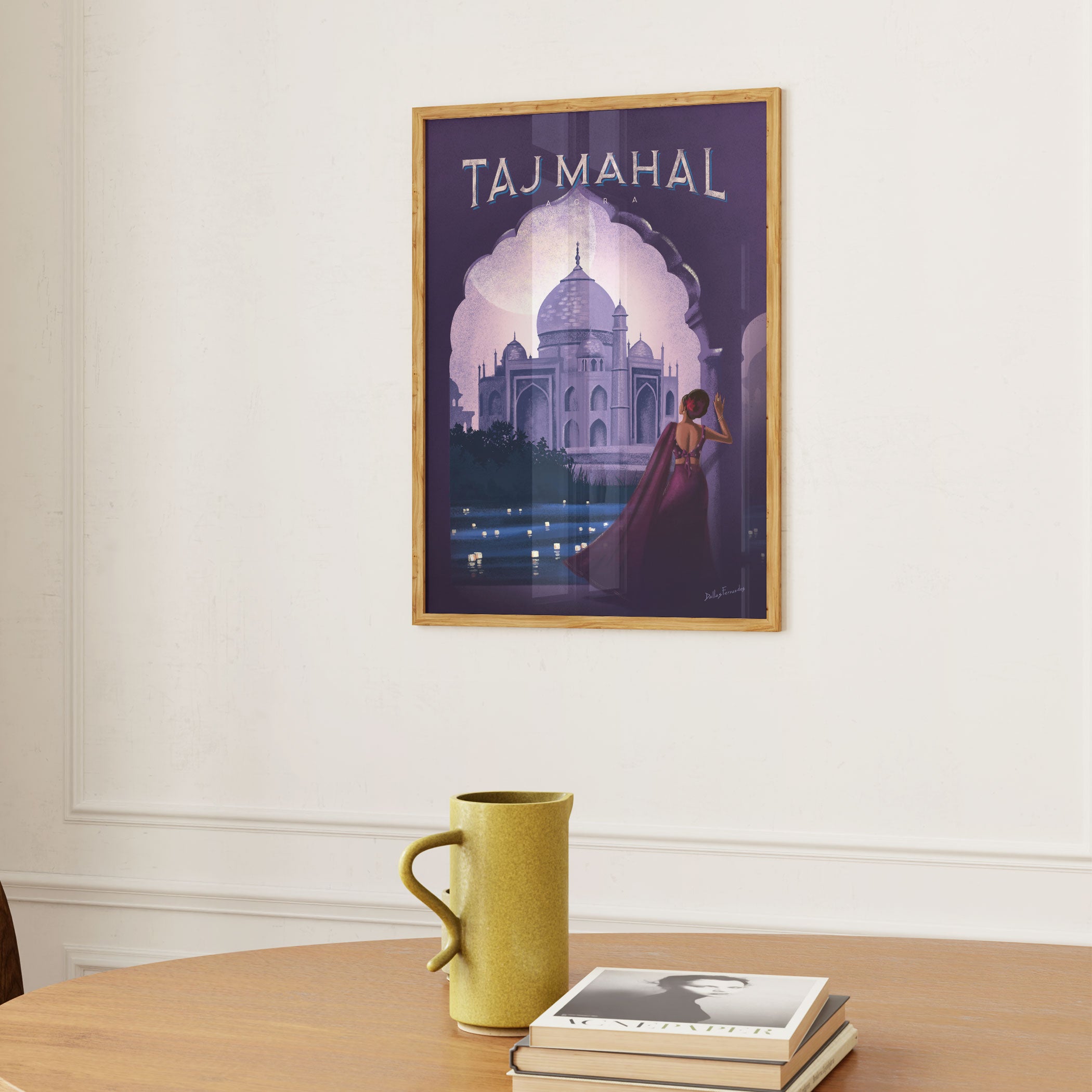 Bring refined nostalgia and urban elegance into your space with this beautiful artwork, Taj, from our Dallas Fernandes Art Prints Collection. This distinctive art style highlights iconic cityscapes, celebrated landmarks, coastal views, architectural marvels, and everyday urban moments through balanced compositions, muted yet expressive color palettes, and a refined vintage poster aesthetic. Blending modern illustration with classic travel-art charm, each piece captures the spirit of the city, evoking memories, movement, and visual storytelling. Perfect for living rooms, bedrooms, offices, studios, cafés, and contemporary interiors, this curated city-inspired wall art adds character, sophistication, and a timeless cultural narrative to any space.