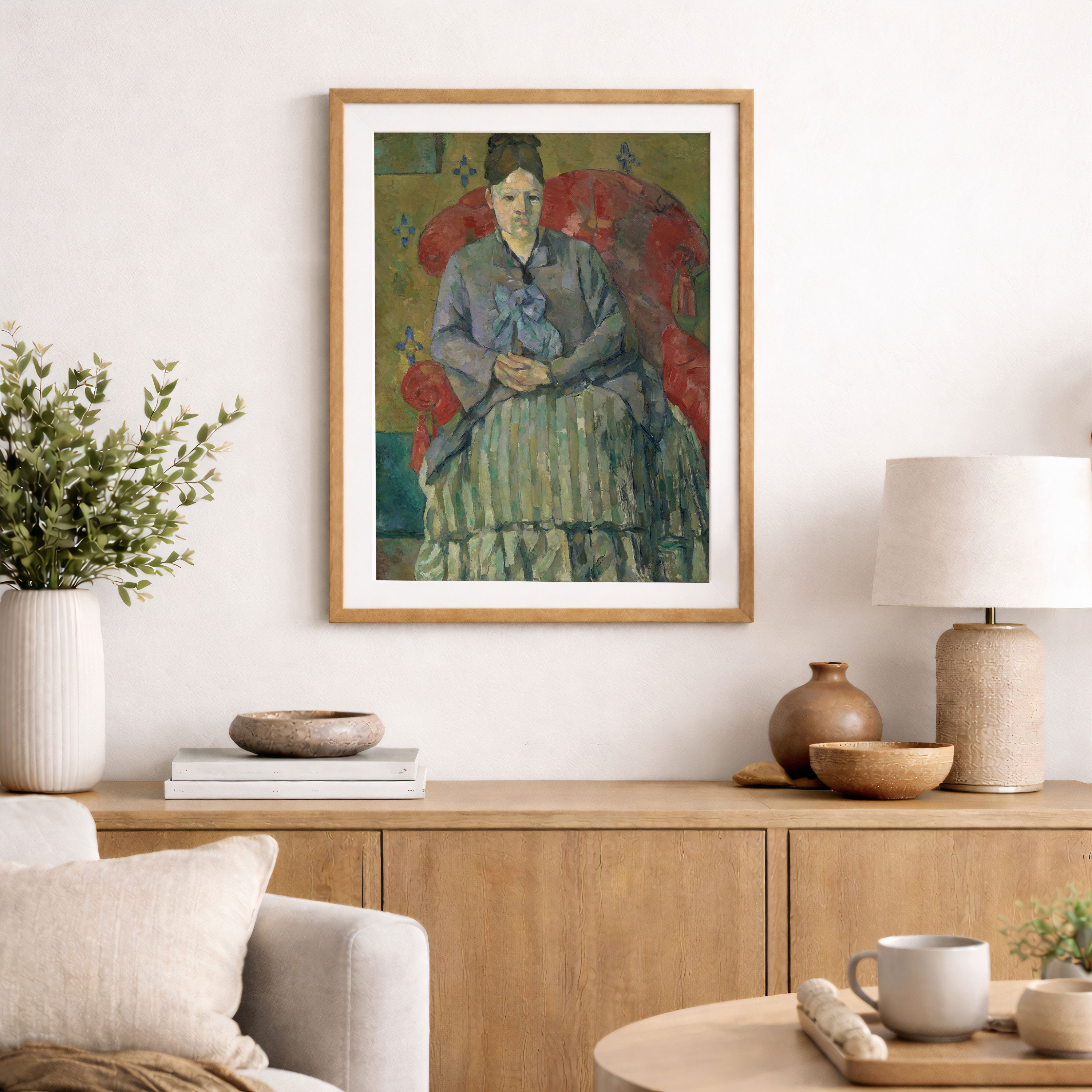 Bring elegance and harmony into your space with this beautiful artwork, Madame Cézanne in a Red Armchair, from our Paul Cézanne Painting Prints Collection. This piece reveals a quiet yet compelling interplay of rich tones, structured forms, and expressive brushwork that captures both warmth and depth. Subtle painting details, classic fine-art textures, and thoughtfully layered color transitions enhance its enduring charm. Its balanced composition and contemplative atmosphere introduce a refined and artistic presence to any interior, enriching your space with the timeless poetry and distinctive vision of this iconic Cézanne-inspired artistic style.