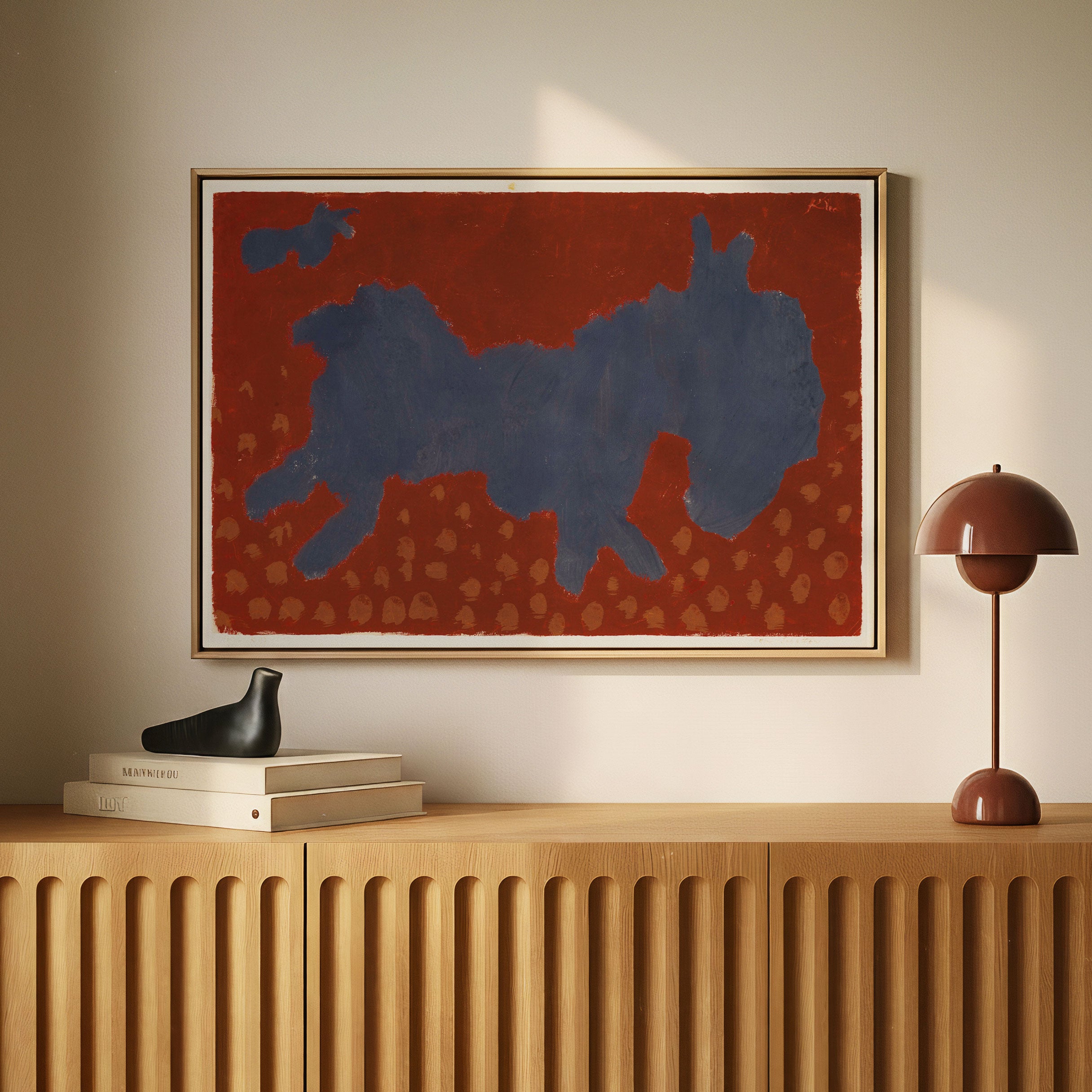 Red art prints add confidence and depth, making interiors feel dynamic and curated.