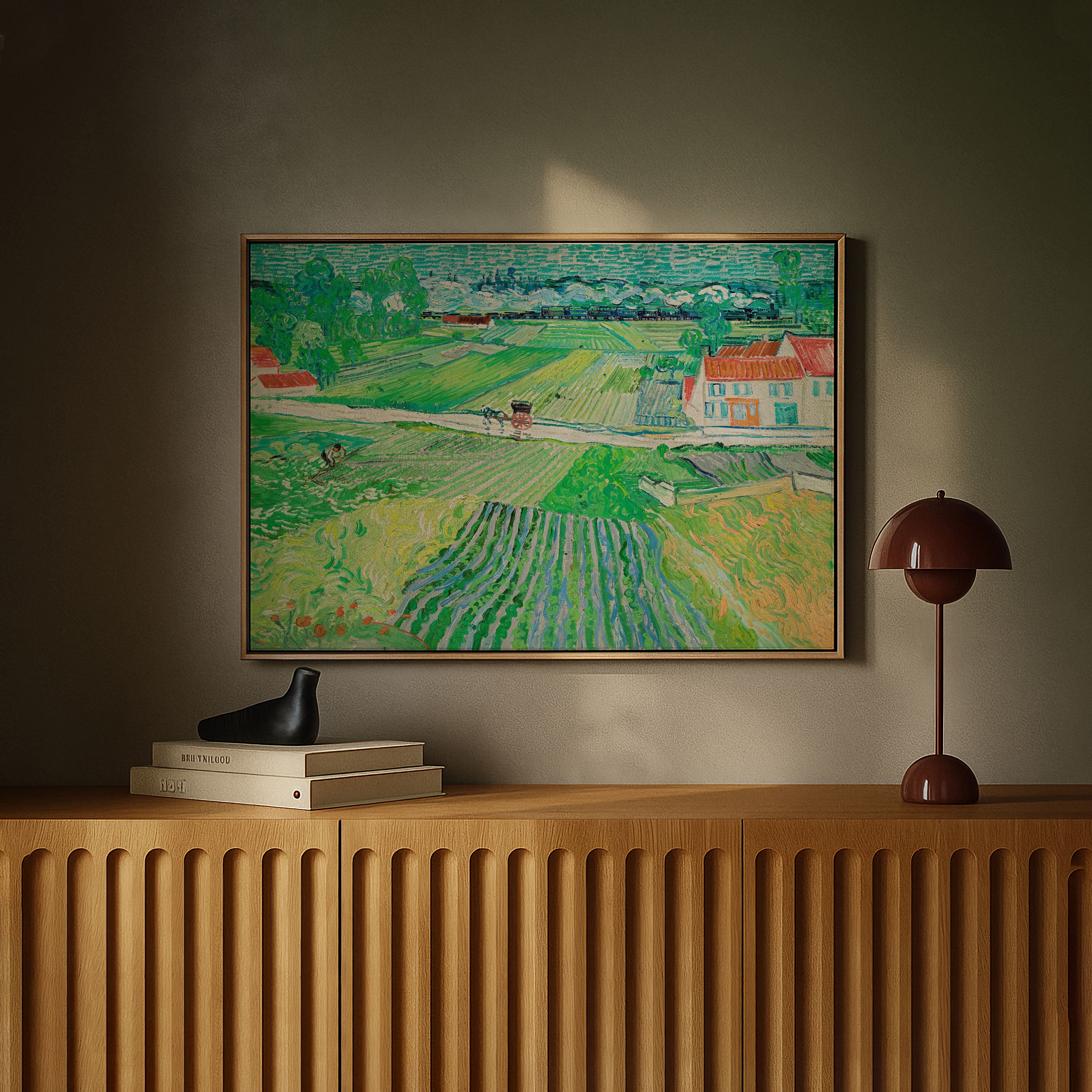 Bring elegance and harmony into your space with this beautiful artwork, Landscape with a Carriage and a Train 1890, from our Vincent Van Gogh Art Prints Collection. This piece reveals a quiet yet compelling interplay of rich tones, gentle shapes, and expressive brushwork that captures both warmth and depth. Subtle painting details, classic art textures, and refined color transitions enhance its enduring charm. Its balanced contrasts and serene atmosphere introduce a thoughtful and artistic presence to any interior, enriching your space with the timeless poetry of this iconic artistic style.