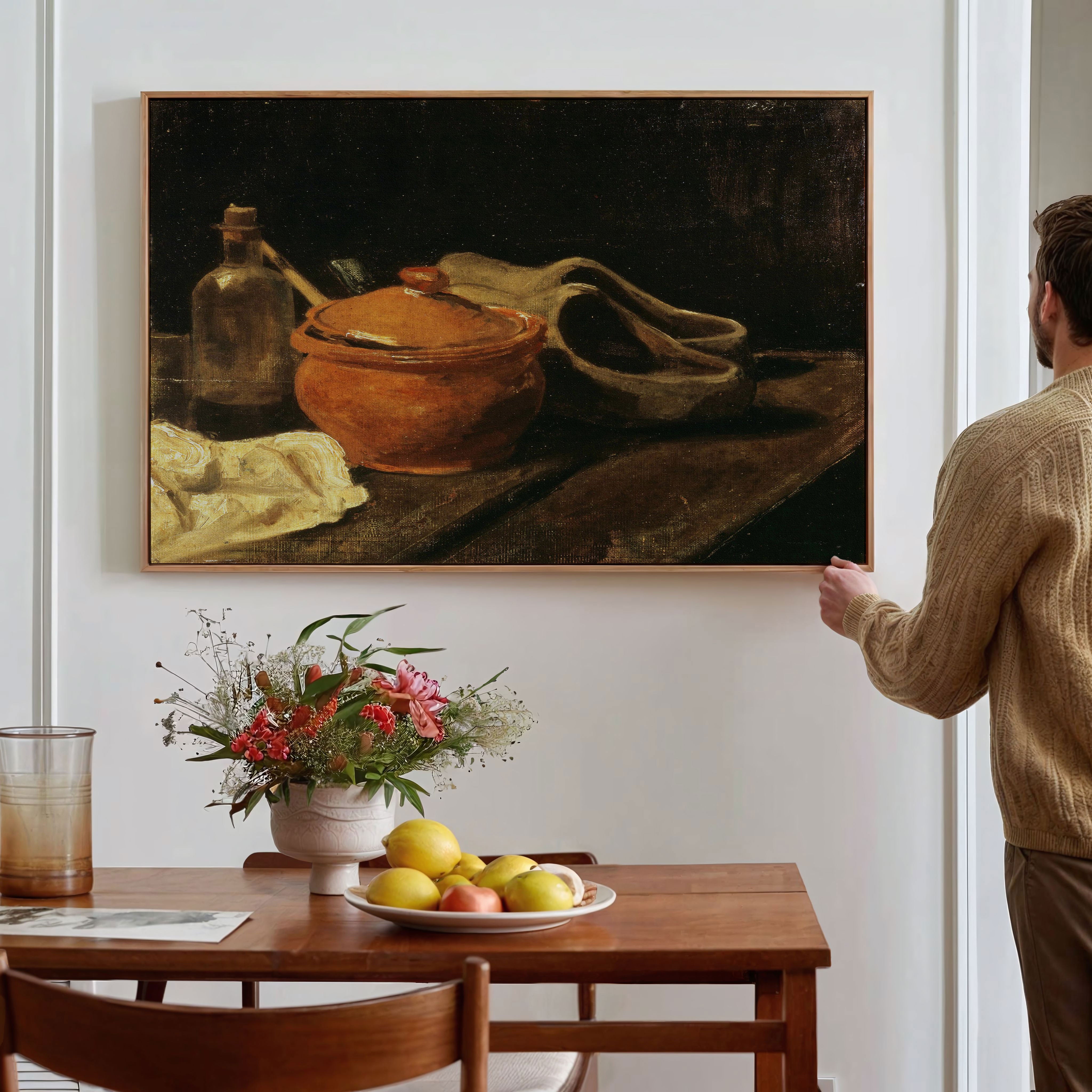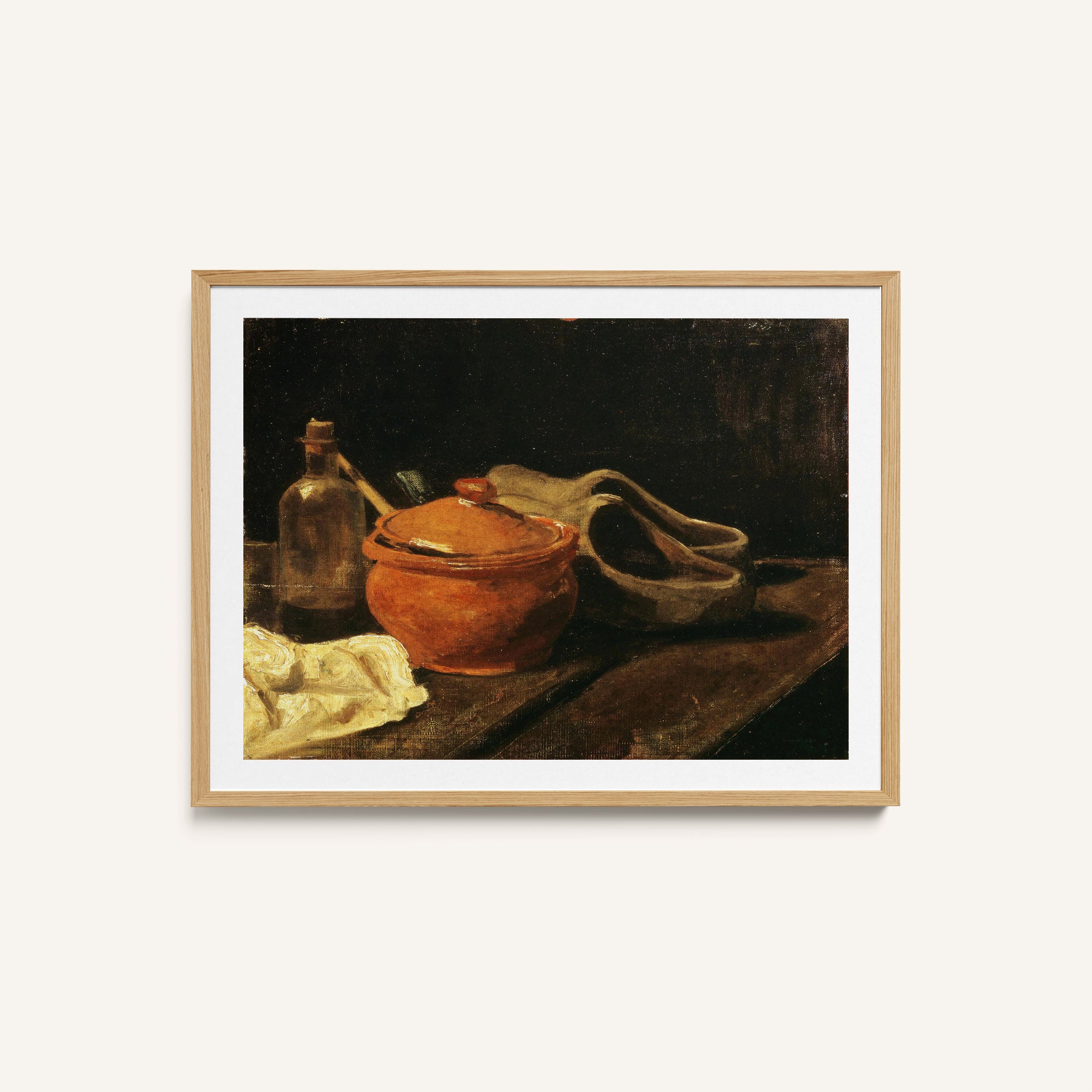 Bring elegance and harmony into your space with this beautiful artwork, Still Life with Earthenware, Bottle and Clogs, from our Vincent Van Gogh Art Prints Collection. This piece reveals a quiet yet compelling interplay of rich tones, gentle shapes, and expressive brushwork that captures both warmth and depth. Subtle painting details, classic art textures, and refined color transitions enhance its enduring charm. Its balanced contrasts and serene atmosphere introduce a thoughtful and artistic presence to any interior, enriching your space with the timeless poetry of this iconic artistic style.