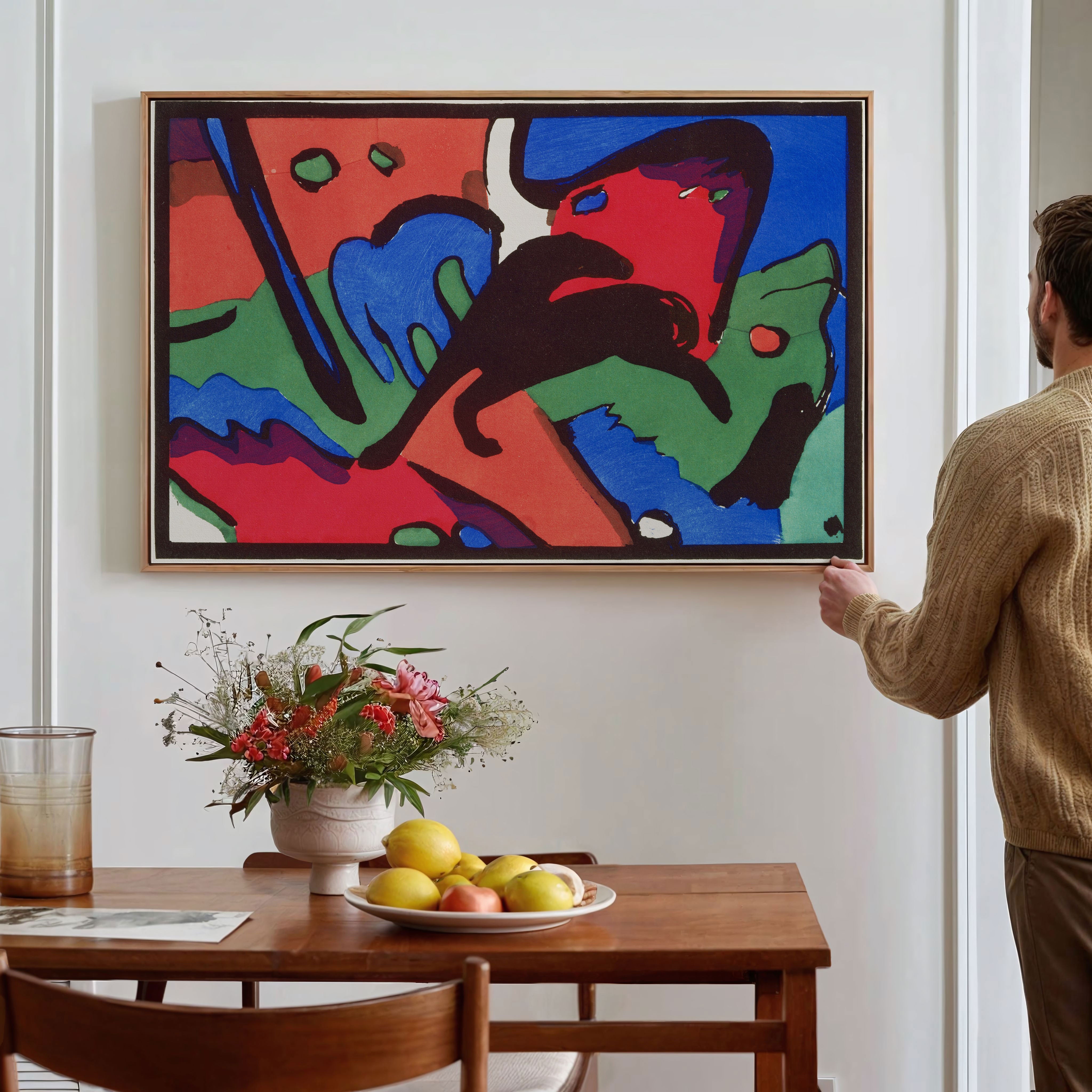 Bring elegance and harmony into your space with this beautiful artwork, The Blue Rider, from our Wassily Kandinsky Art Prints Collection. This piece reveals a quiet yet compelling interplay of rich tones, gentle shapes, and expressive brushwork that captures both warmth and depth. Subtle painting details, classic art textures, and refined color transitions enhance its enduring charm. Its balanced contrasts and serene atmosphere introduce a thoughtful and artistic presence to any interior, enriching your space with the timeless poetry of this iconic artistic style.