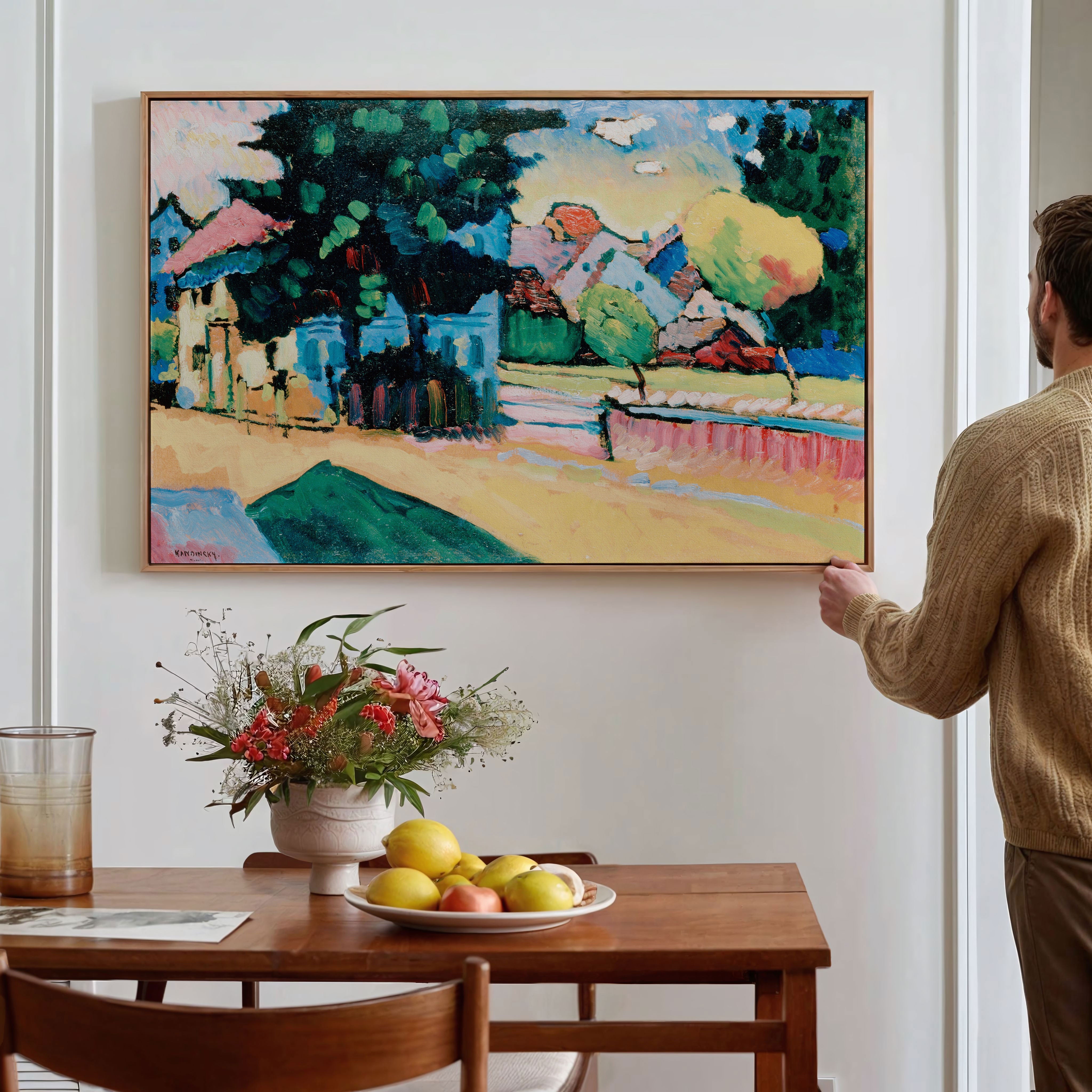 Bring elegance and harmony into your space with this beautiful artwork, Landscape with the Green House, from our Wassily Kandinsky Art Prints Collection. This piece reveals a quiet yet compelling interplay of rich tones, gentle shapes, and expressive brushwork that captures both warmth and depth. Subtle painting details, classic art textures, and refined color transitions enhance its enduring charm. Its balanced contrasts and serene atmosphere introduce a thoughtful and artistic presence to any interior, enriching your space with the timeless poetry of this iconic artistic style.