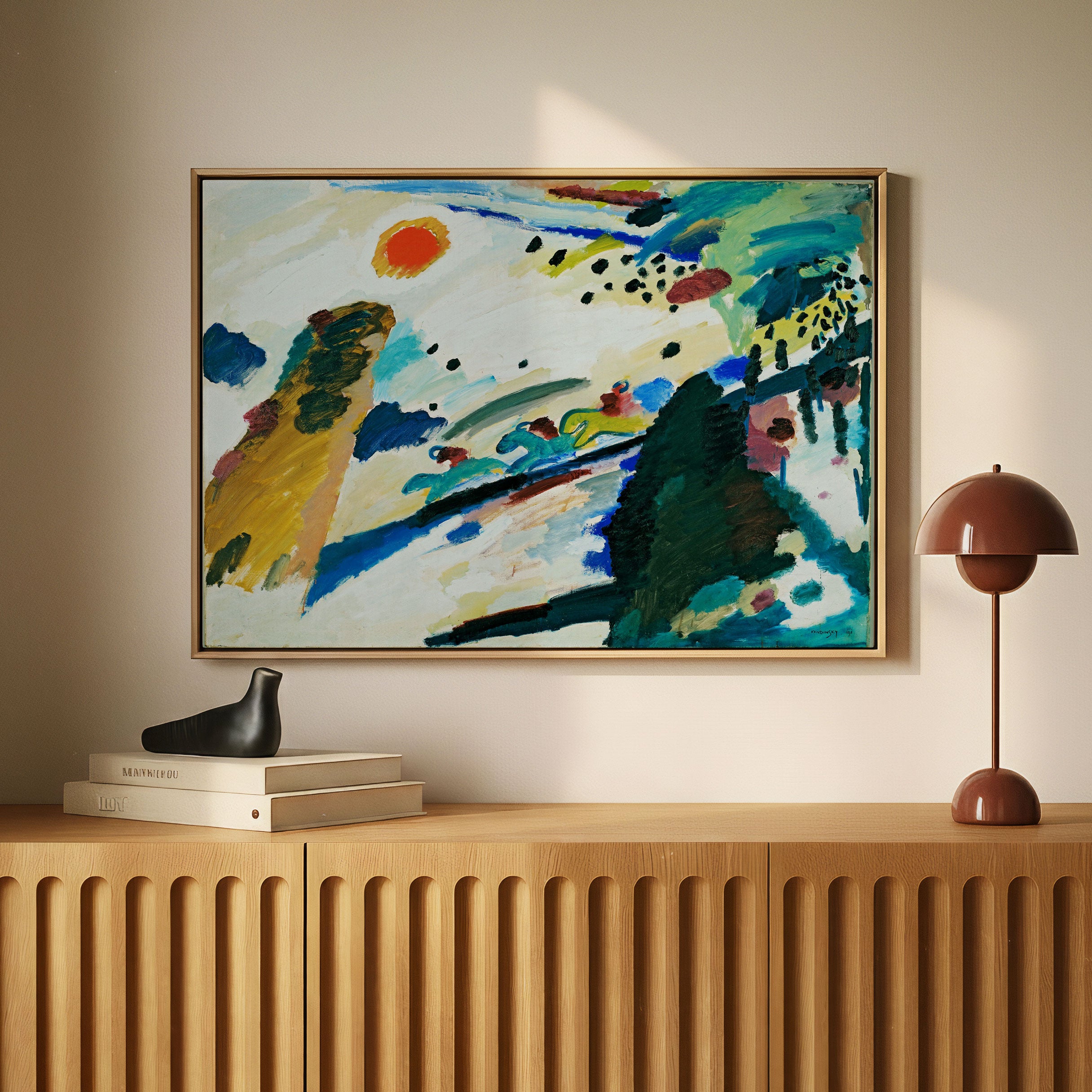 Bring elegance and harmony into your space with this beautiful artwork, Romantic Landscape, from our Wassily Kandinsky Art Prints Collection. This piece reveals a quiet yet compelling interplay of rich tones, gentle shapes, and expressive brushwork that captures both warmth and depth. Subtle painting details, classic art textures, and refined color transitions enhance its enduring charm. Its balanced contrasts and serene atmosphere introduce a thoughtful and artistic presence to any interior, enriching your space with the timeless poetry of this iconic artistic style.