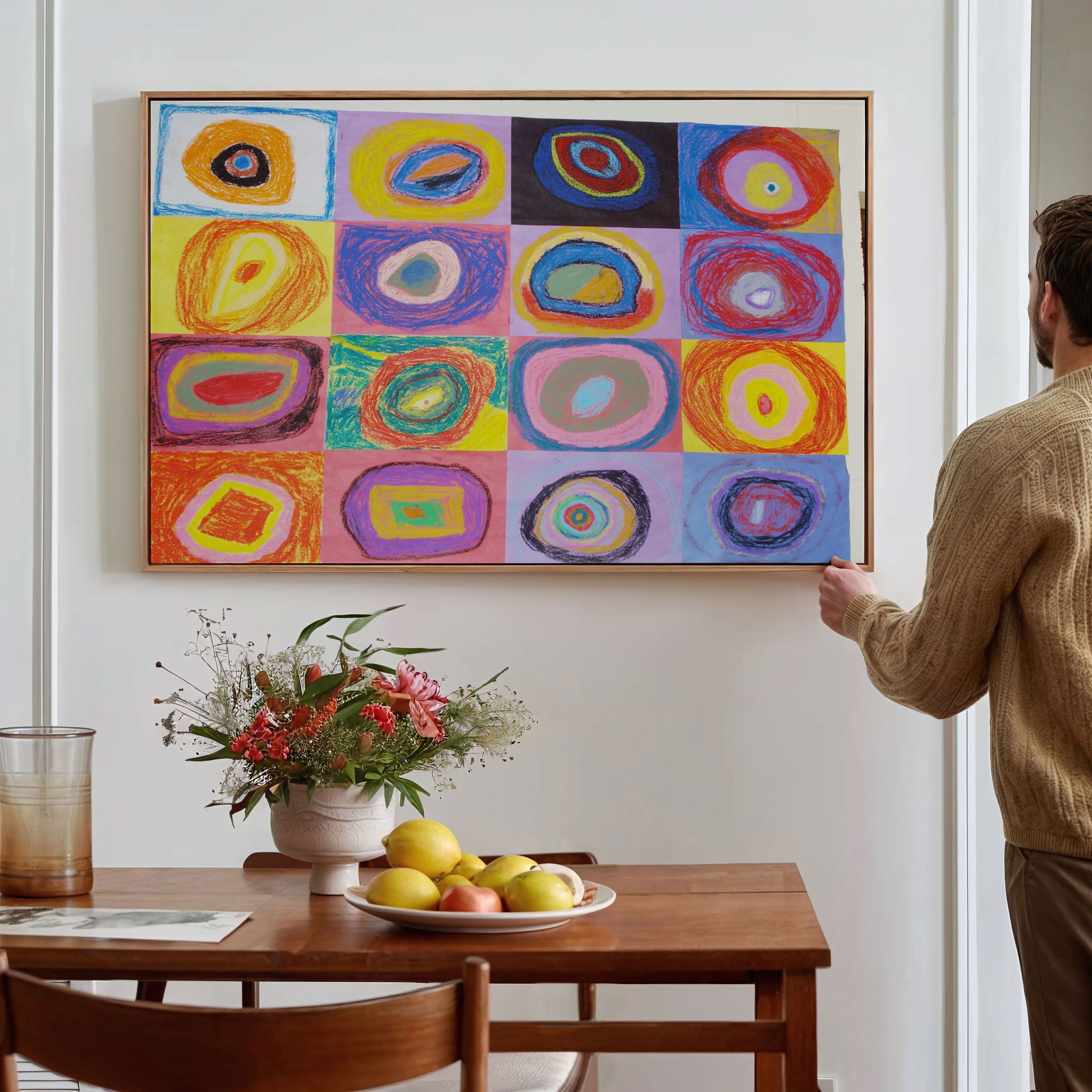 Bring elegance and harmony into your space with this beautiful artwork, Squares with Concentric Circles, from our Wassily Kandinsky Art Prints Collection. This piece reveals a quiet yet compelling interplay of rich tones, gentle shapes, and expressive brushwork that captures both warmth and depth. Subtle painting details, classic art textures, and refined color transitions enhance its enduring charm. Its balanced contrasts and serene atmosphere introduce a thoughtful and artistic presence to any interior, enriching your space with the timeless poetry of this iconic artistic style.