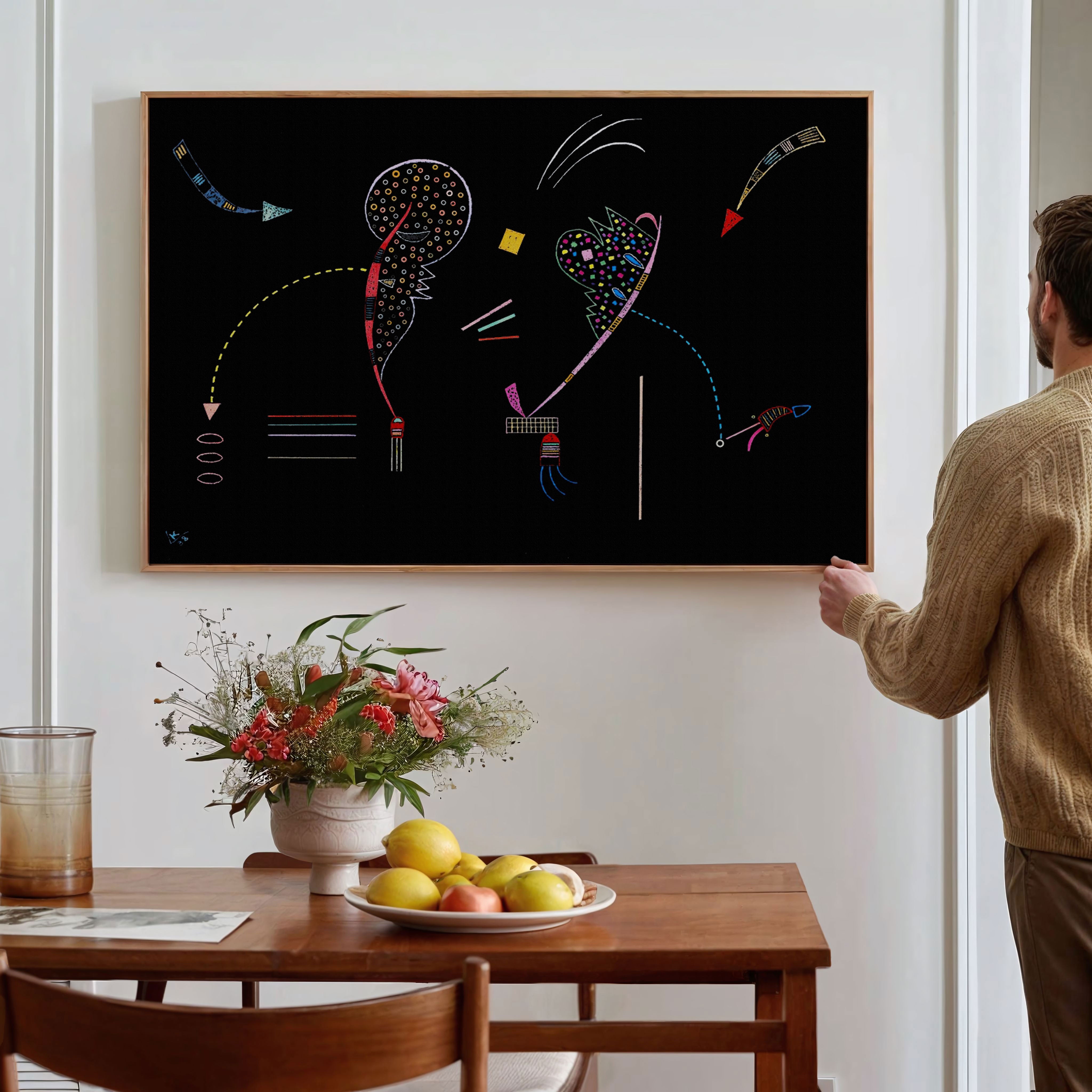 Bring elegance and harmony into your space with this beautiful artwork, Two Sides, from our Wassily Kandinsky Art Prints Collection. This piece reveals a quiet yet compelling interplay of rich tones, gentle shapes, and expressive brushwork that captures both warmth and depth. Subtle painting details, classic art textures, and refined color transitions enhance its enduring charm. Its balanced contrasts and serene atmosphere introduce a thoughtful and artistic presence to any interior, enriching your space with the timeless poetry of this iconic artistic style.