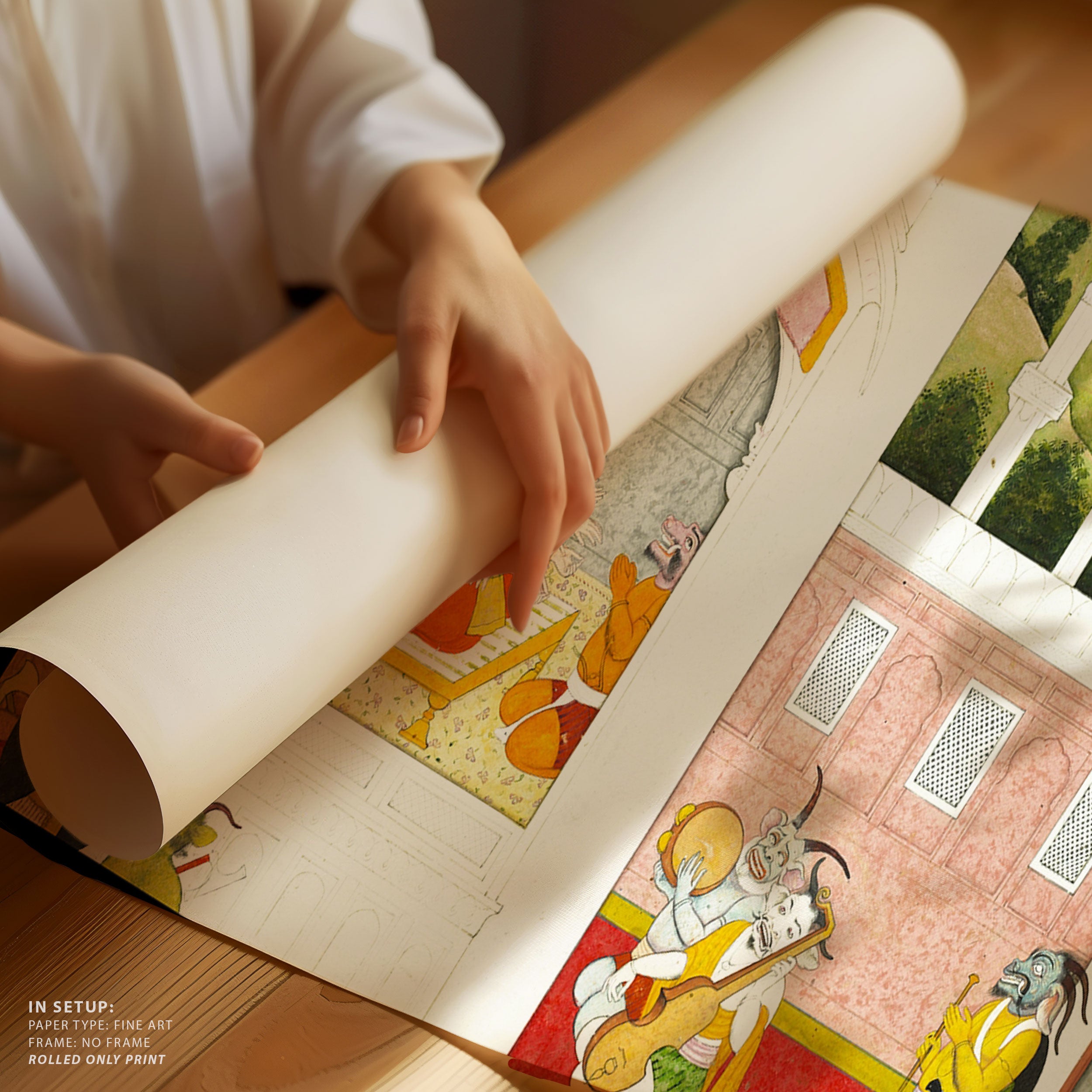 Through meticulous brushwork, balanced composition, and a sophisticated interplay of color and form, Indian Tales artworks convey emotion, rhythm, and layered narratives inspired by mythology, folklore, and everyday life. Each piece invites mindful contemplation, encouraging viewers to pause and engage with subtle expressions, gentle movement, and harmonious settings that celebrate presence, reflection, and the enduring poetry of India’s artistic legacy.
