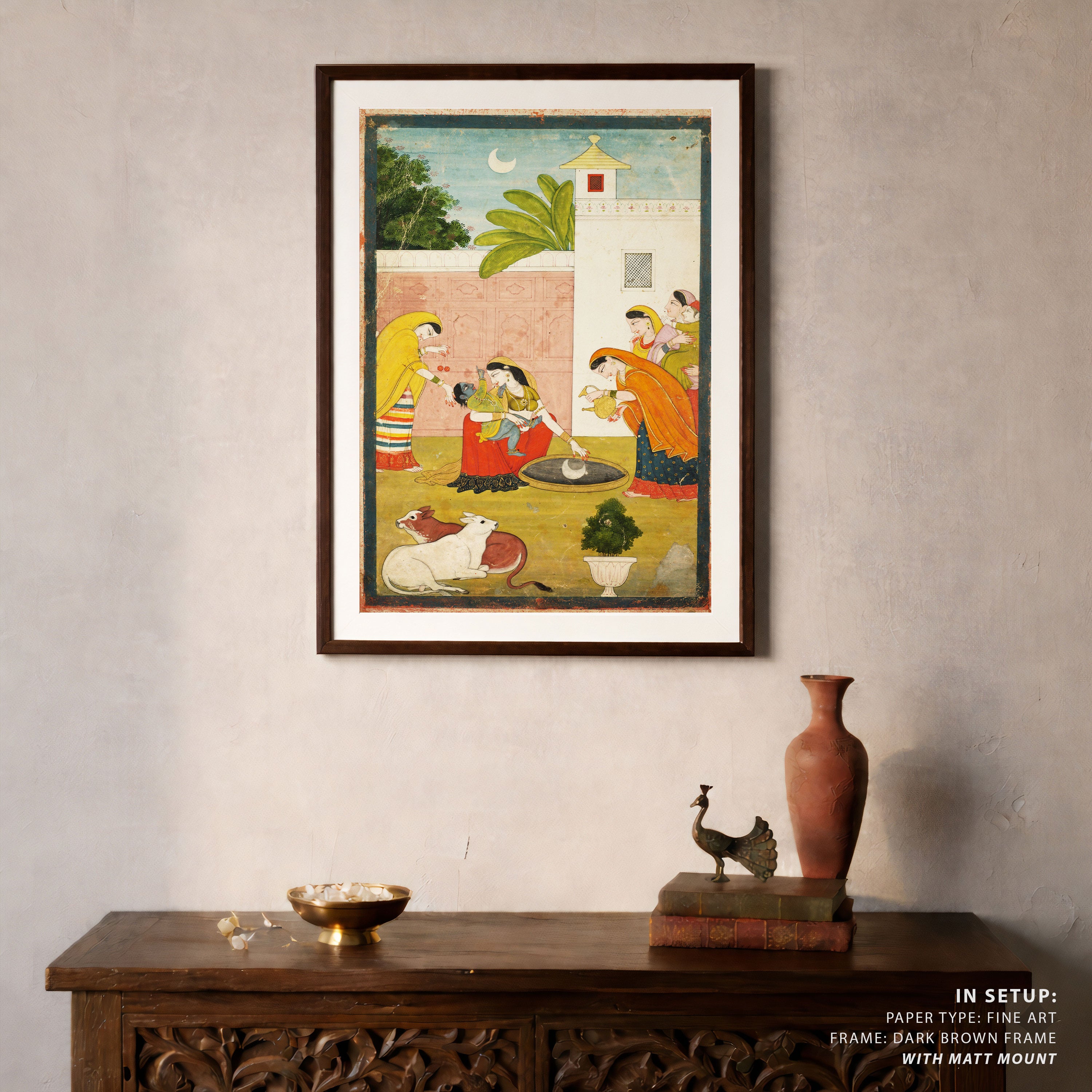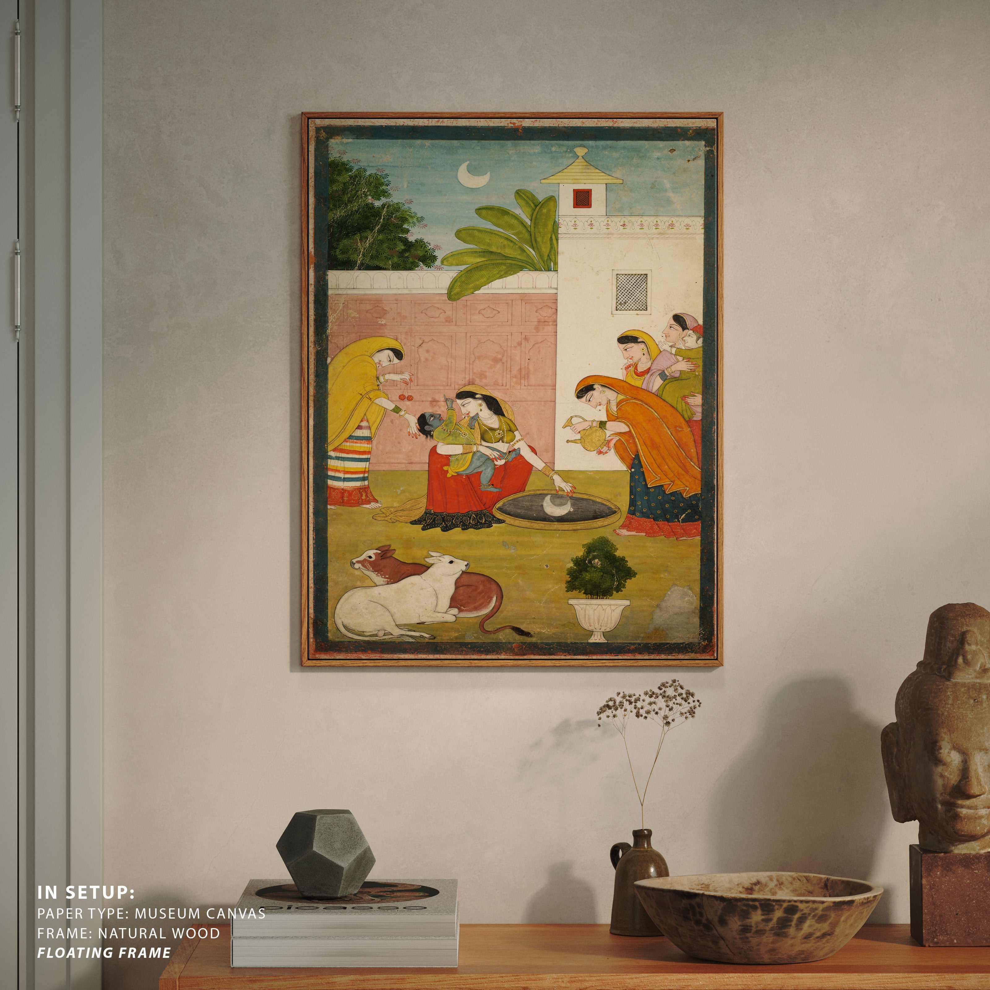 Bring elegance and cultural harmony into your space with this beautiful artwork, Krishna Reaching for the Moon, from our Classical Indian Art Collection. This timeless artwork features expressive figures, symbolic motifs, intricate detailing, and harmonious compositions inspired by India’s rich artistic traditions. Perfect for traditional, heritage, eclectic, and contemporary interiors, Indian folk and classical wall art adds depth, warmth, and a sense of history and storytelling to every interior.