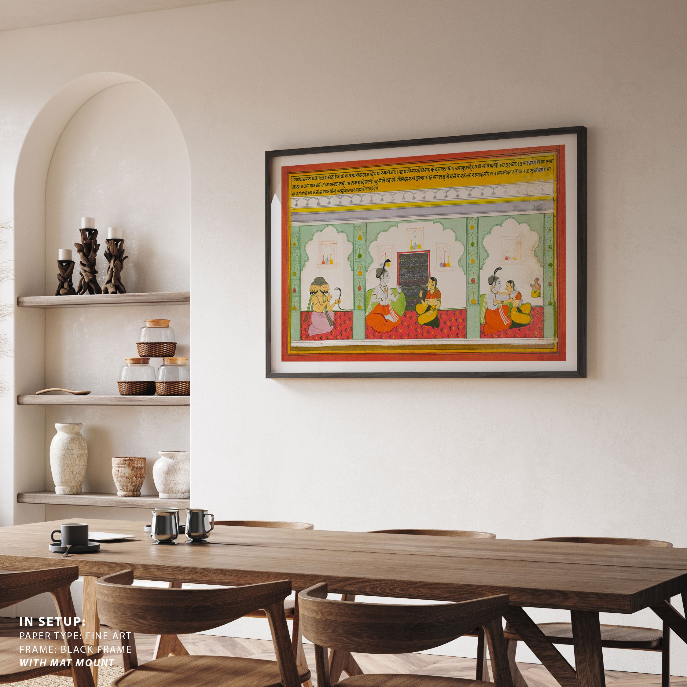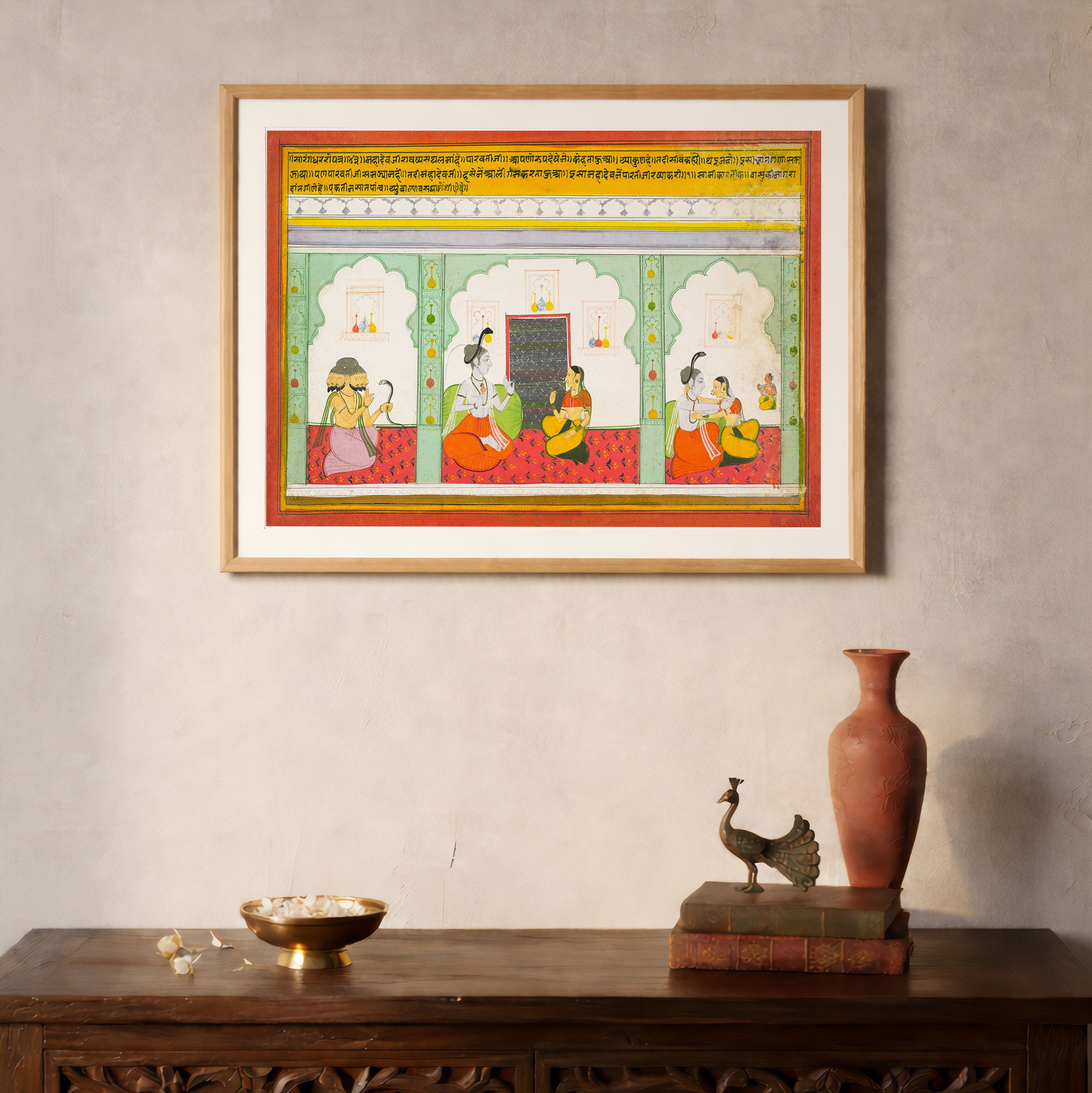 Bring elegance and cultural harmony into your space with this beautiful artwork, Page from a Dispersed Shiva Mahatmya, from our Classical Indian Art Collection. Rooted in India’s rich classical and miniature painting traditions, this artwork showcases expressive figures, symbolic motifs, ornate architectural details, and serene natural landscapes, all rendered with refined craftsmanship and thoughtful precision. Its narrative depth and decorative richness make it ideal for traditional, heritage, eclectic, and contemporary interiors, adding warmth, character, and a timeless sense of history and storytelling to every interior.