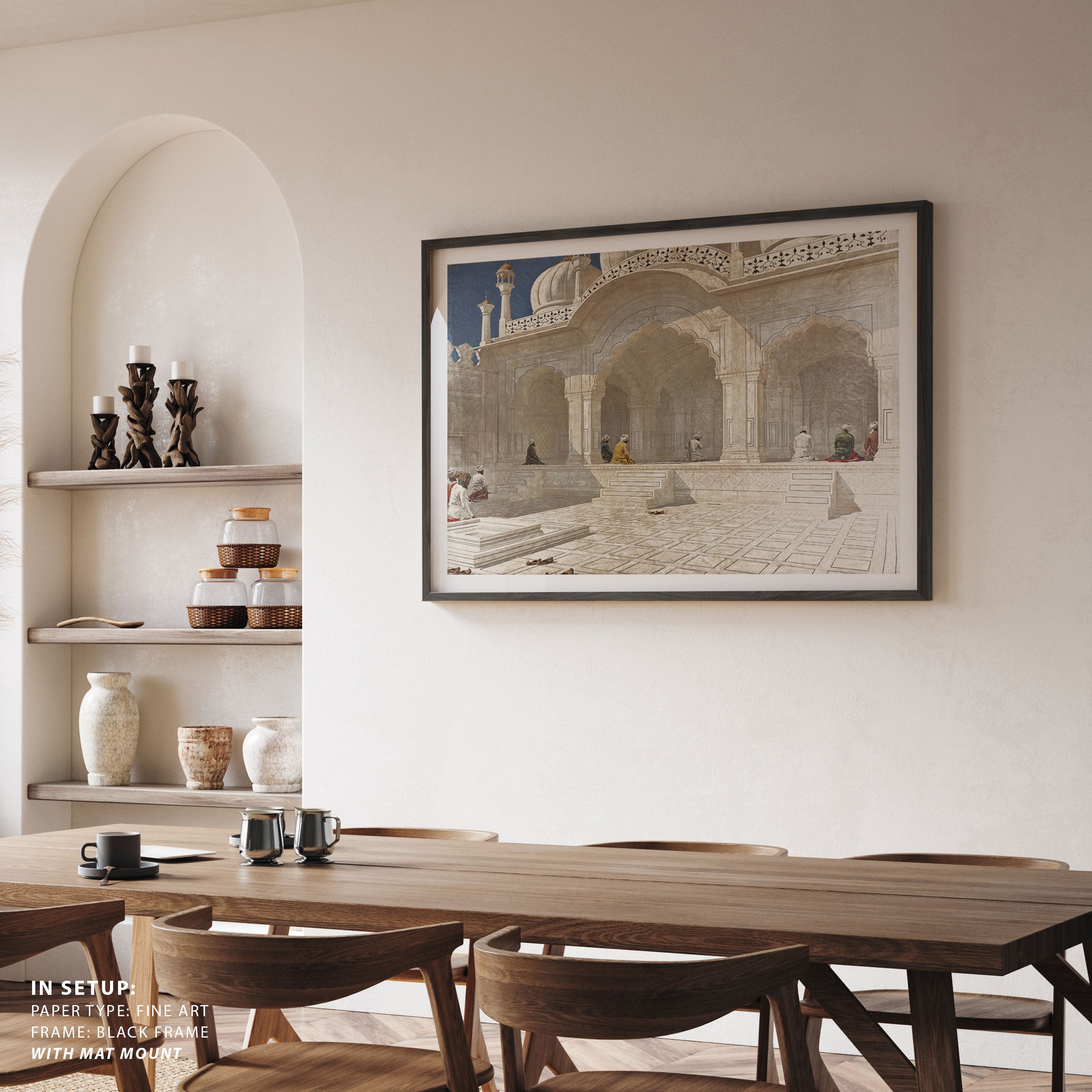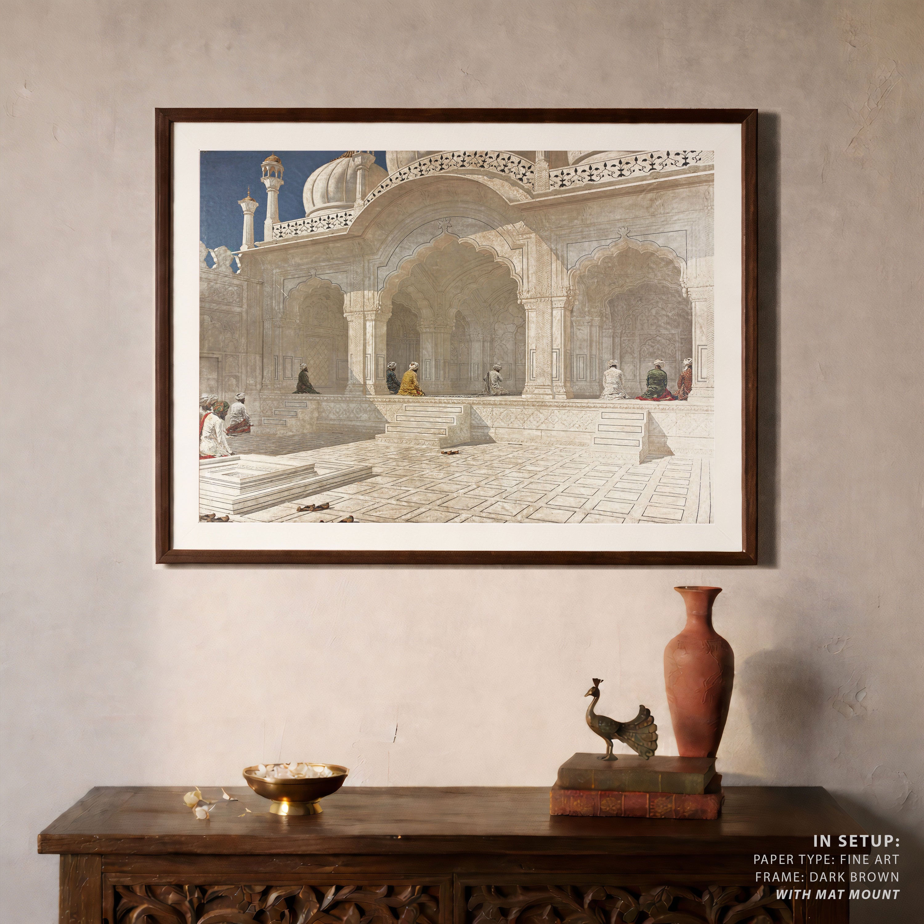 Bring elegance and cultural harmony into your space with this beautiful artwork, Pearl Mosque at Delhi 1876 - 1879, from our Classical Indian Art Collection. Rooted in India’s rich classical and miniature painting traditions, this artwork showcases expressive figures, symbolic motifs, ornate architectural details, and serene natural landscapes, all rendered with refined craftsmanship and thoughtful precision. Its narrative depth and decorative richness make it ideal for traditional, heritage, eclectic, and contemporary interiors, adding warmth, character, and a timeless sense of history and storytelling to every interior.