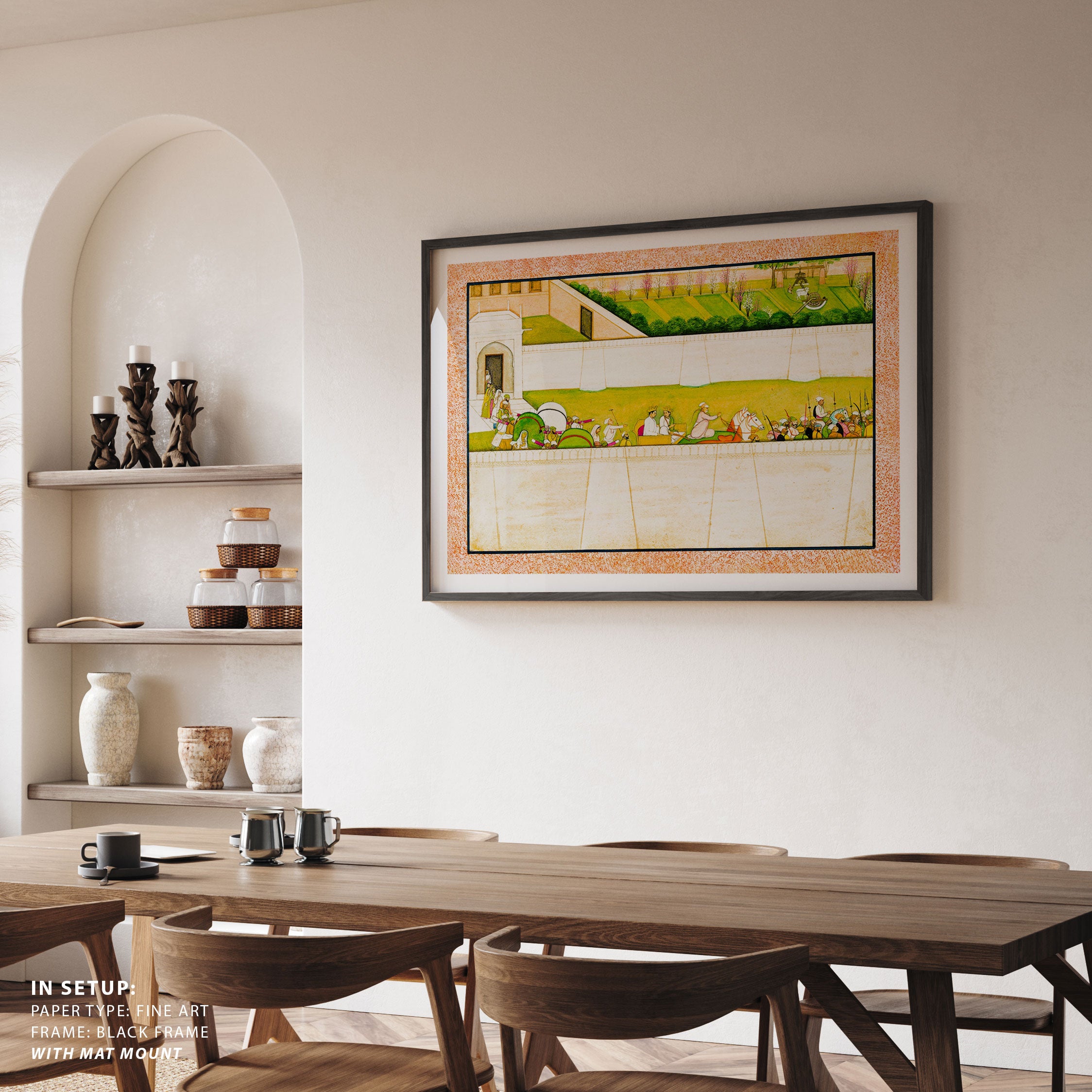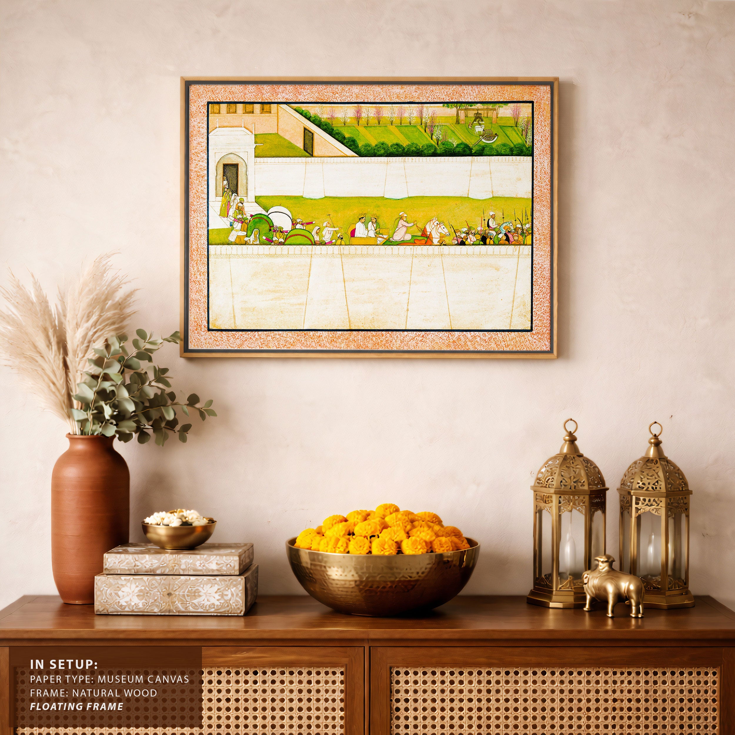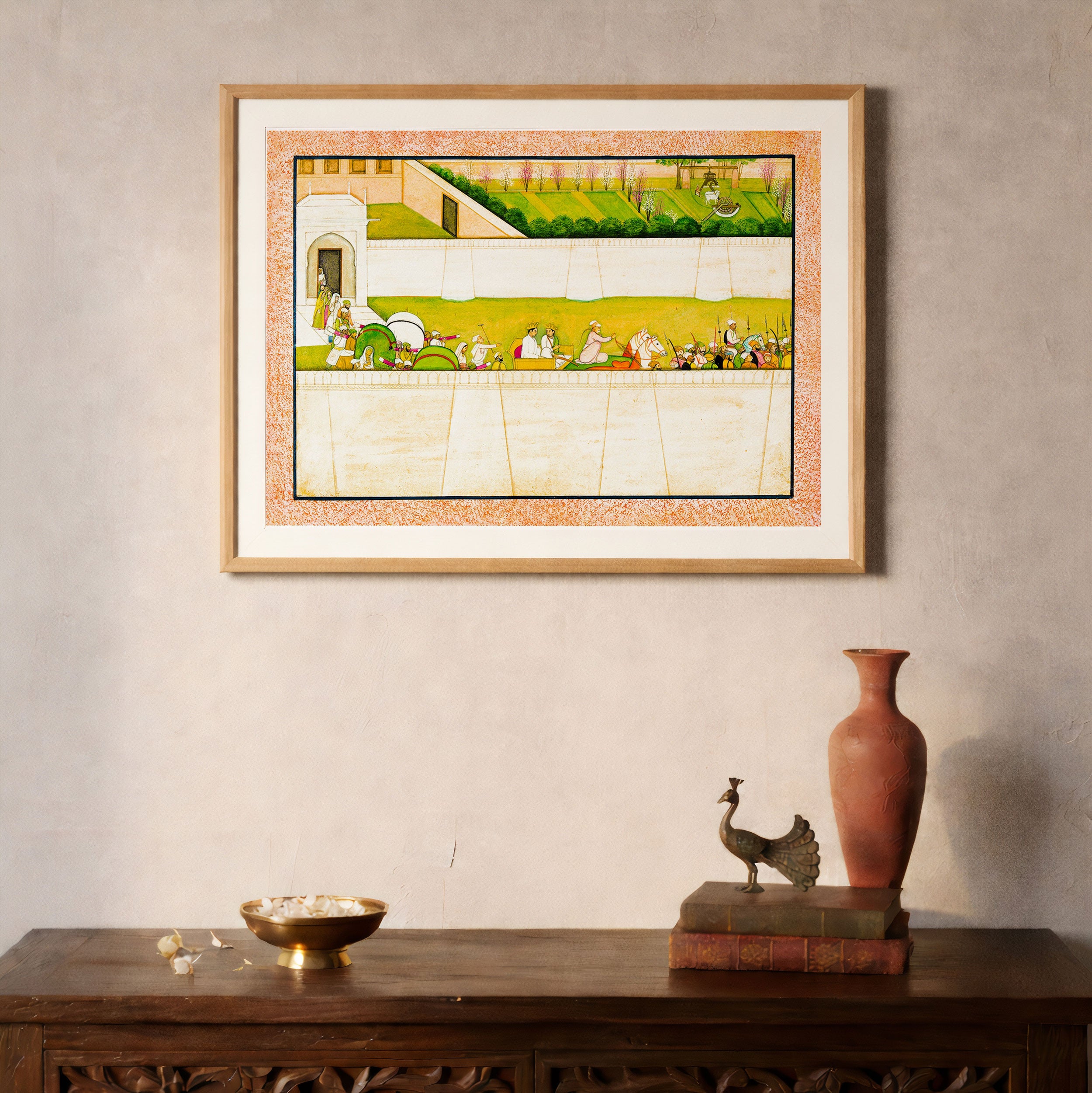 Bring elegance and cultural harmony into your space with this beautiful artwork, The Departure of Bharata and Shatrughna, from our Classical Indian Art Collection. Rooted in India’s rich classical and miniature painting traditions, this artwork showcases expressive figures, symbolic motifs, ornate architectural details, and serene natural landscapes, all rendered with refined craftsmanship and thoughtful precision. Its narrative depth and decorative richness make it ideal for traditional, heritage, eclectic, and contemporary interiors, adding warmth, character, and a timeless sense of history and storytelling to every interior.