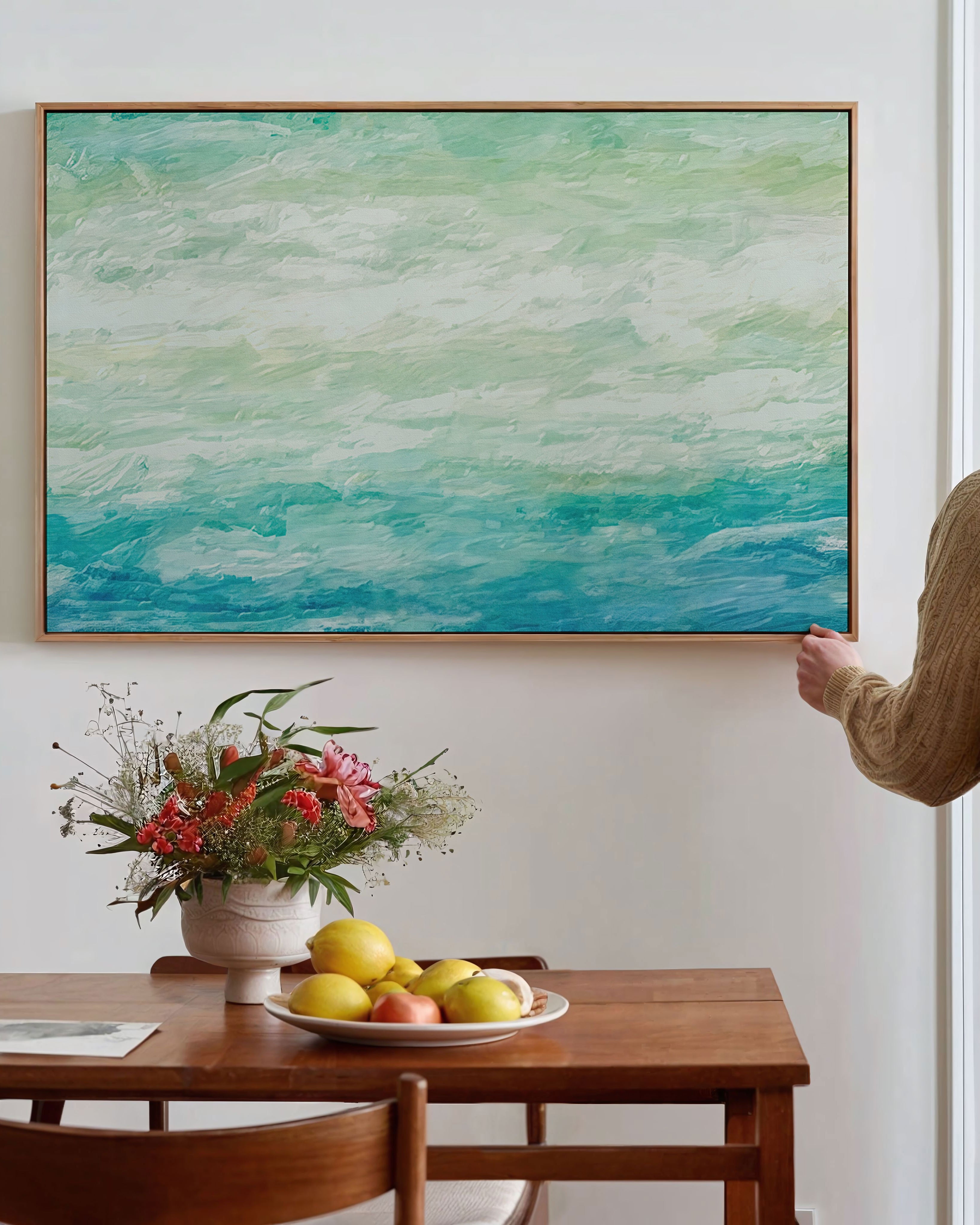 White is essential in Scandinavian and minimalist interiors, where light, space, and simplicity are prioritised. White wall art enhances natural light, softens interiors, and allows other elements such as furniture and textures to stand out.