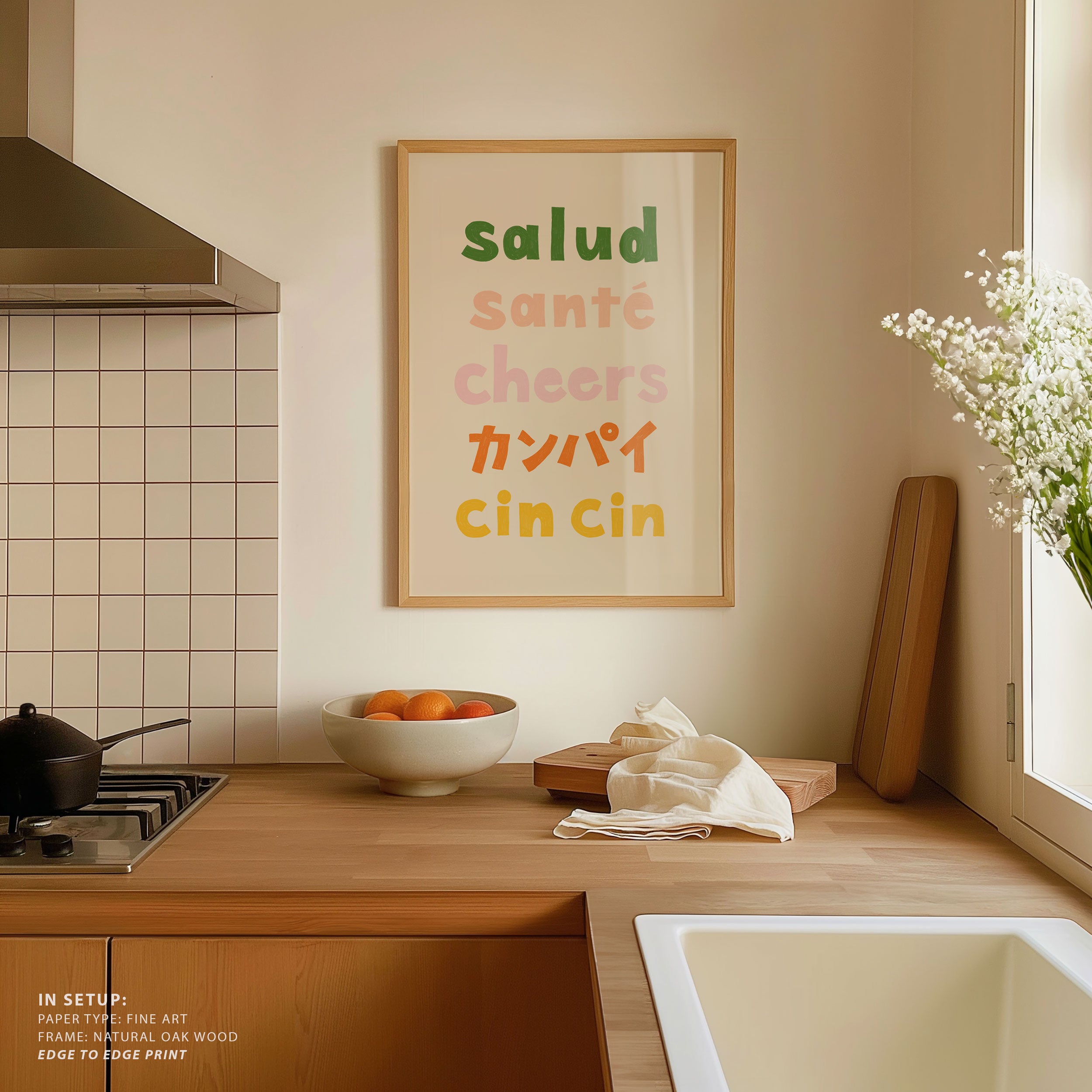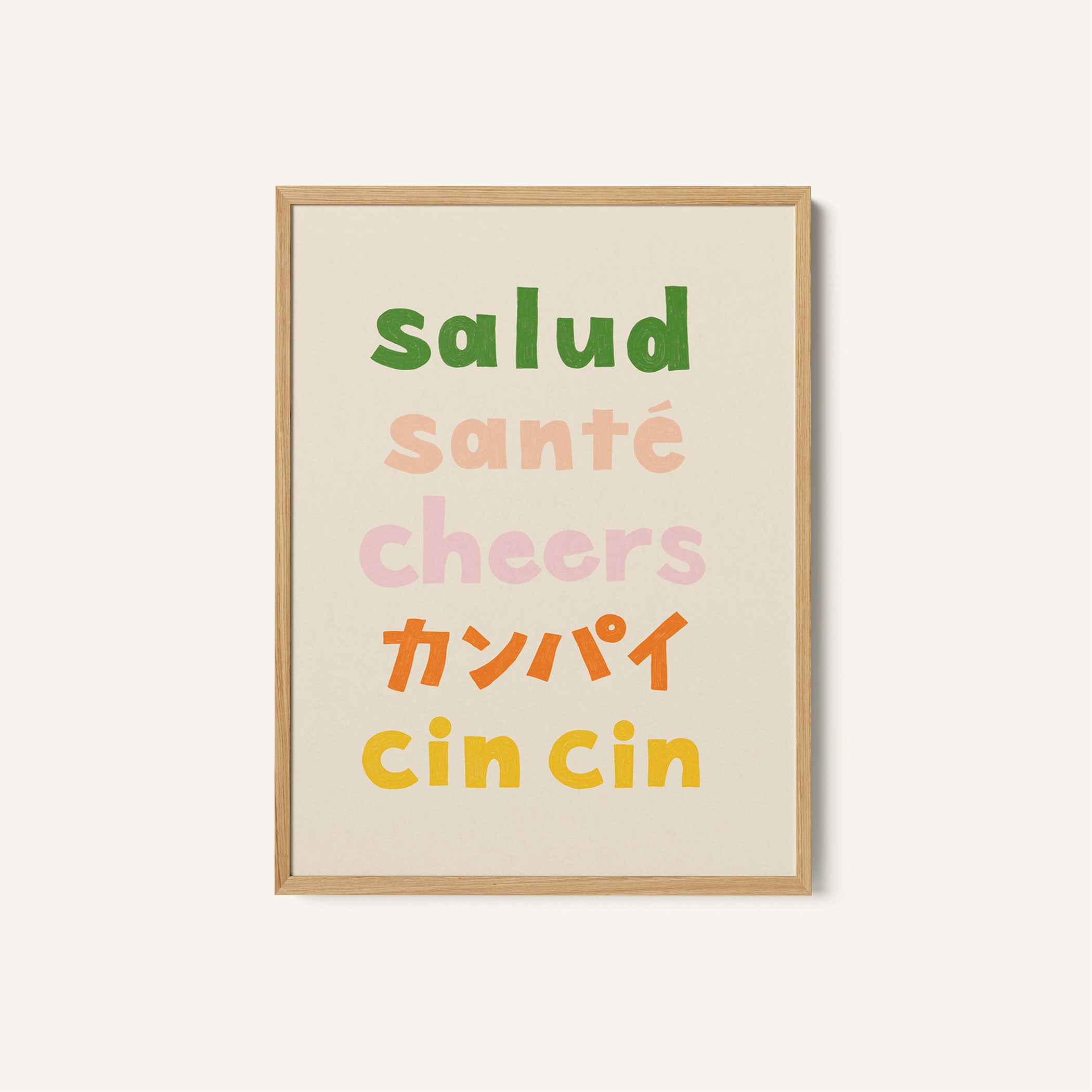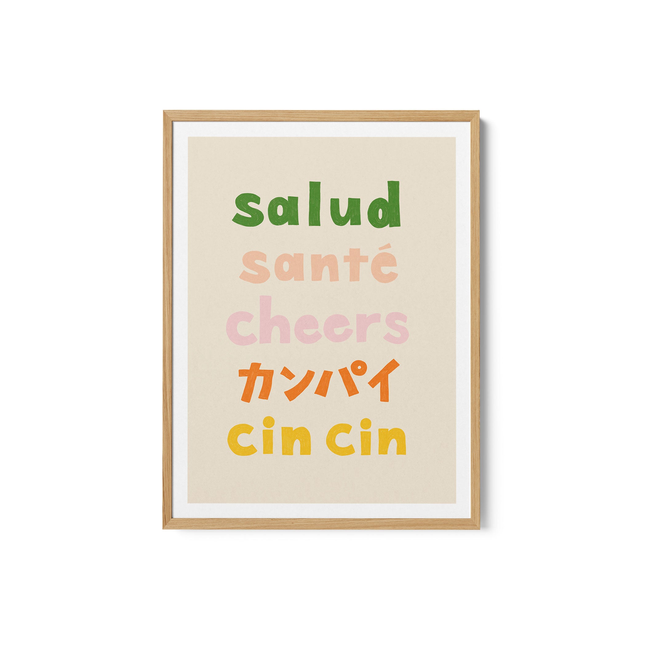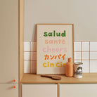 Turn your kitchen or café into a haven of slow mornings and gentle ambiance with this trendy wall art print. Cheers Typography - Salud 02 from our Kitchen and Café Art Prints Collection, featuring clean, pop-art‑style typography. The playful yet graphic design tone fits right in with today’s trending food‑and‑drink decor, matching lines of witty kitchen quotes and minimal illustrations that instantly tell you this is all about coffee, tea or juice.