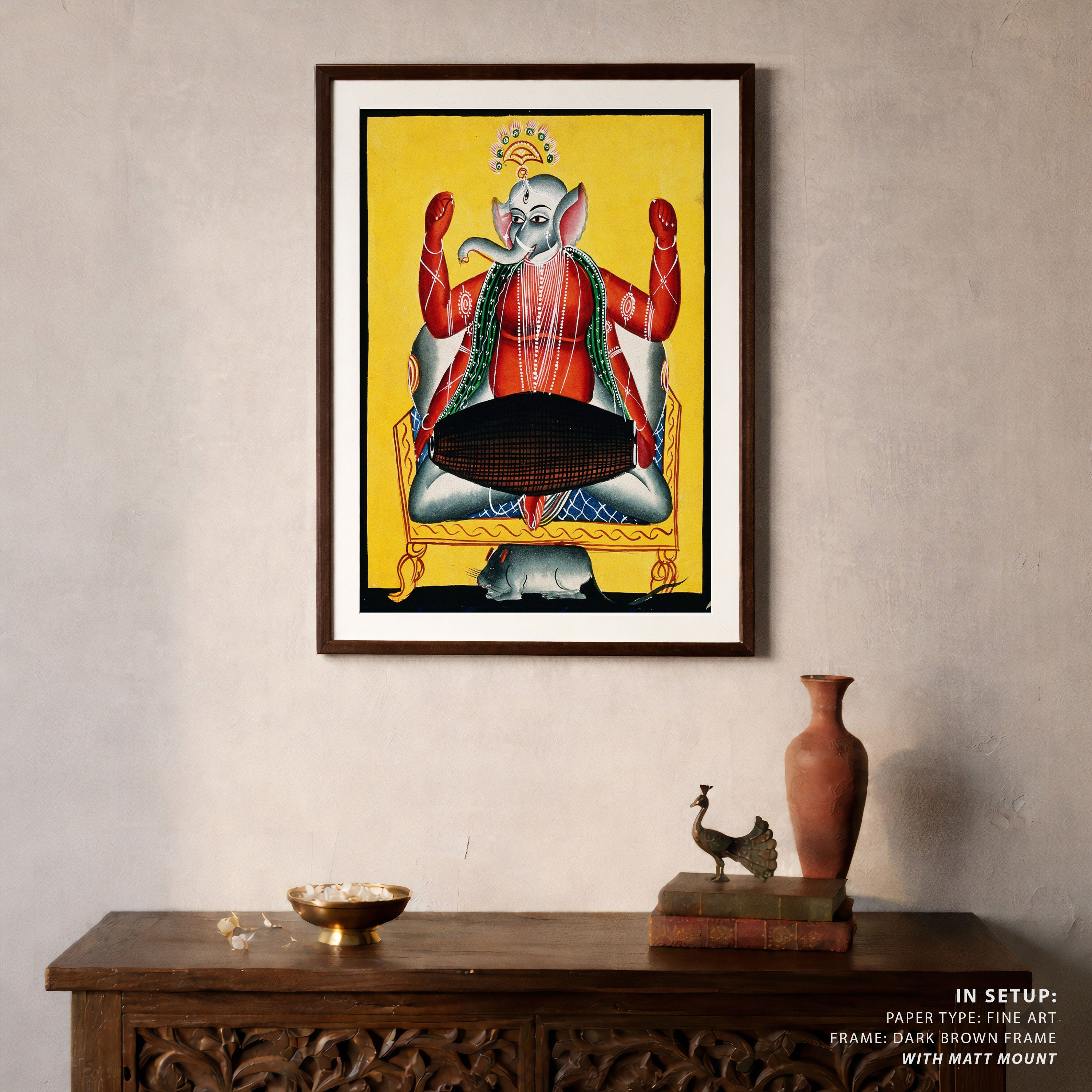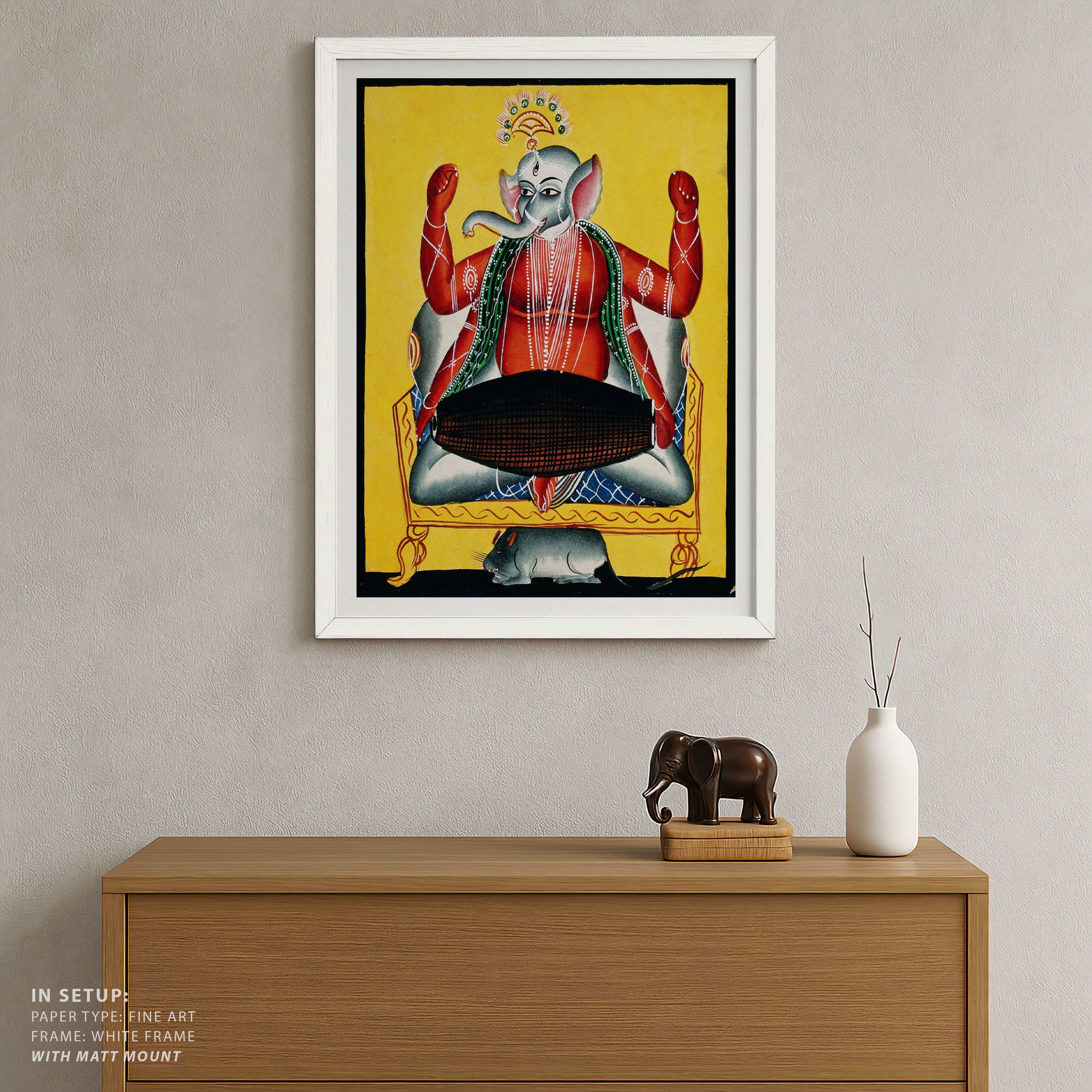 Bring elegance and cultural harmony into your space with this beautiful artwork, Joyful Ganesha with the Sacred Drum, from our Classical Indian Art Collection. This timeless artwork features expressive figures, symbolic motifs, intricate detailing, and harmonious compositions inspired by India’s rich artistic traditions. Perfect for traditional, heritage, eclectic, and contemporary interiors, Indian folk and classical wall art adds depth, warmth, and a sense of history and storytelling to every interior.