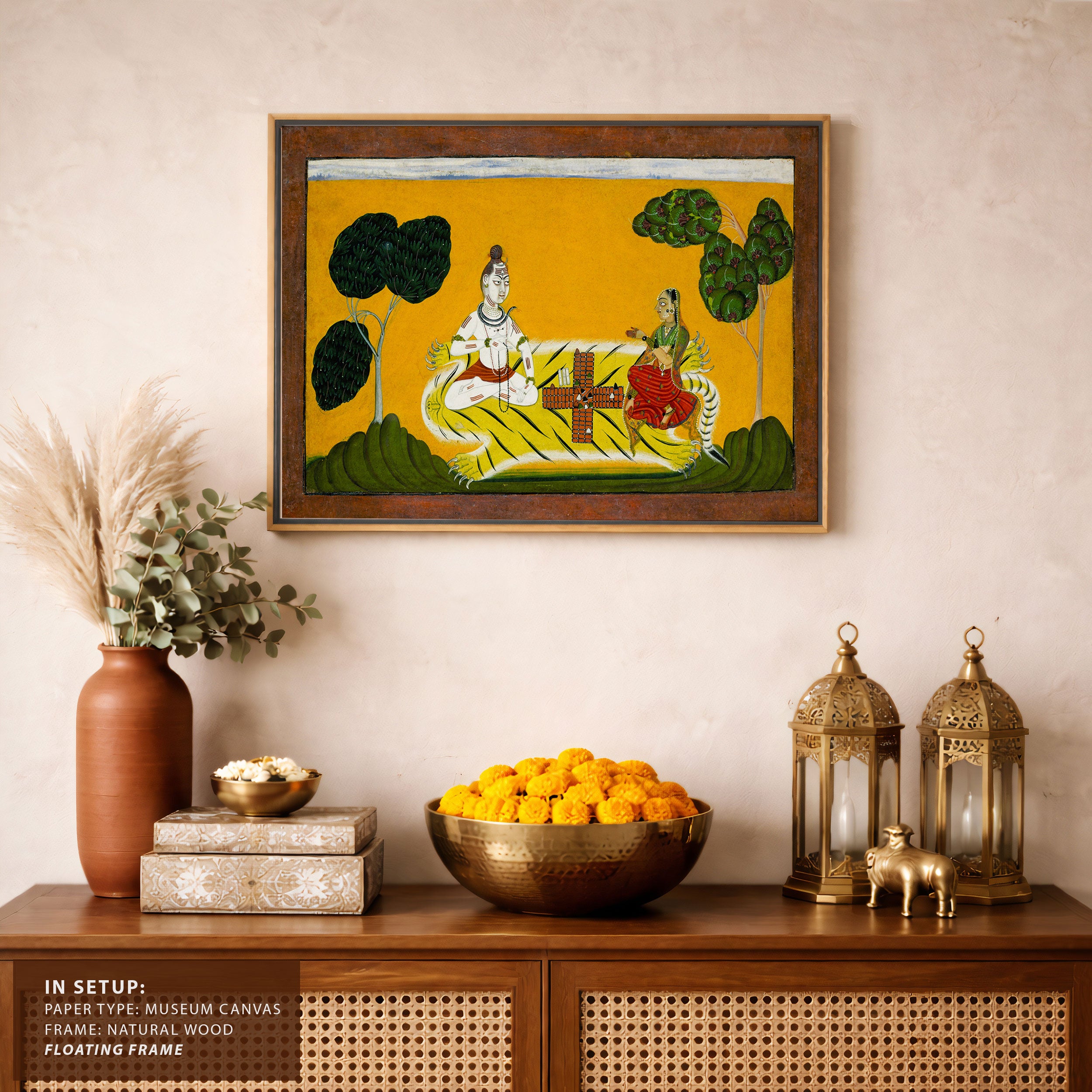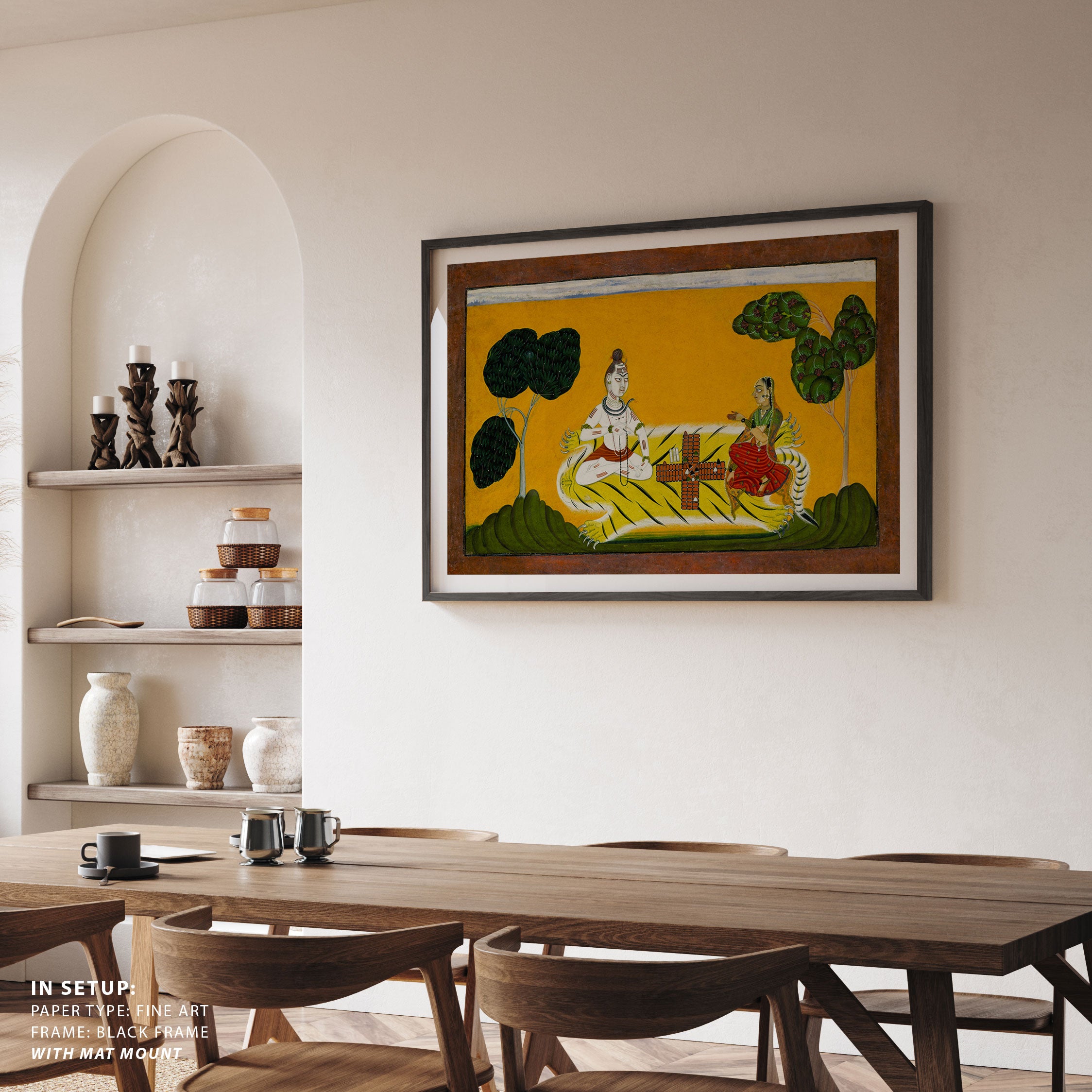 Bring elegance and cultural harmony into your space with this beautiful artwork, Shiva and Parvati Playing Chaupar, from our Classical Indian Art Collection. Rooted in India’s rich classical and miniature painting traditions, this artwork showcases expressive figures, symbolic motifs, ornate architectural details, and serene natural landscapes, all rendered with refined craftsmanship and thoughtful precision. Its narrative depth and decorative richness make it ideal for traditional, heritage, eclectic, and contemporary interiors, adding warmth, character, and a timeless sense of history and storytelling to every interior.