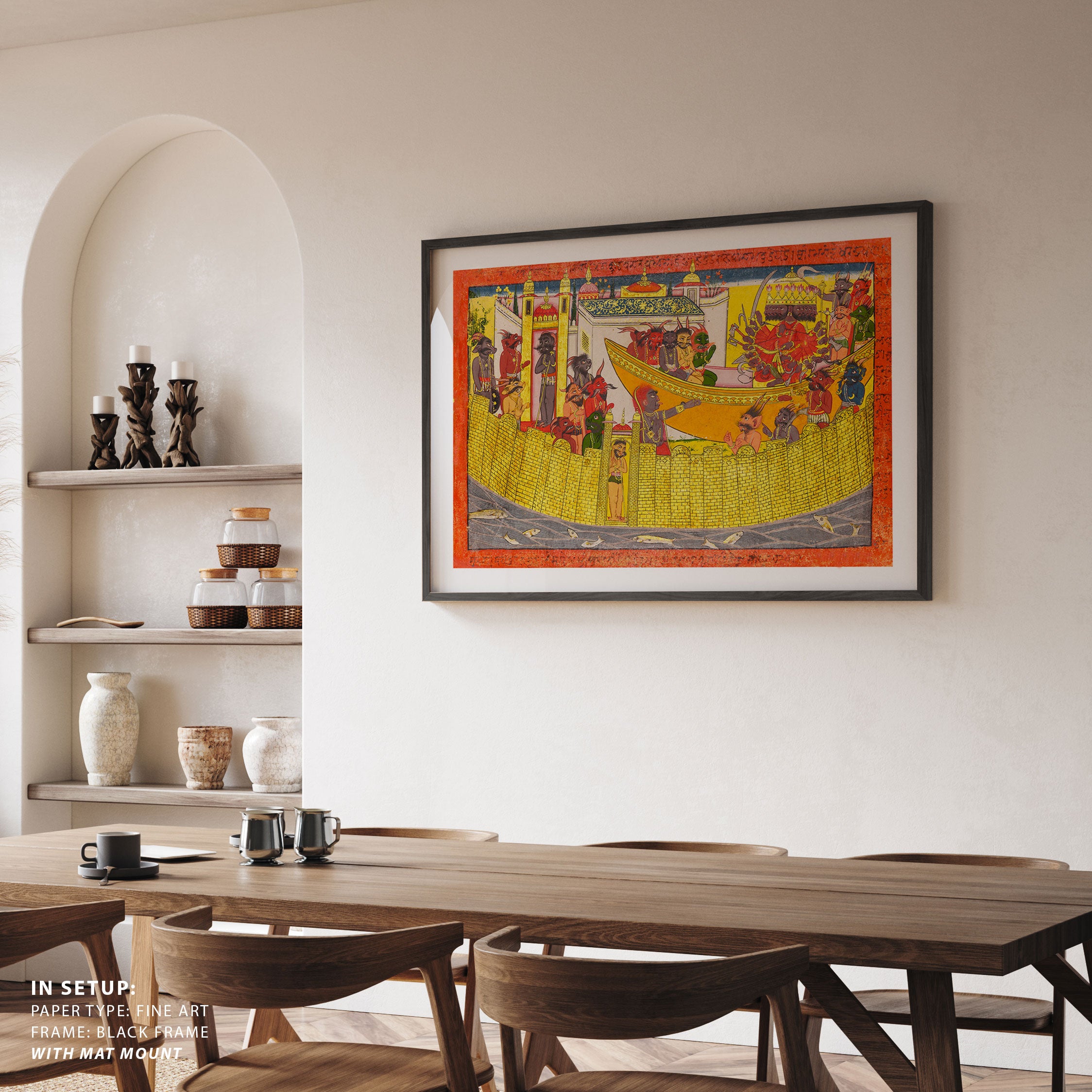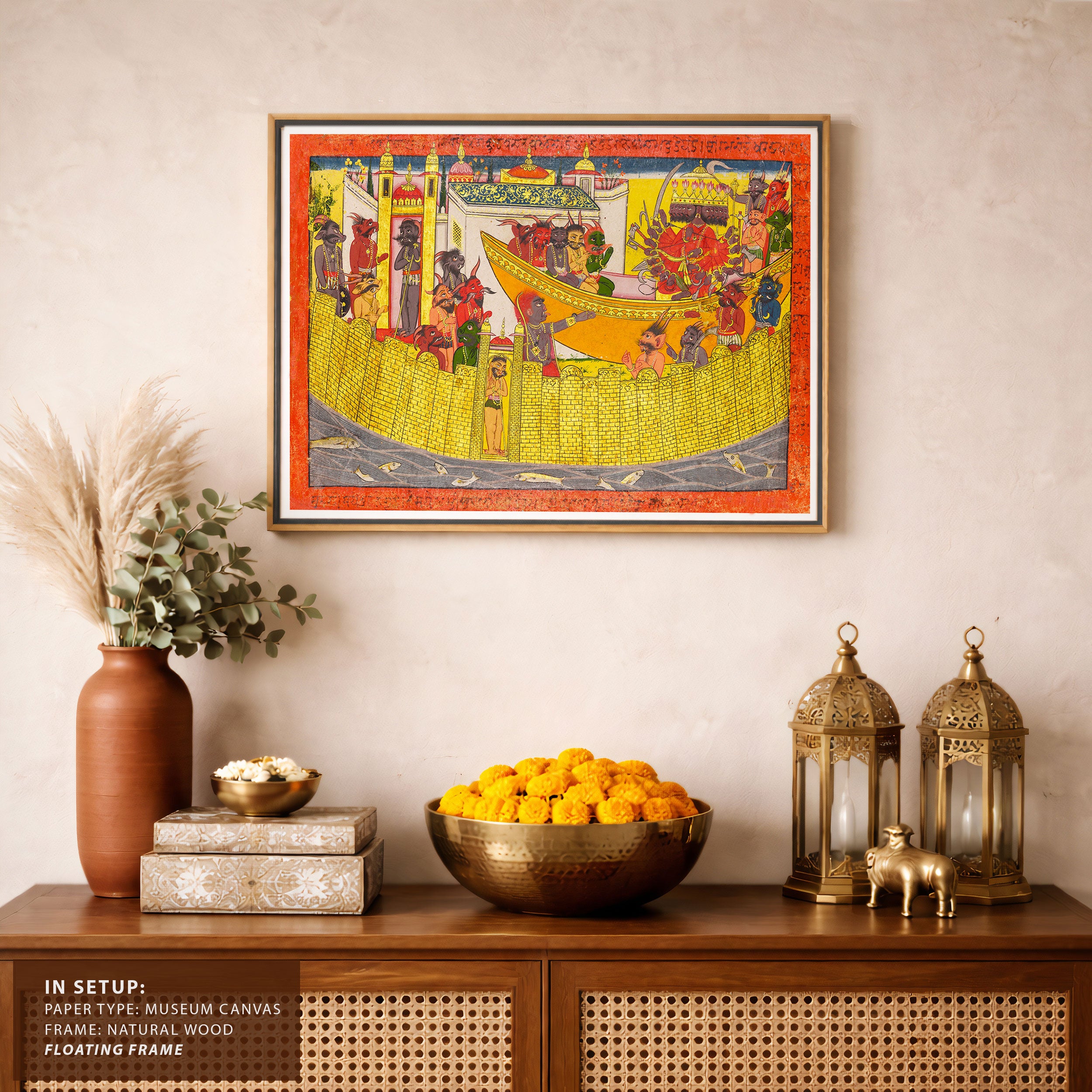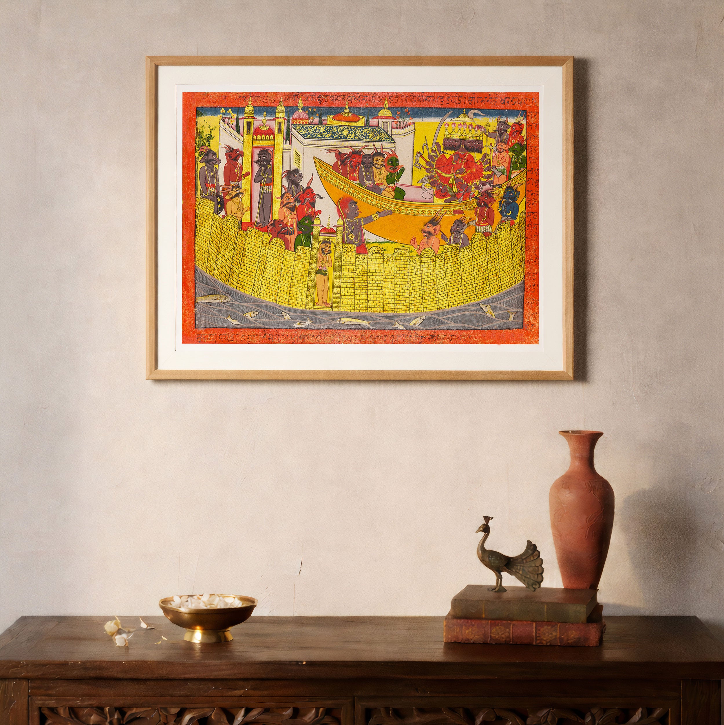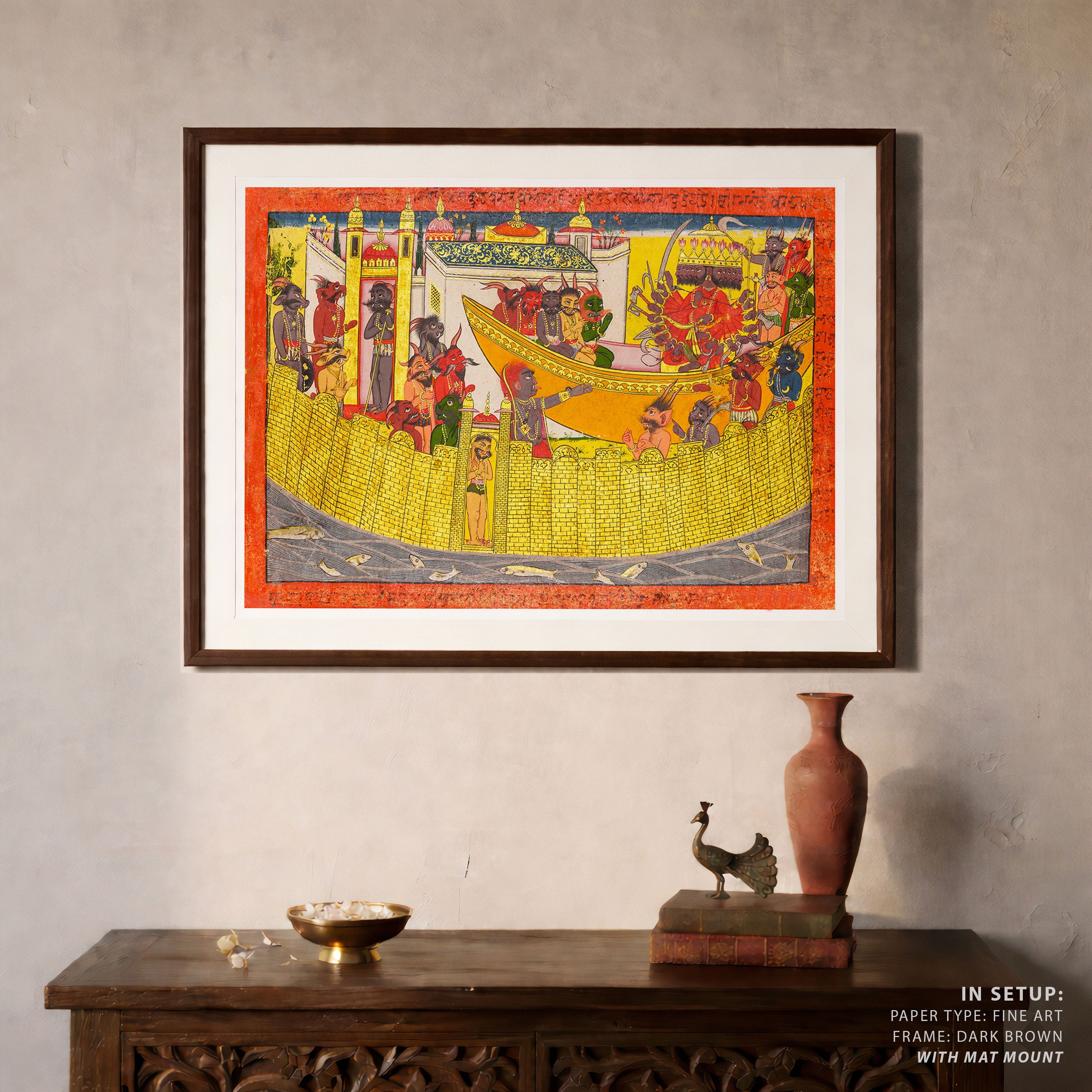 Bring elegance and cultural harmony into your space with this beautiful artwork, Shurpanakha Demands Vengeance, from our Classical Indian Art Collection. Rooted in India’s rich classical and miniature painting traditions, this artwork showcases expressive figures, symbolic motifs, ornate architectural details, and serene natural landscapes, all rendered with refined craftsmanship and thoughtful precision. Its narrative depth and decorative richness make it ideal for traditional, heritage, eclectic, and contemporary interiors, adding warmth, character, and a timeless sense of history and storytelling to every interior.