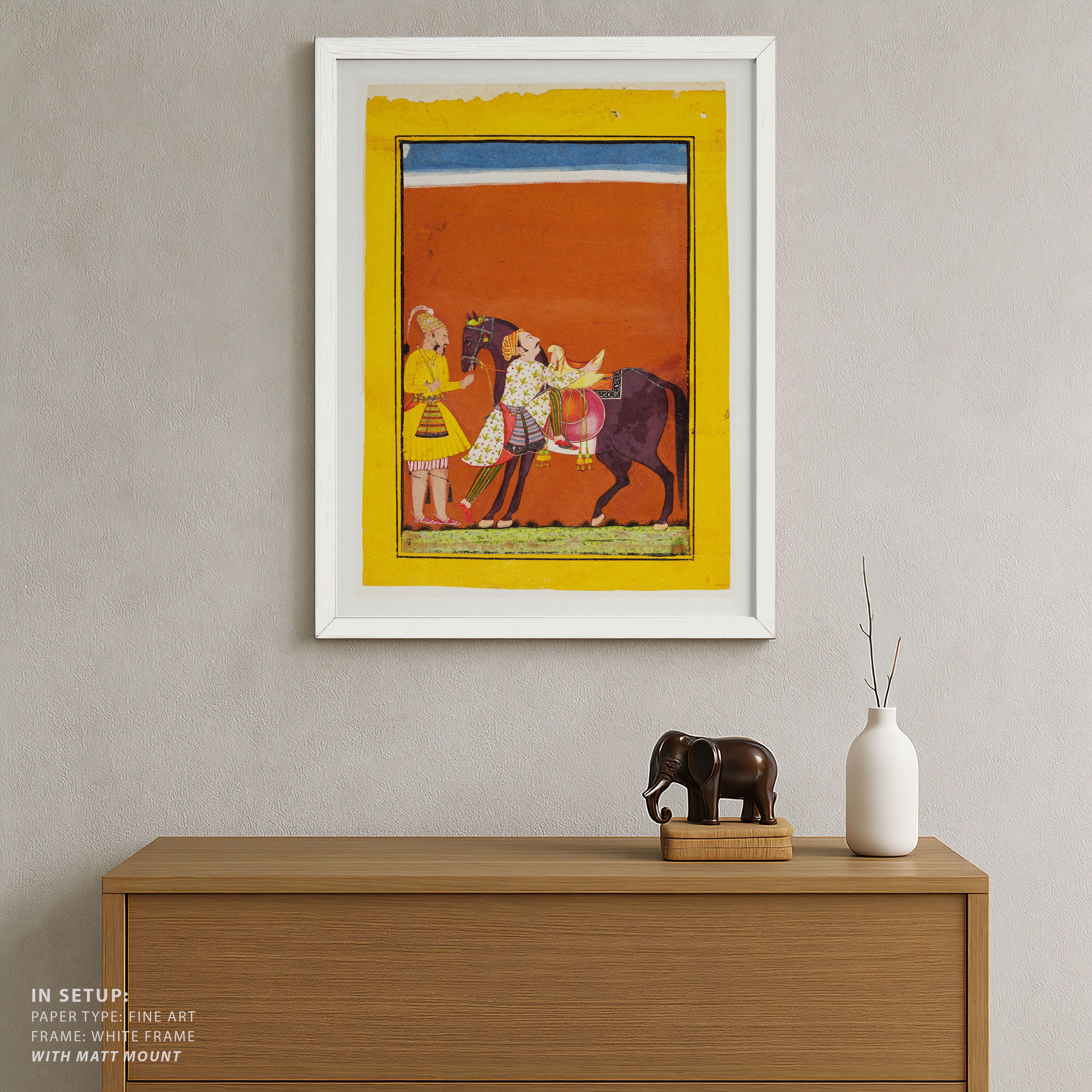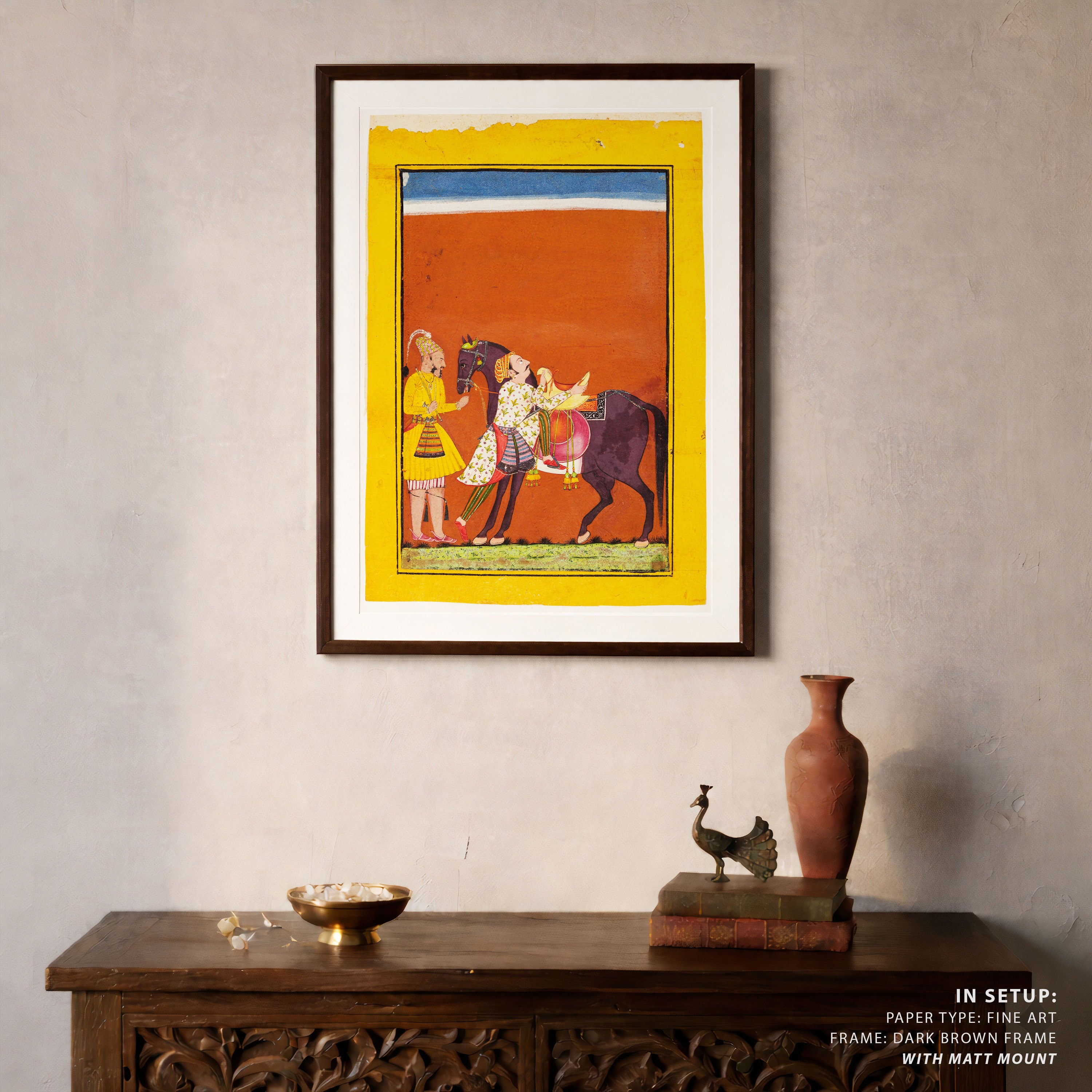 Bring elegance and cultural harmony into your space with this beautiful artwork, The Warrior Mounting His Steed, from our Classical Indian Art Collection. This timeless artwork features expressive figures, symbolic motifs, intricate detailing, and harmonious compositions inspired by India’s rich artistic traditions. Perfect for traditional, heritage, eclectic, and contemporary interiors, Indian folk and classical wall art adds depth, warmth, and a sense of history and storytelling to every interior.