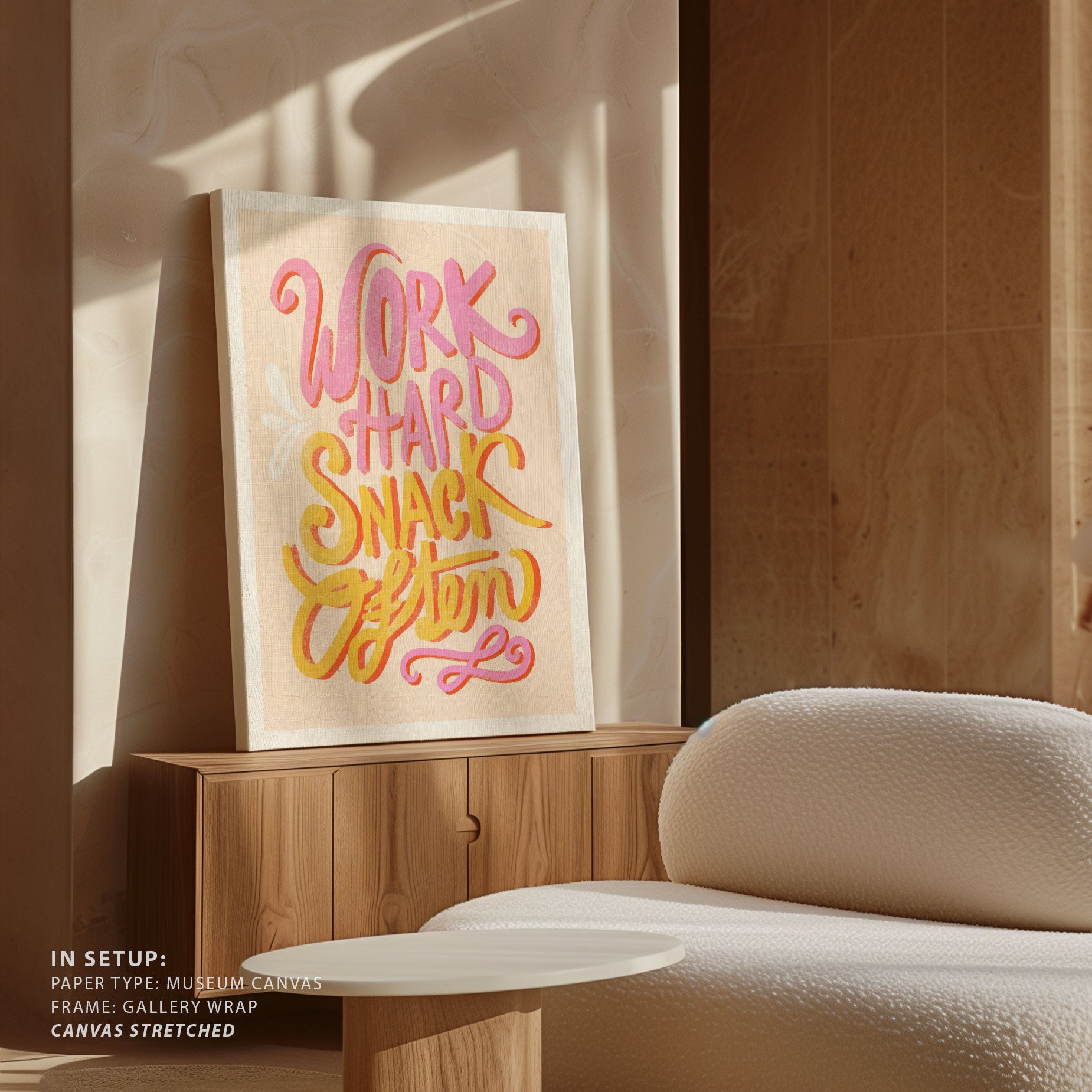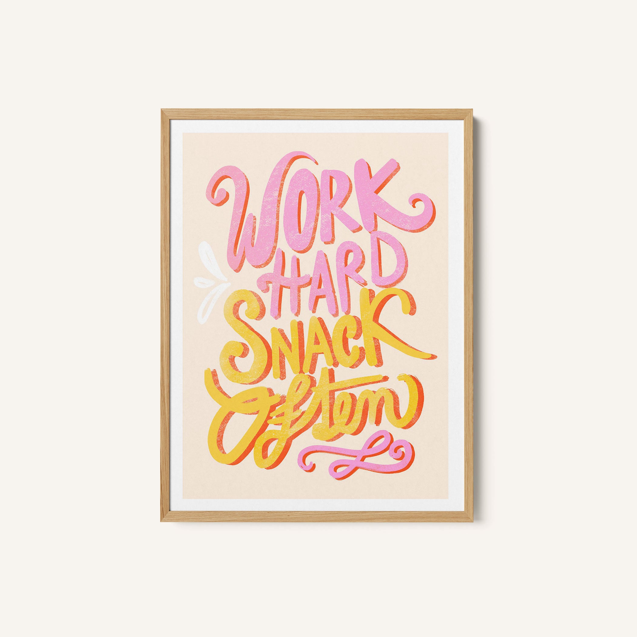 Infuse your space with modern inspiration and expressive design through this beautiful artwork, Work Hard Snack Often, from our Text and Quotes Art Prints Collection. Created to embody contemporary visual storytelling with refined simplicity, this artwork combines clean composition, intentional typography, and well-balanced color contrasts to create a bold yet harmonious visual statement. Whether minimal, motivational, or concept-driven, it adds focus, personality, and modern sophistication to traditional, modern, eclectic, and contemporary interiors.