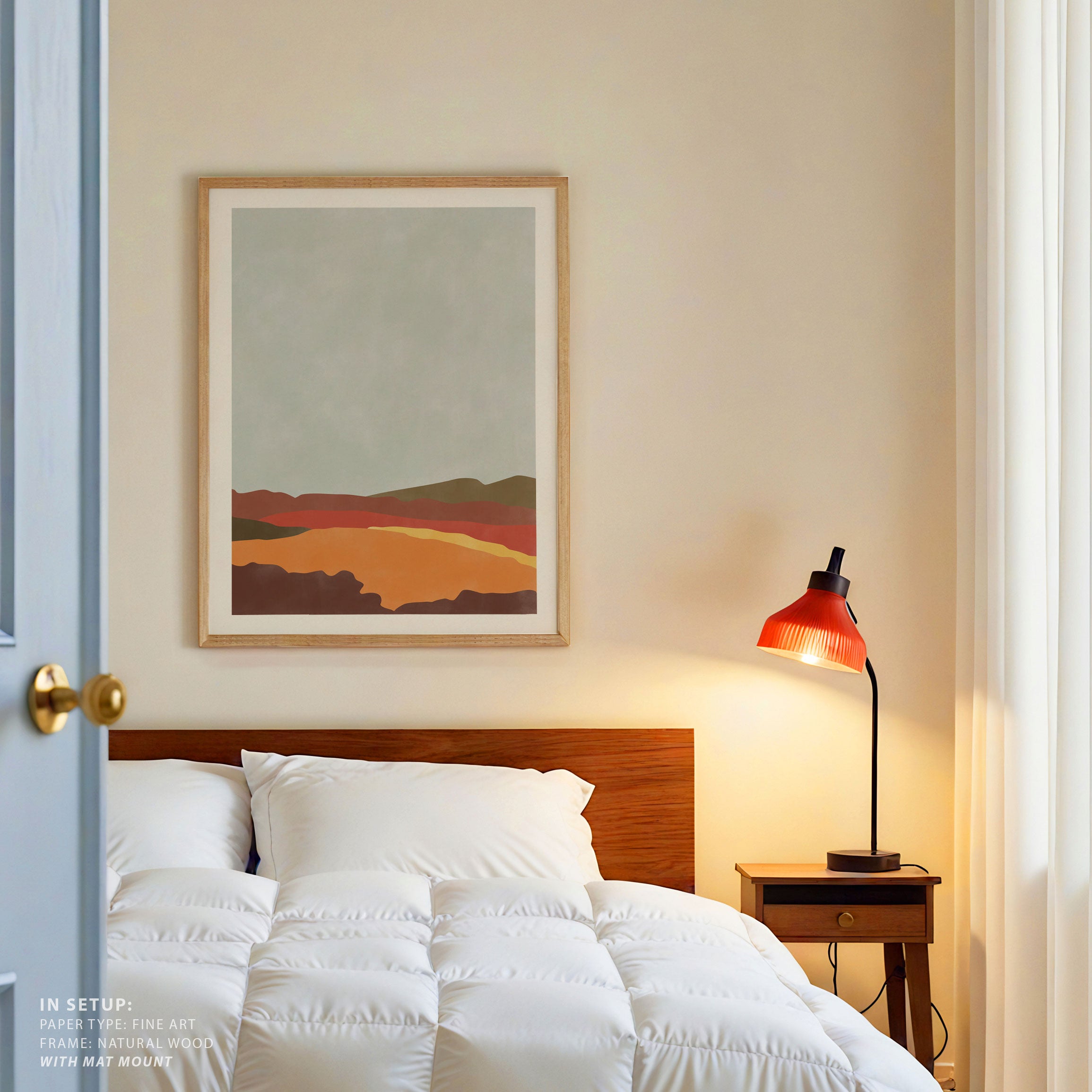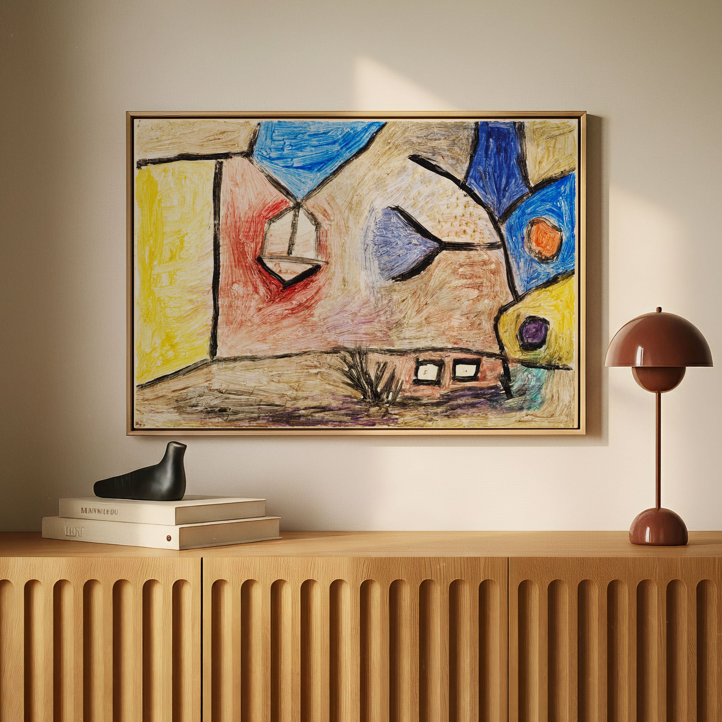 Yellow is known for its ability to energise spaces and create a sense of warmth and openness. In wall art, yellow adds movement, light, and positivity while pairing beautifully with white, beige, grey, wood, and neutral tones.