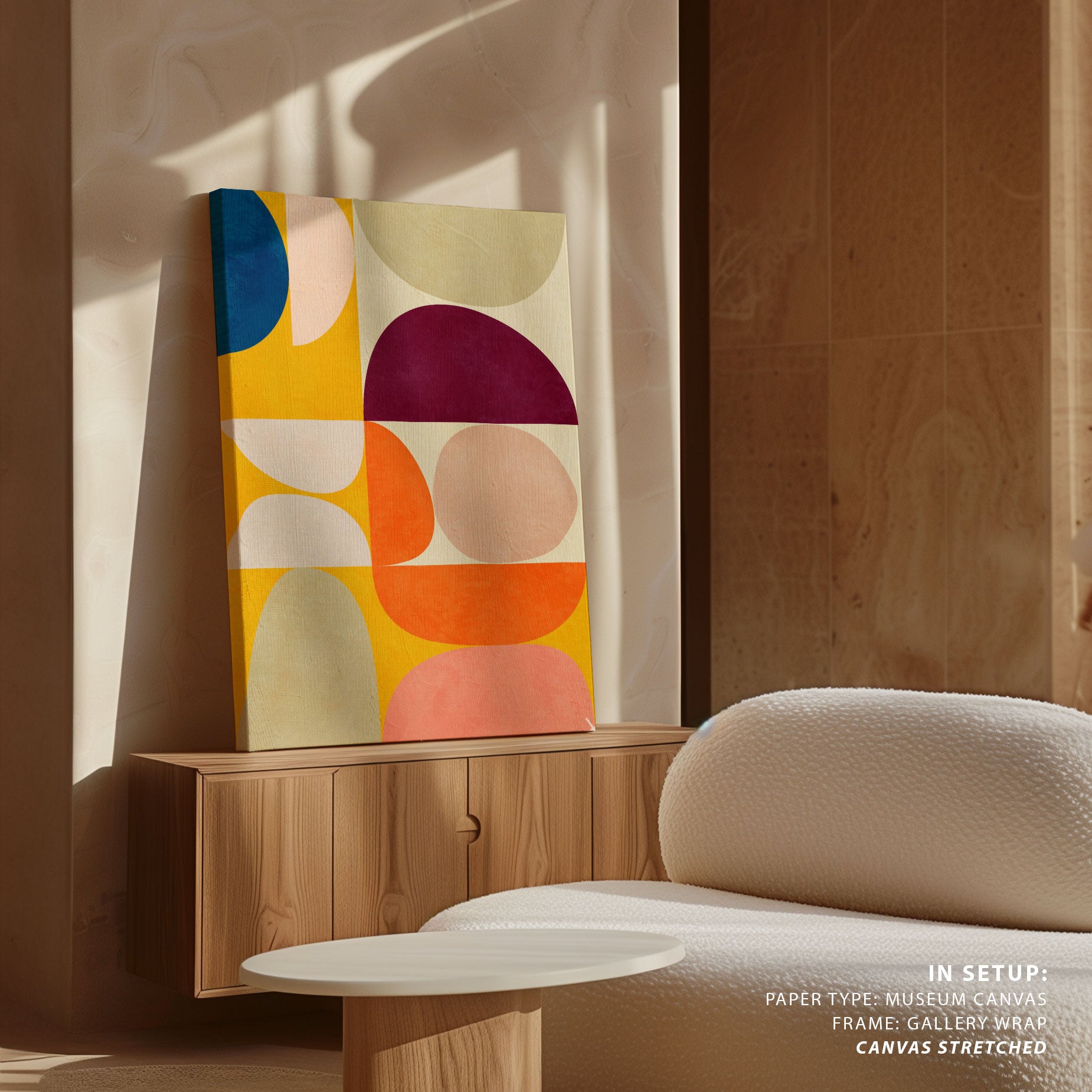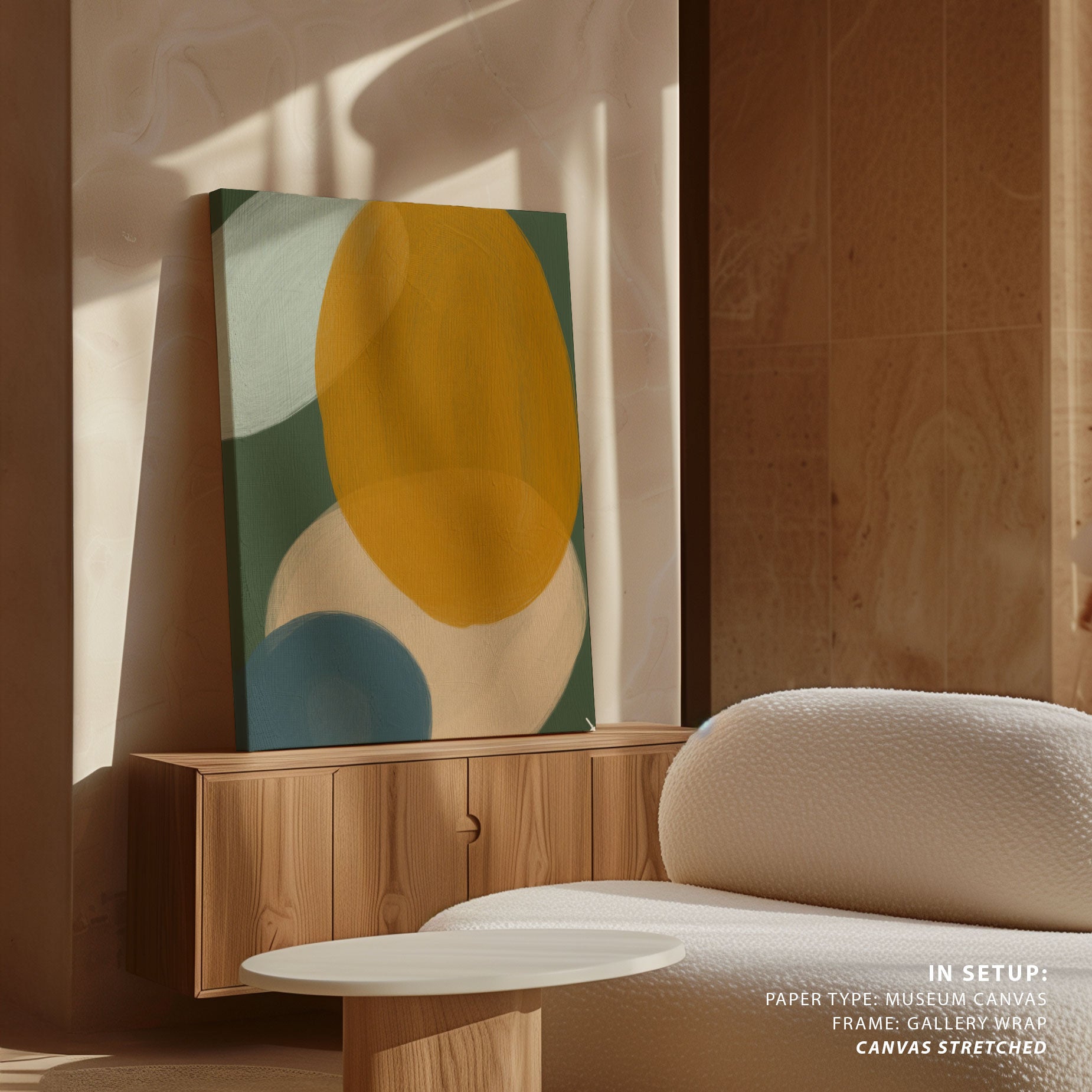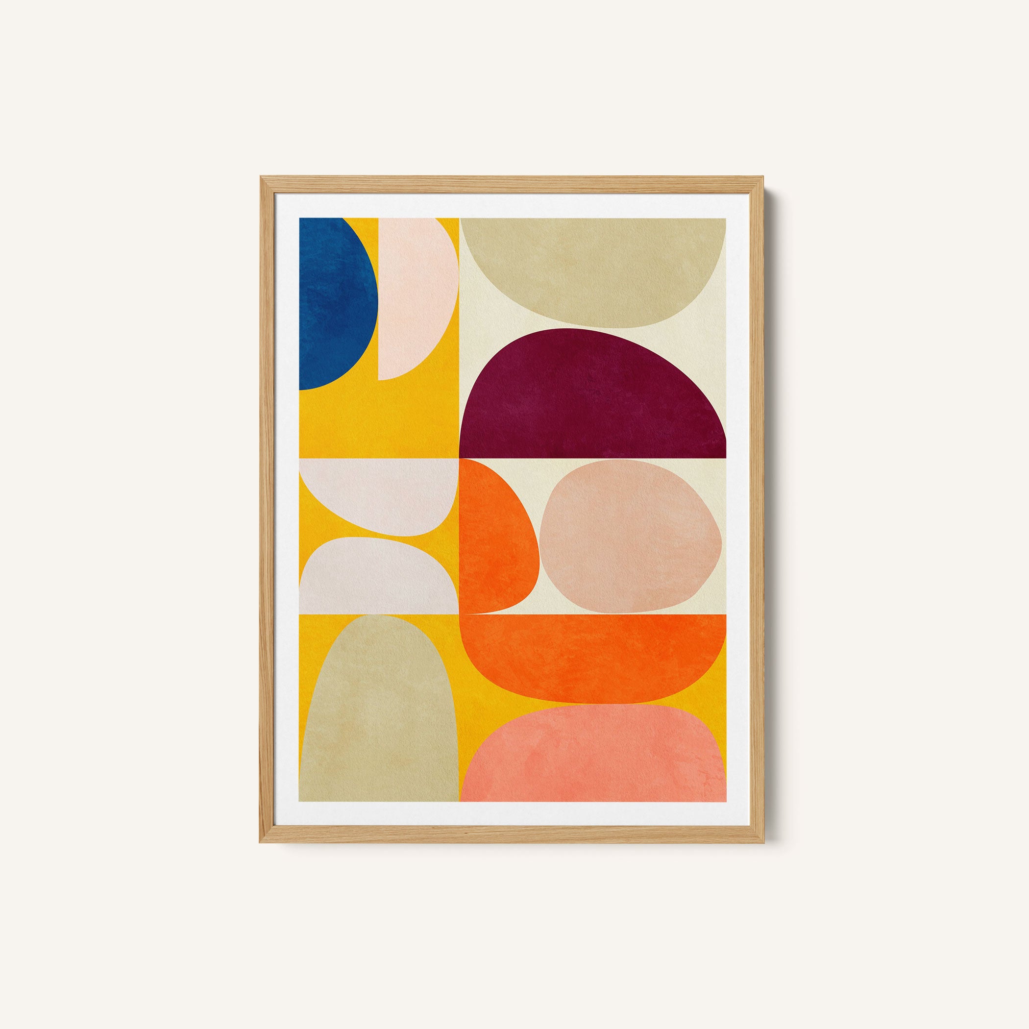 Yellow is known for its ability to energise spaces and create a sense of warmth and openness. In wall art, yellow adds movement, light, and positivity while pairing beautifully with white, beige, grey, wood, and neutral tones.
