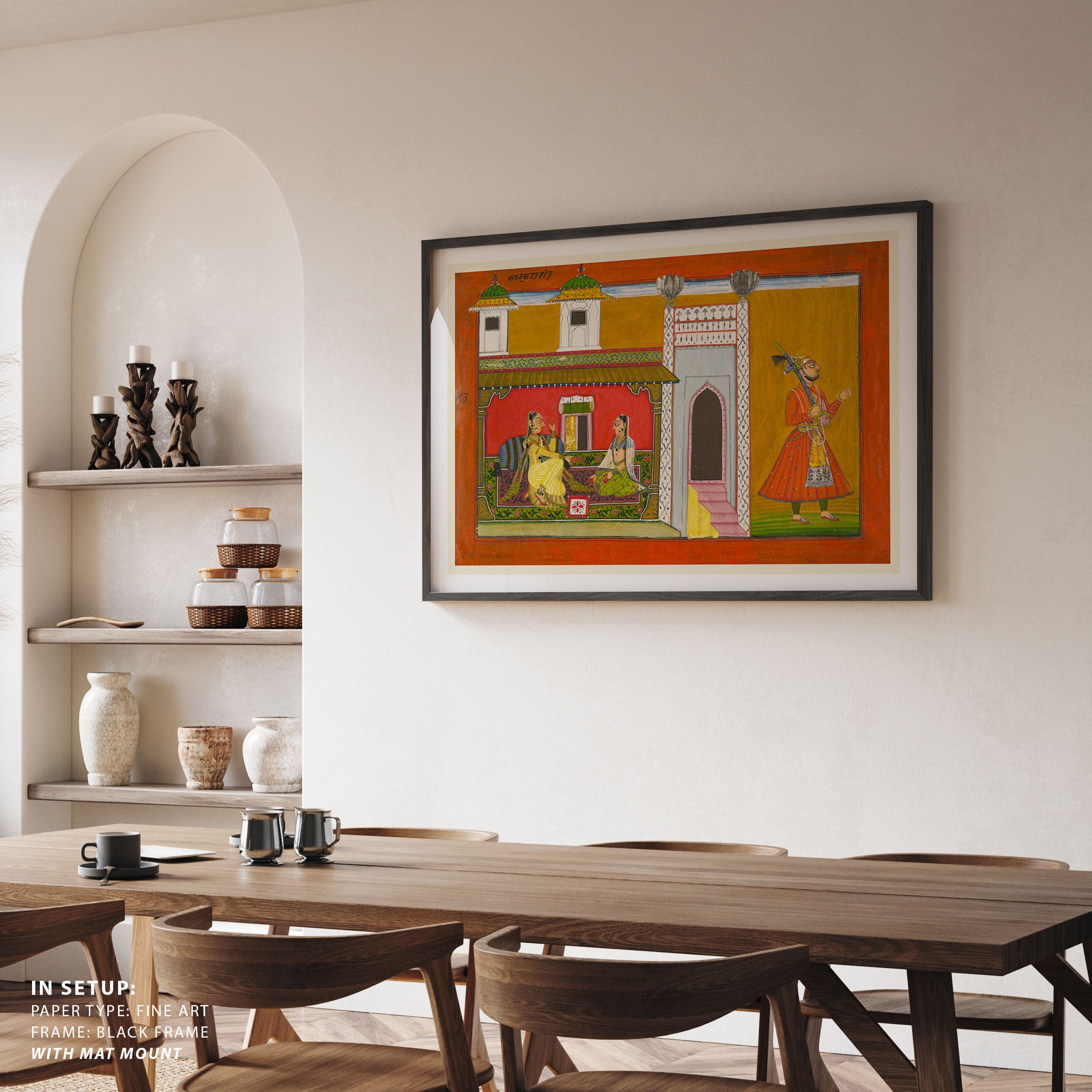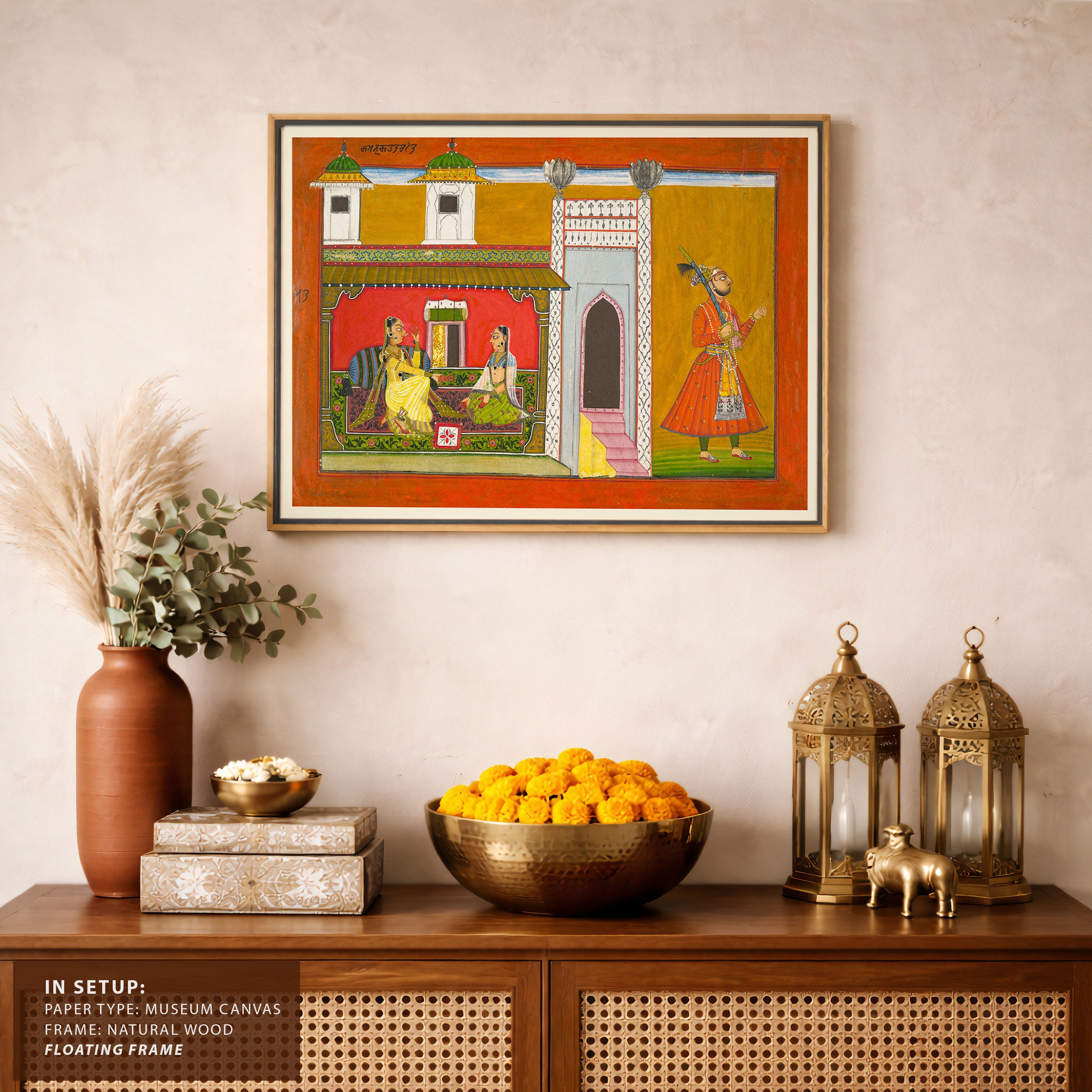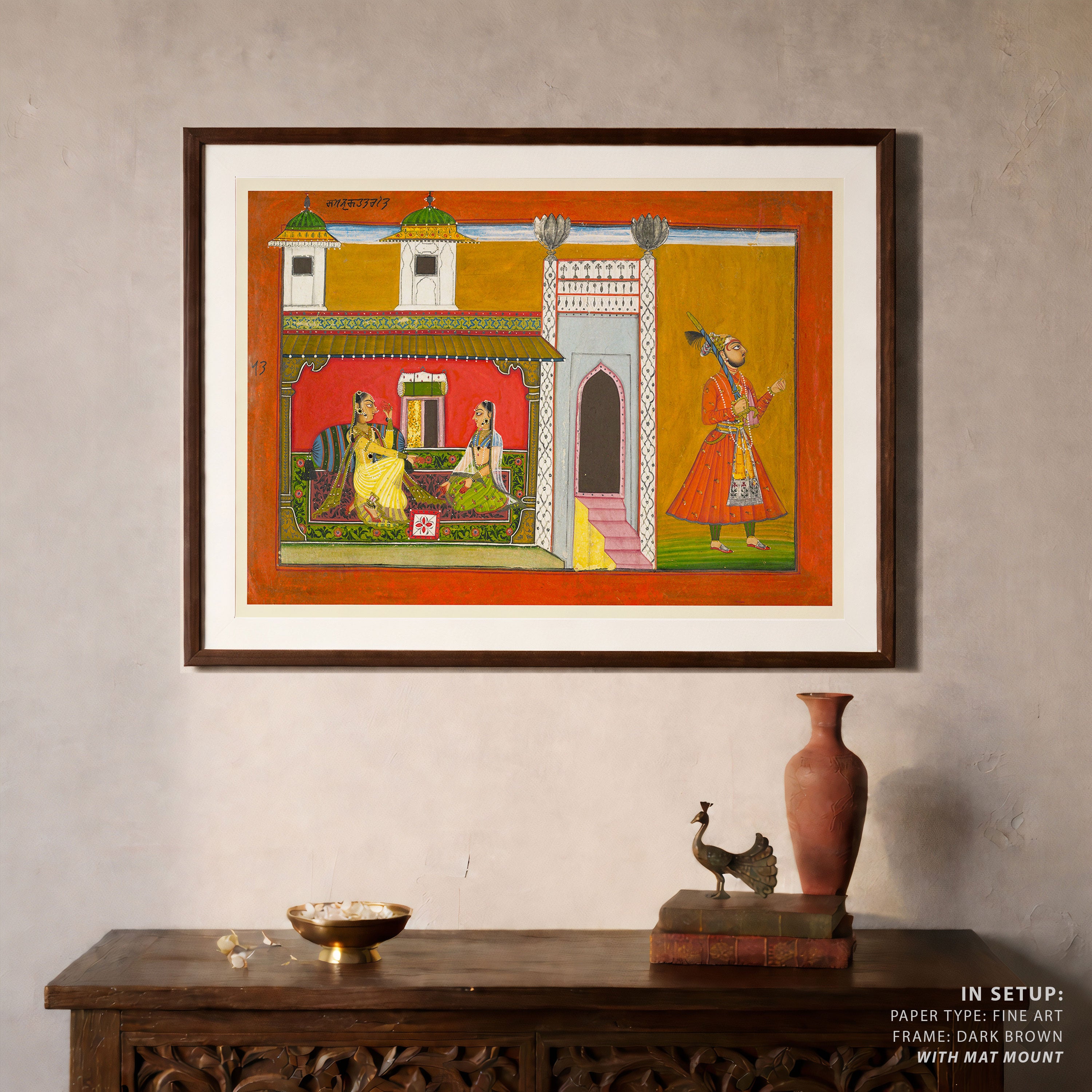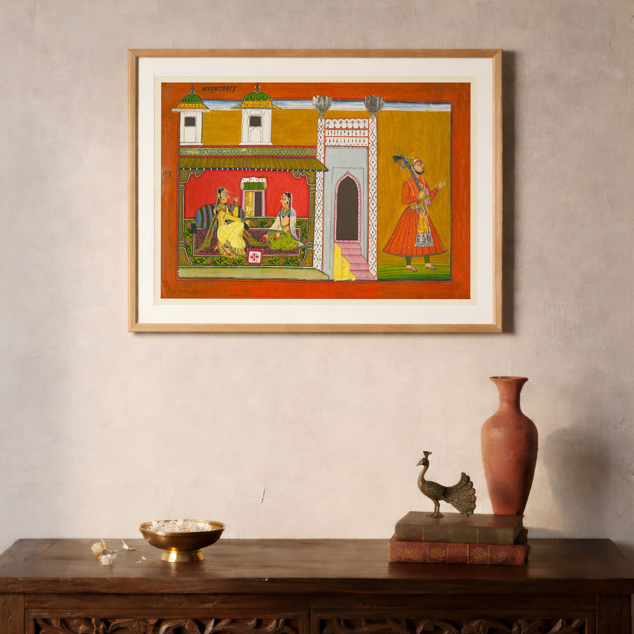 Bring elegance and cultural harmony into your space with this beautiful artwork, A Courtesan and Her Lover Estranged by a Quarrel, from our Classical Indian Art Collection. Rooted in India’s rich classical and miniature painting traditions, this artwork showcases expressive figures, symbolic motifs, ornate architectural details, and serene natural landscapes, all rendered with refined craftsmanship and thoughtful precision. Its narrative depth and decorative richness make it ideal for traditional, heritage, eclectic, and contemporary interiors, adding warmth, character, and a timeless sense of history and storytelling to every interior.