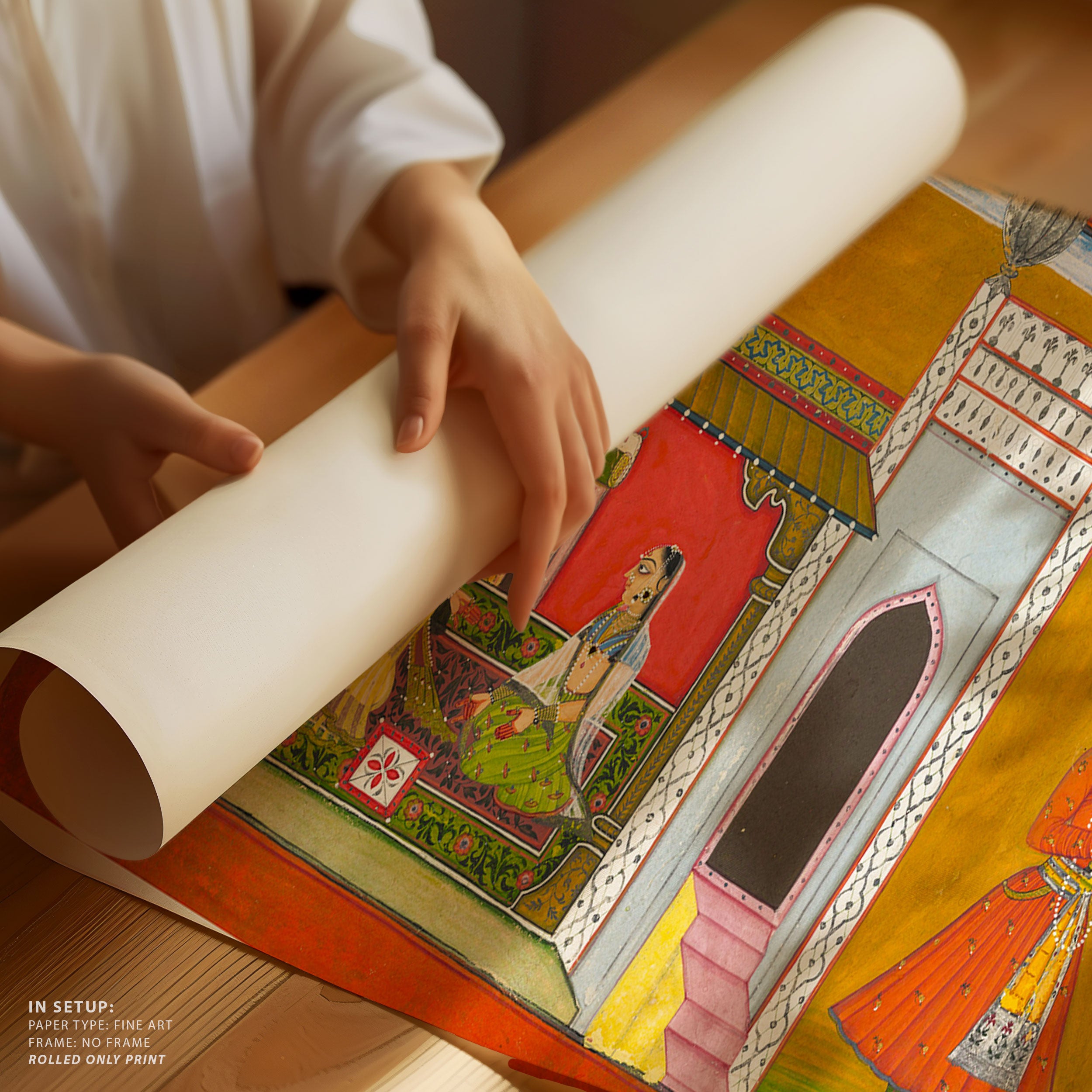 Through meticulous brushwork, balanced composition, and a sophisticated interplay of color and form, Indian Tales artworks convey emotion, rhythm, and layered narratives inspired by mythology, folklore, and everyday life. Each piece invites mindful contemplation, encouraging viewers to pause and engage with subtle expressions, gentle movement, and harmonious settings that celebrate presence, reflection, and the enduring poetry of India’s artistic legacy.
