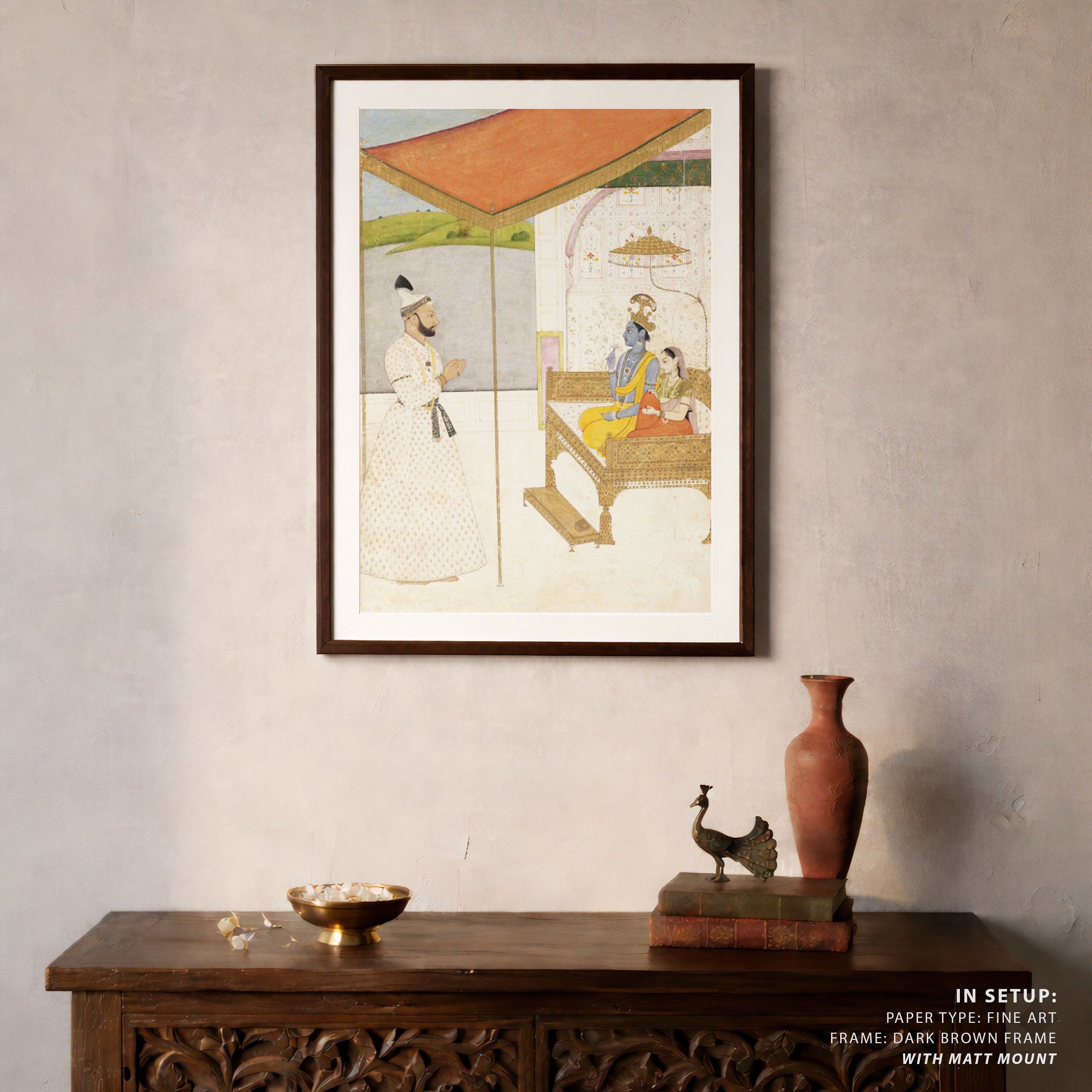 Bring elegance and cultural harmony into your space with this beautiful artwork, A King’s Divine Vision, from our Classical Indian Art Collection. This timeless artwork features expressive figures, symbolic motifs, intricate detailing, and harmonious compositions inspired by India’s rich artistic traditions. Perfect for traditional, heritage, eclectic, and contemporary interiors, Indian folk and classical wall art adds depth, warmth, and a sense of history and storytelling to every interior.