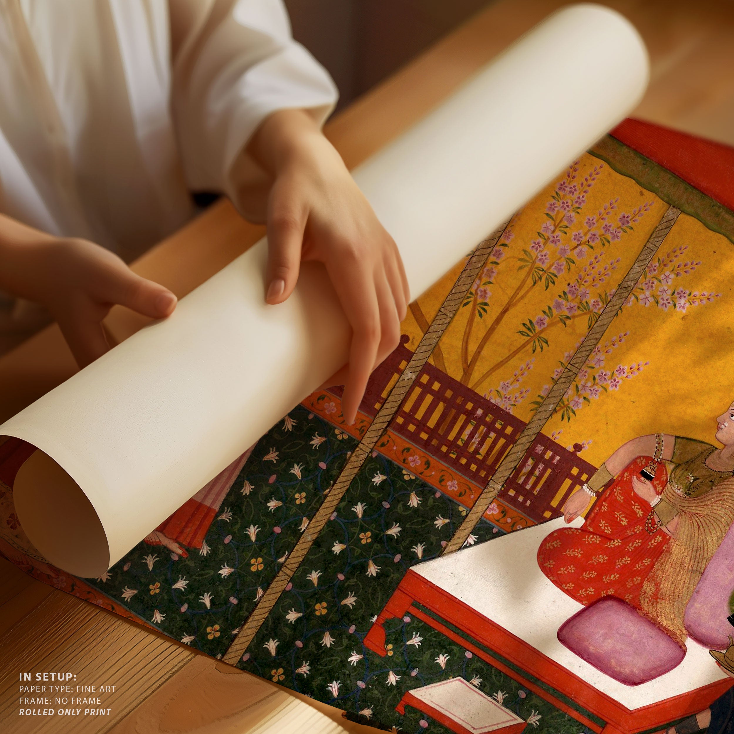 Through meticulous brushwork, balanced composition, and a sophisticated interplay of color and form, Indian Tales artworks convey emotion, rhythm, and layered narratives inspired by mythology, folklore, and everyday life. Each piece invites mindful contemplation, encouraging viewers to pause and engage with subtle expressions, gentle movement, and harmonious settings that celebrate presence, reflection, and the enduring poetry of India’s artistic legacy.