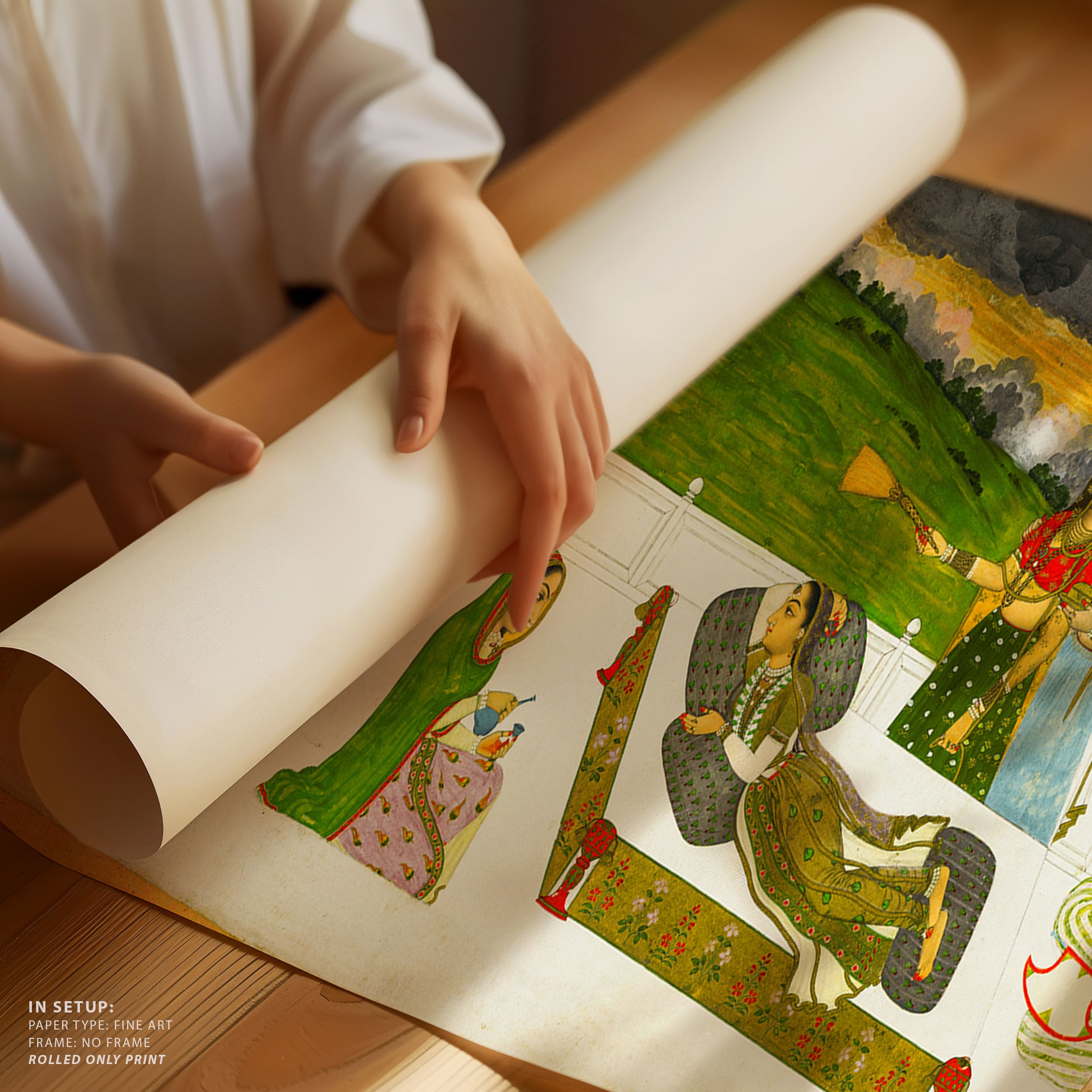 Through meticulous brushwork, balanced composition, and a sophisticated interplay of color and form, Indian Tales artworks convey emotion, rhythm, and layered narratives inspired by mythology, folklore, and everyday life. Each piece invites mindful contemplation, encouraging viewers to pause and engage with subtle expressions, gentle movement, and harmonious settings that celebrate presence, reflection, and the enduring poetry of India’s artistic legacy.