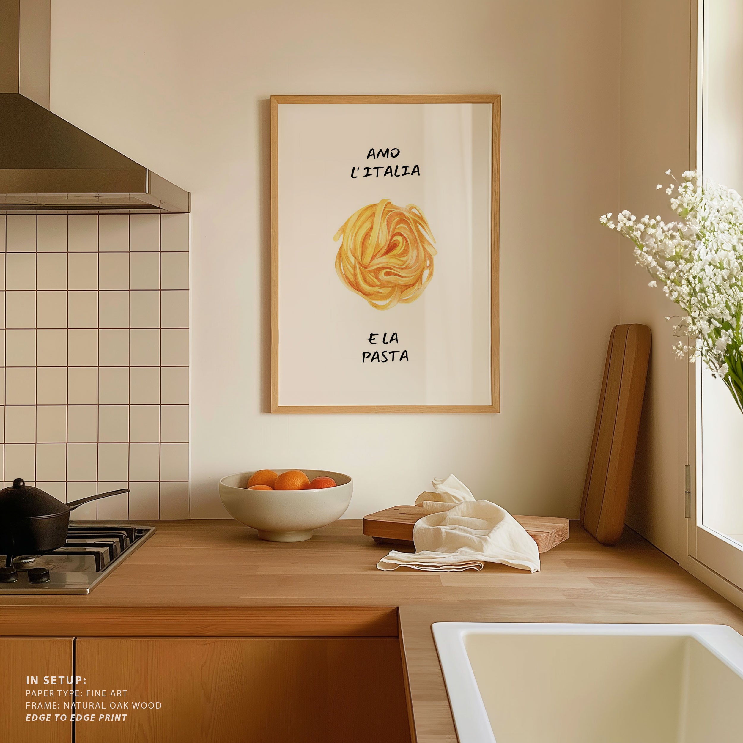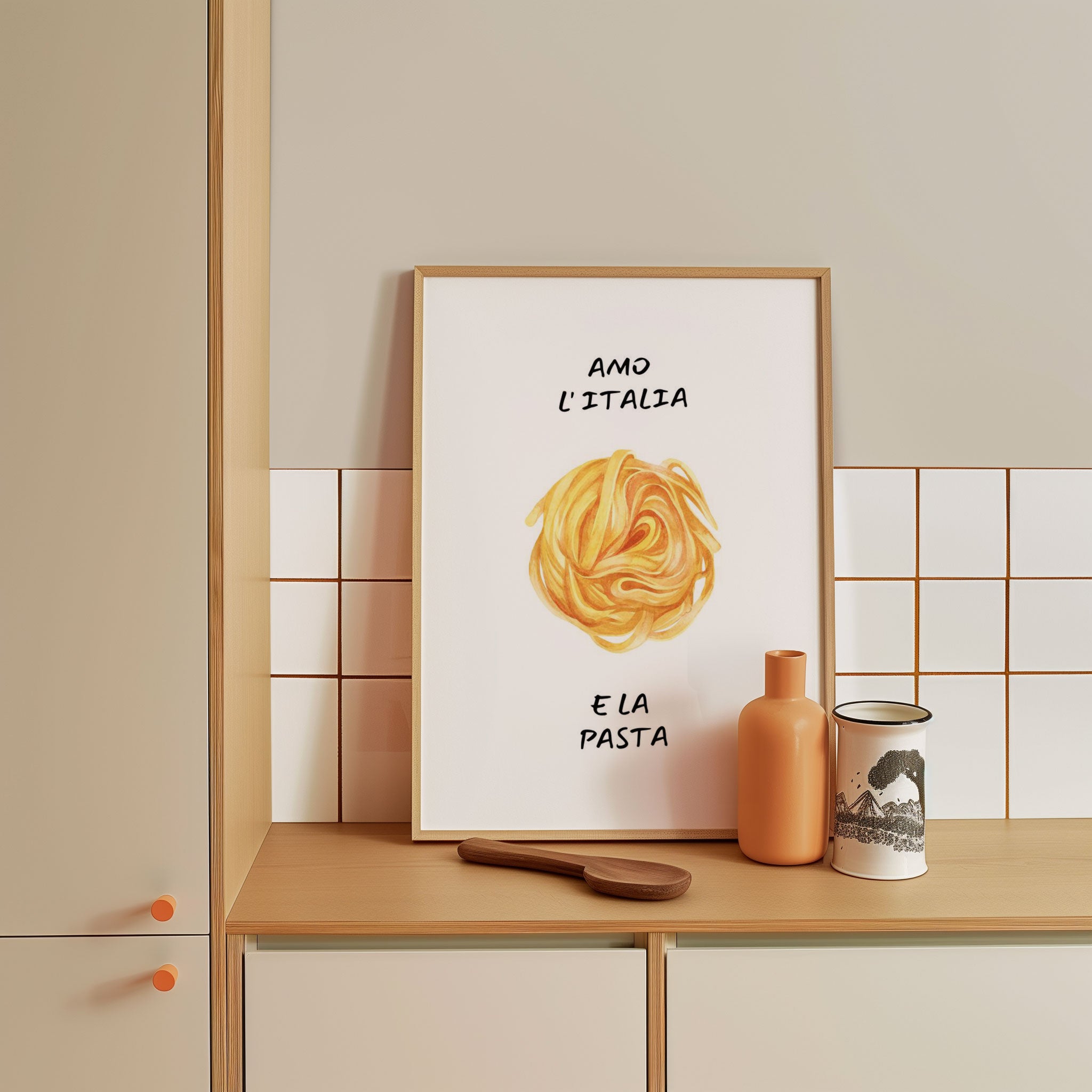 Turn your kitchen or café into a haven of slow mornings and gentle ambiance with this trendy wall art print. Amo lAaitalia from our Kitchen and Café Art Prints Collection, featuring clean, pop-art‑style typography. The playful yet graphic design tone fits right in with today’s trending food‑and‑drink decor, matching lines of witty kitchen quotes and minimal illustrations that instantly tell you this is all about coffee, tea or juice.