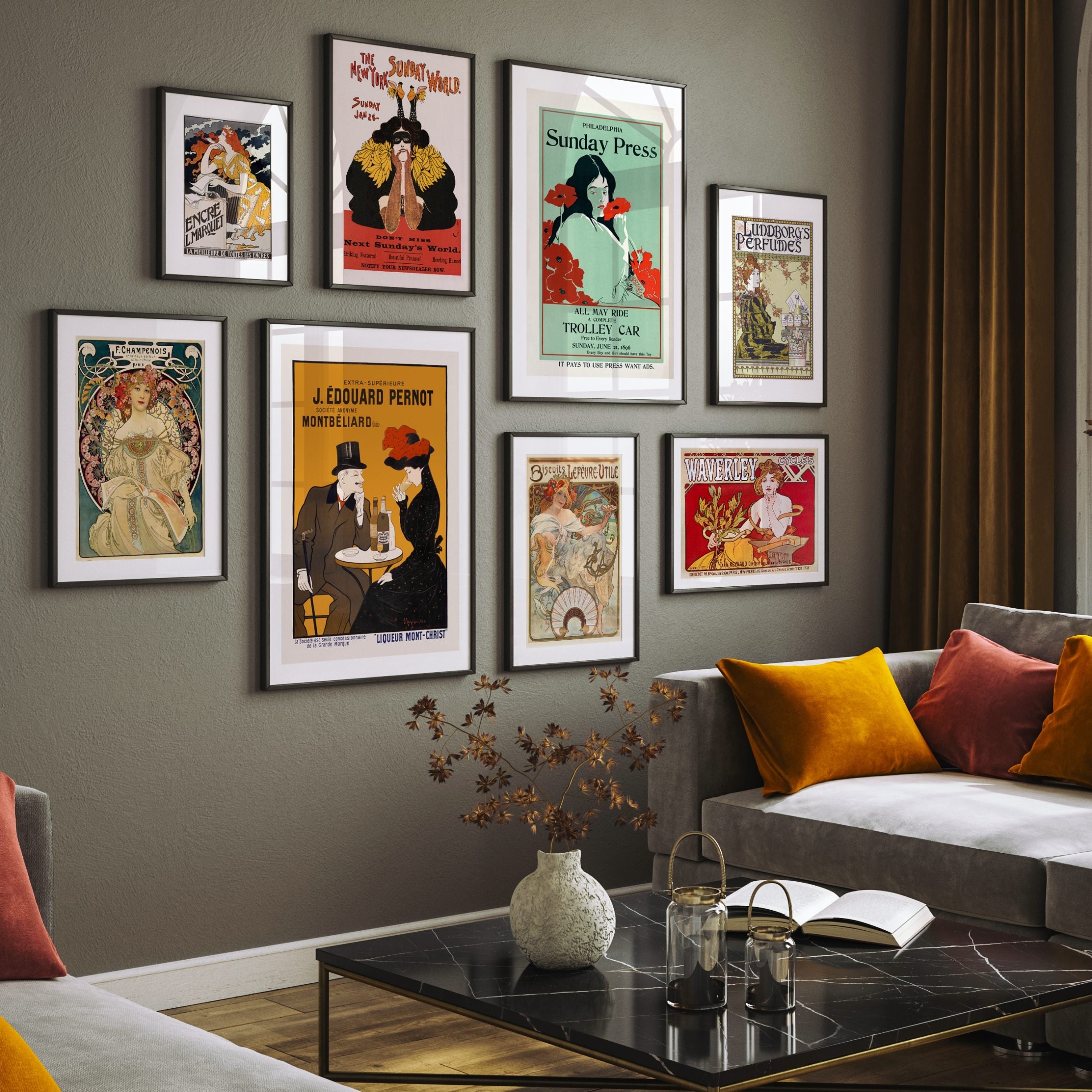 Art Nouveau Set of 8, Vintage Wall Art, Gallery Wall Set
