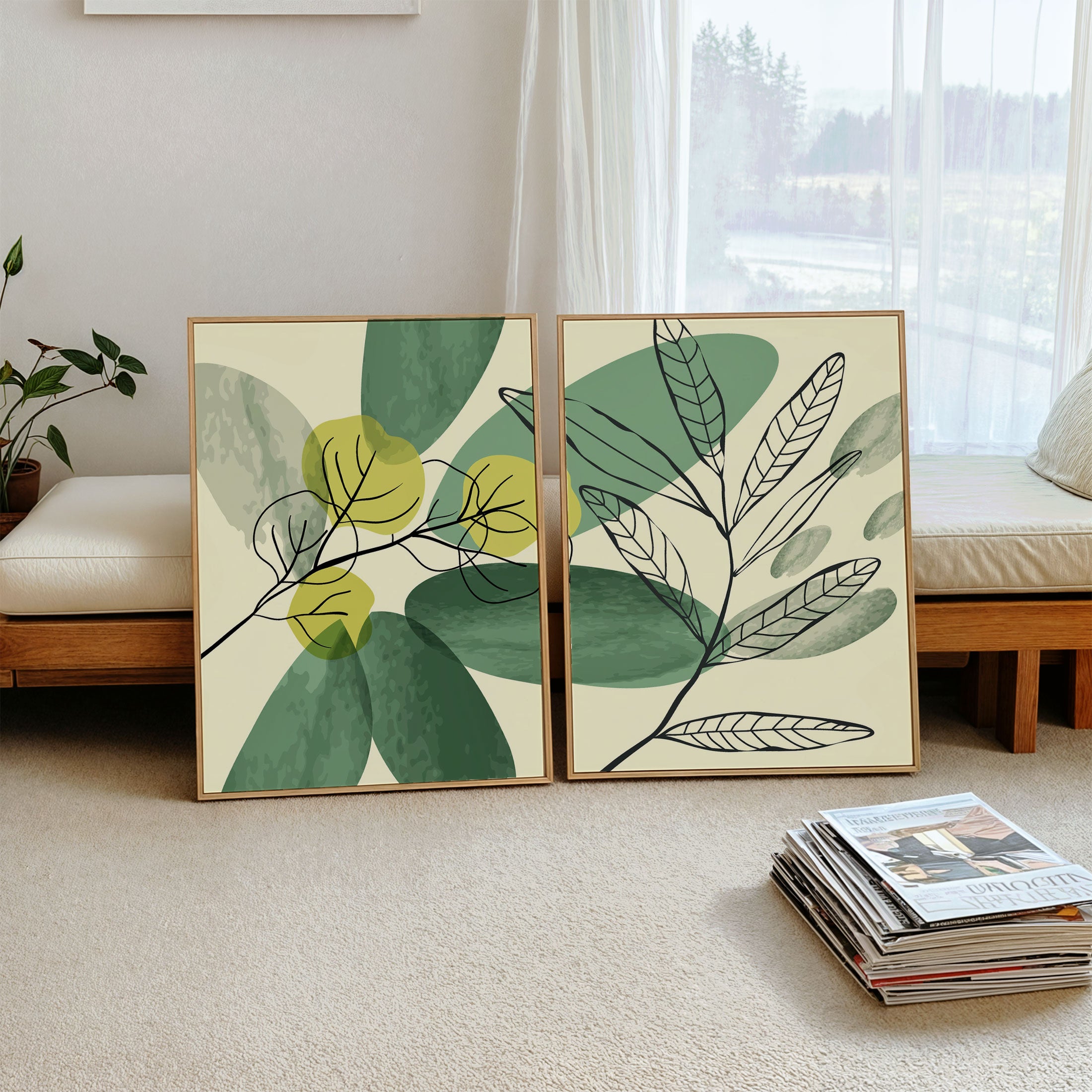 Boho Green Leaves - from our Set of 2 Art Prints Collection is printed on premium-quality canvas or fine art paper with a smooth matte finish and vibrant, long-lasting colors that bring each detail to life. These Set of 2 Wall Art Prints are made with exceptional color clarity and precision, following the same high standards used by professional galleries and art studios. Perfect for art lovers or anyone looking to add a touch of modern botanical elegance to their space, these prints look stunning in any bedroom, living room, bathroom, balcony, or office. Get inspired by our designer-curated art sets, and complete your space with handmade, custom frames crafted in-house for a beautifully finished look.