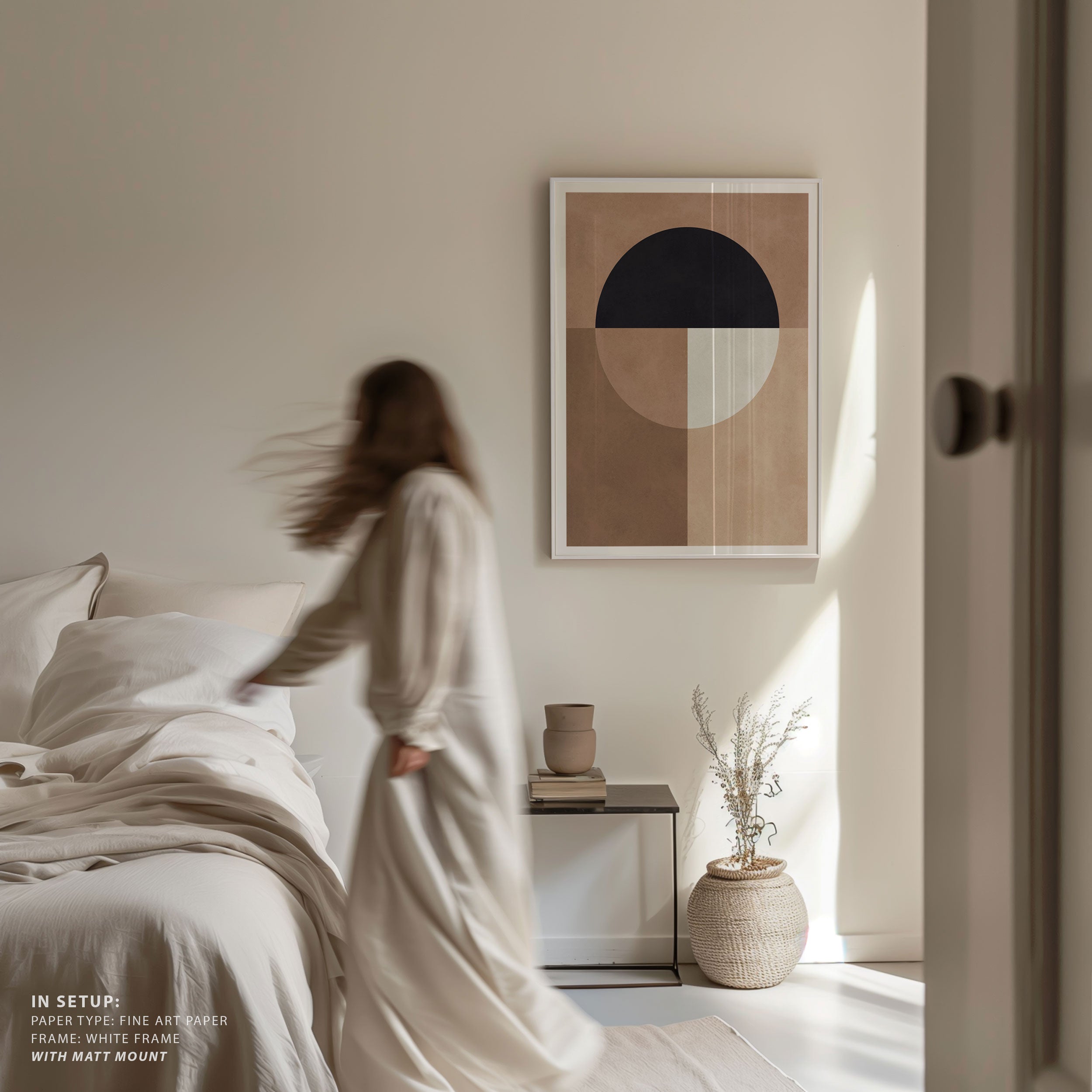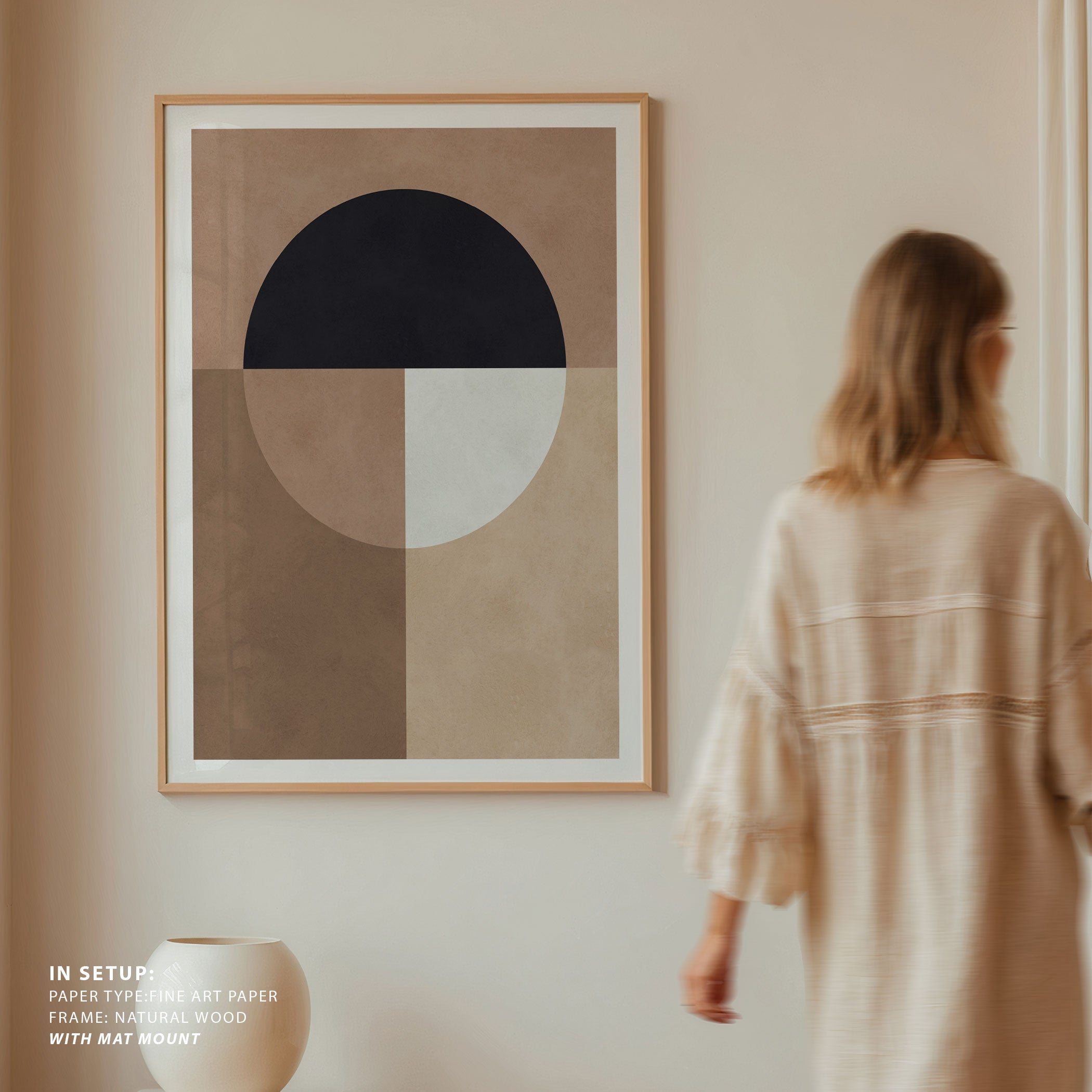 Transport your space to a simpler, quieter era with this neutral abstract art print. This art print, Brown Geometry 7 from our Minimalist Neutral Art Prints Collection, reimagined as a modern, tranquil composition. Picture soft, flowing shapes in muted tones of beige, ivory, and sand, gently layered against a warm, minimalist background. The scene feels peaceful and timeless, as if you’re looking through a window into stillness, calm, and quiet reflection.