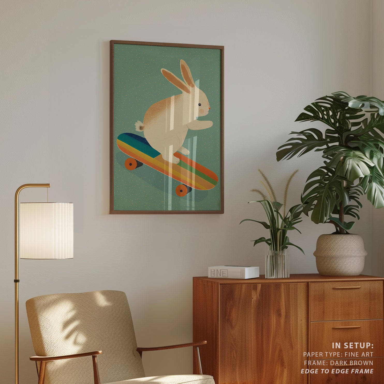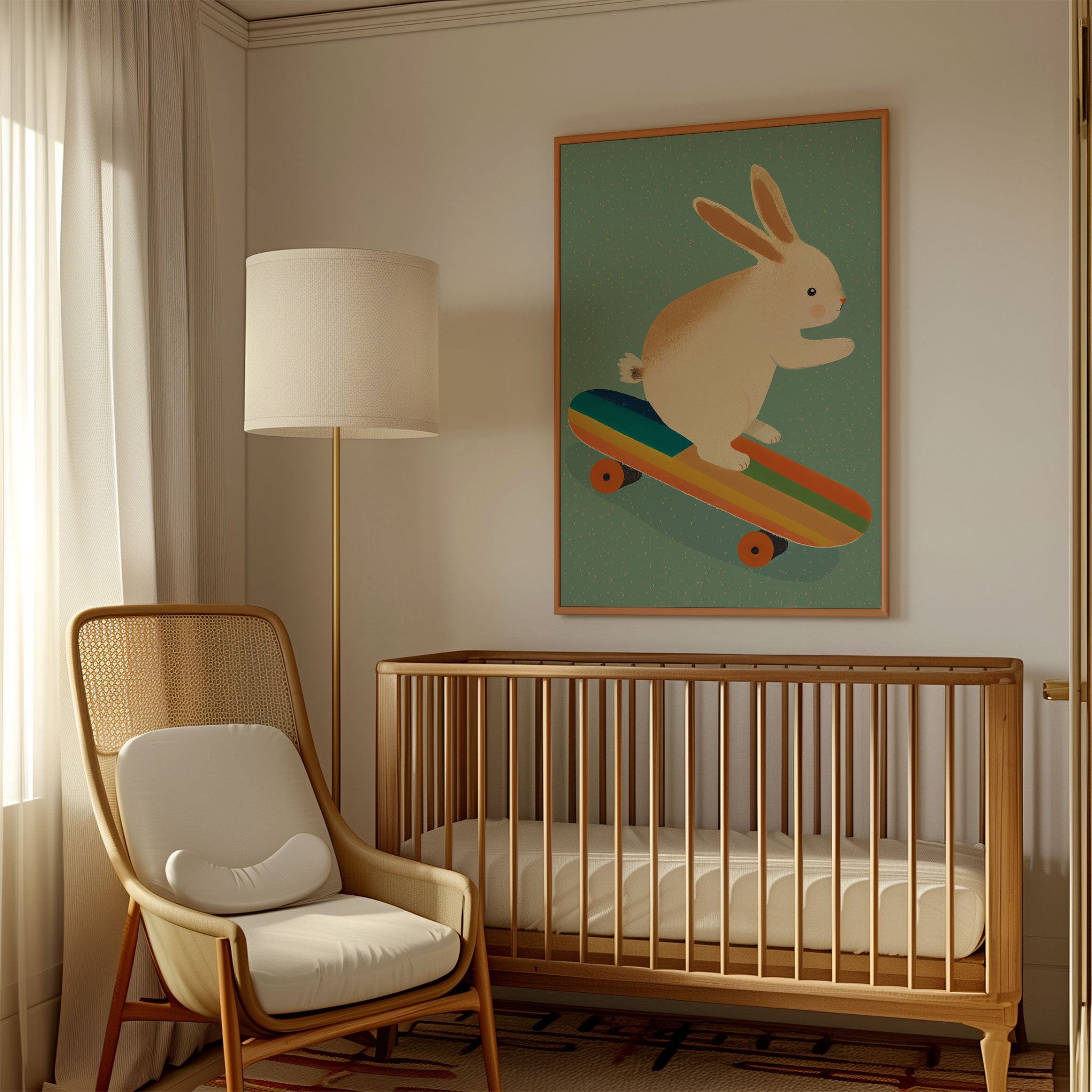 Turn your child’s bedroom, play area, or reading corner into a world of color and joy with this delightful wall art print. Bunny On Skateboard from our Kids Art Prints Collection features a vibrant, storybook-style illustration that captures the spirit of exploration and wonder. The cheerful artwork encourages curiosity and positivity, making it a perfect match for today’s playful, imaginative decor trends. Ideal for families who value creativity, uplifting spaces, and the magic of childhood adventures.