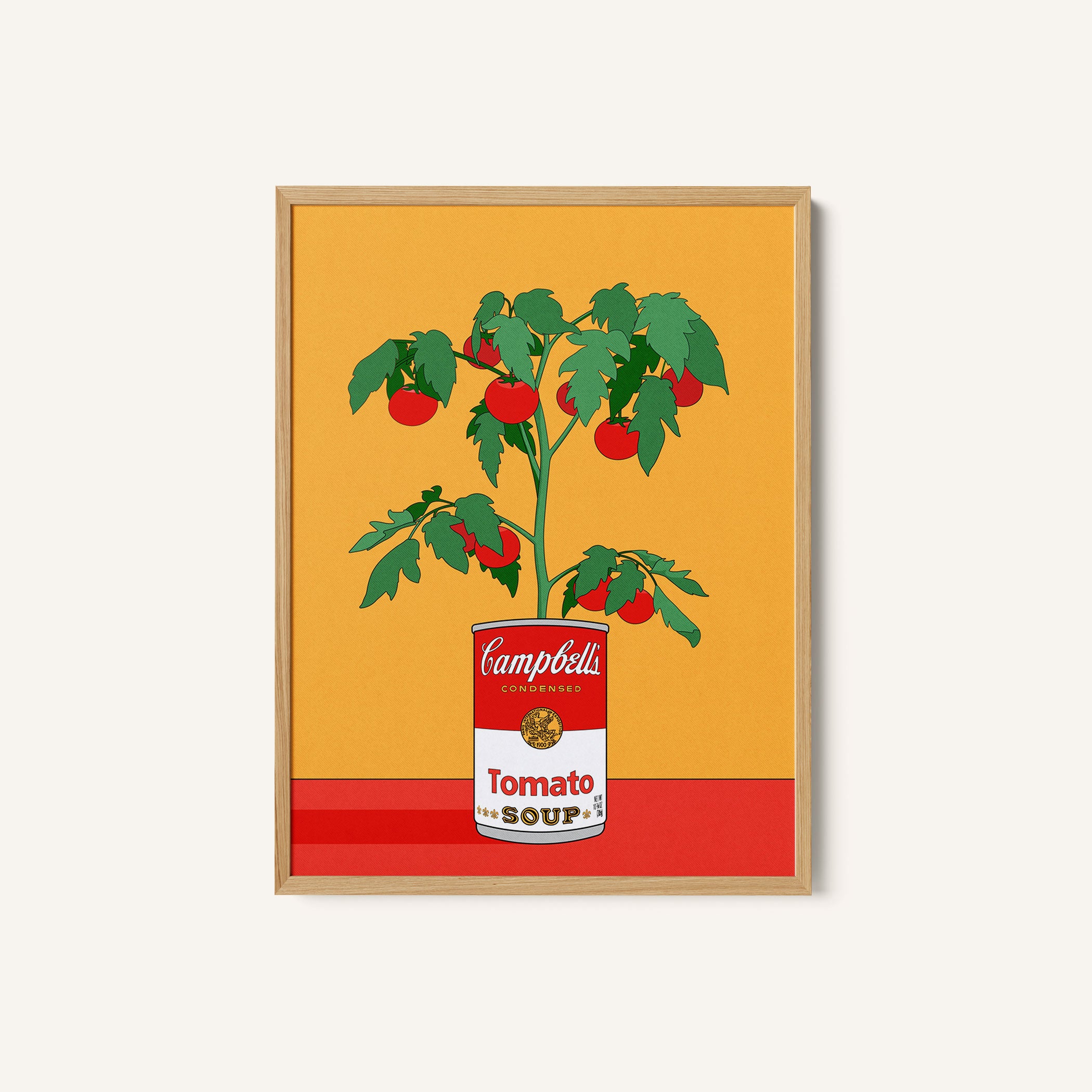 Turn your kitchen or café into a haven of slow mornings and gentle ambiance with this trendy wall art print. Campbells Soup Tomato Plant Retro Illustration from our Kitchen and Café Art Prints Collection, featuring clean, pop-art‑style typography. The playful yet graphic design tone fits right in with today’s trending food‑and‑drink decor, matching lines of witty kitchen quotes and minimal illustrations that instantly tell you this is all about coffee, tea or juice.