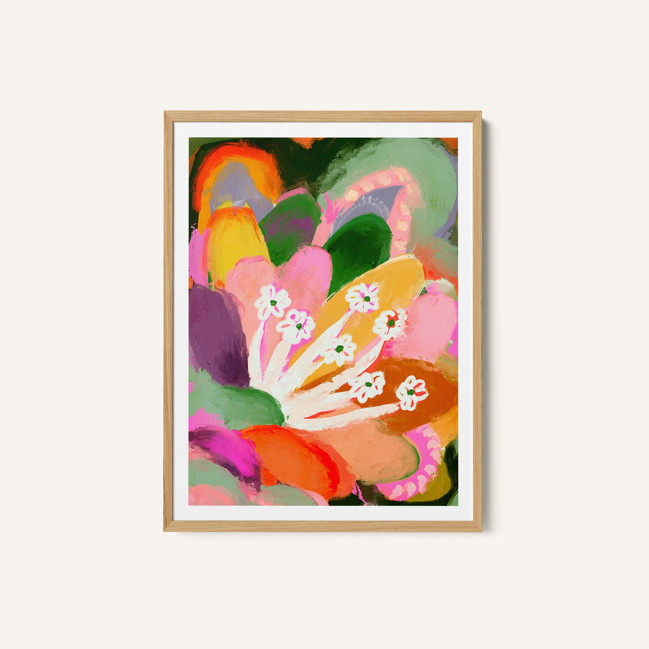 Elevate your space with the serene beauty of nature’s blooms. This art print, A Colorful Bloom, from our Botanical Art Print Collection celebrates organic forms and botanical grace, layering lush floral tones in a carefully curated palette that brings a calm, natural vibrancy to any room. Bring the gentle elegance of nature into your space with this captivating art print.