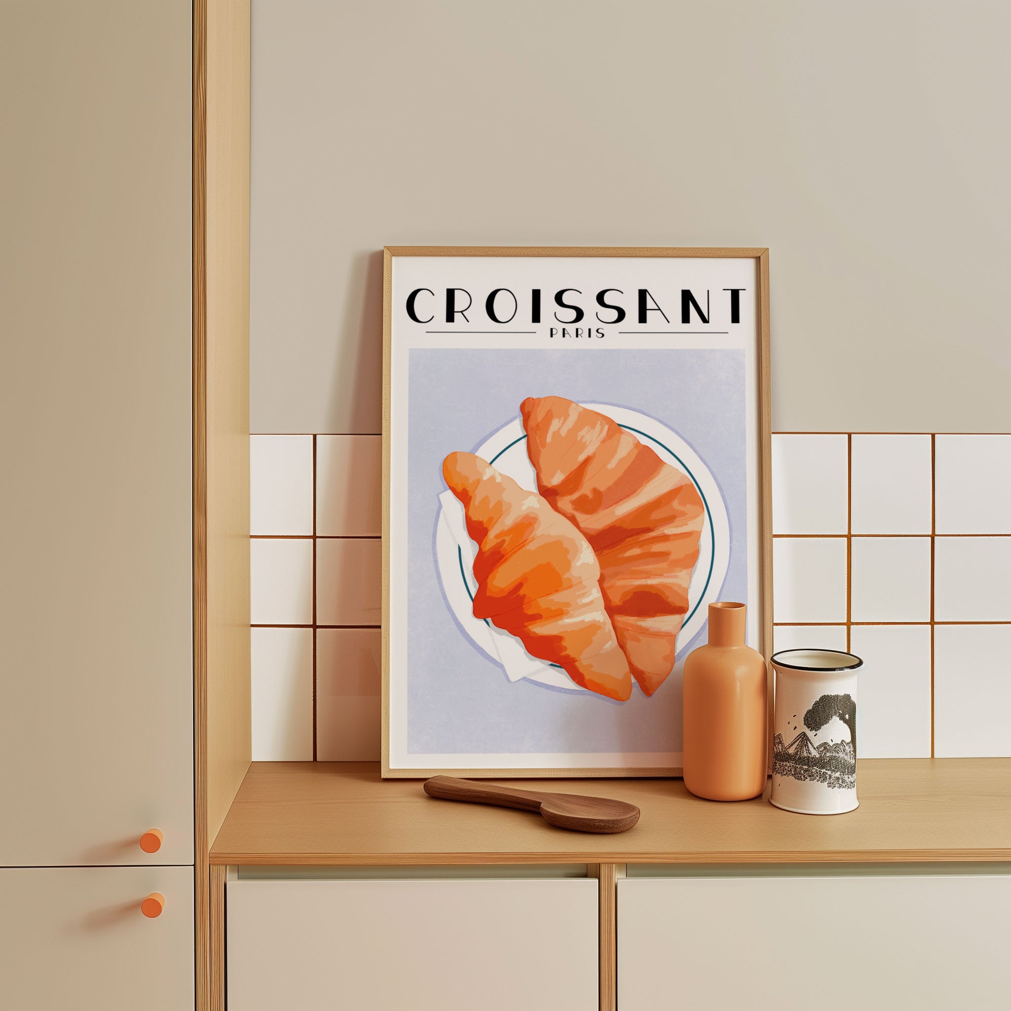 Turn your kitchen or café into a haven of slow mornings and gentle ambiance with this trendy wall art print. Croissant - Paris from our Kitchen and Café Art Prints Collection, featuring clean, pop-art‑style typography. The playful yet graphic design tone fits right in with today’s trending food‑and‑drink decor, matching lines of witty kitchen quotes and minimal illustrations that instantly tell you this is all about coffee, tea or juice.