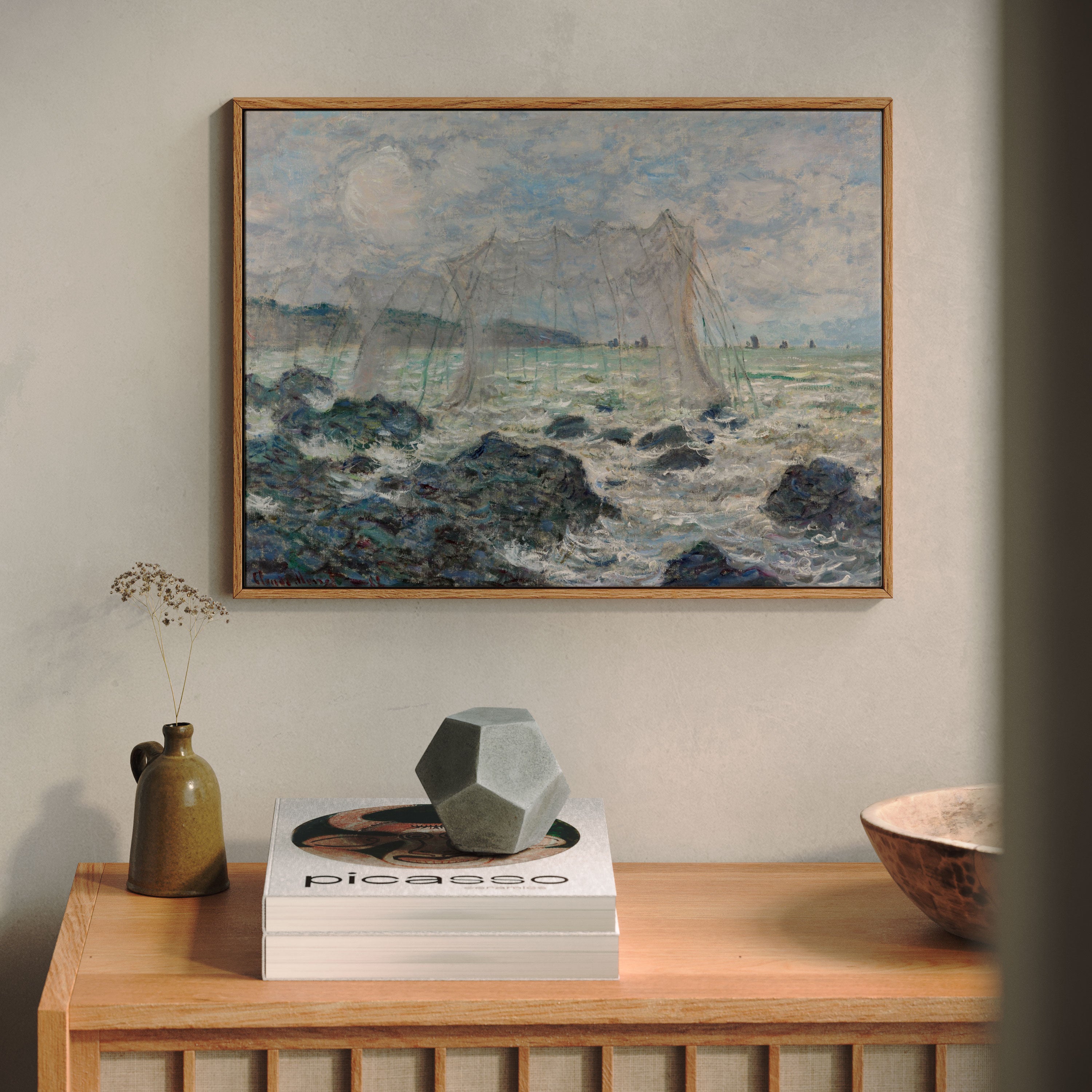 Bring elegance and harmony into your space with this beautiful artwork, The Fishing Nets at Pourvillet, from our Impressionist Fine Art collection. Inspired by the timeless vision of Claude Monet, this piece features a serene blend of natural light, soft colors, and expressive brushstrokes adding a peaceful and sophisticated touch to any interior.