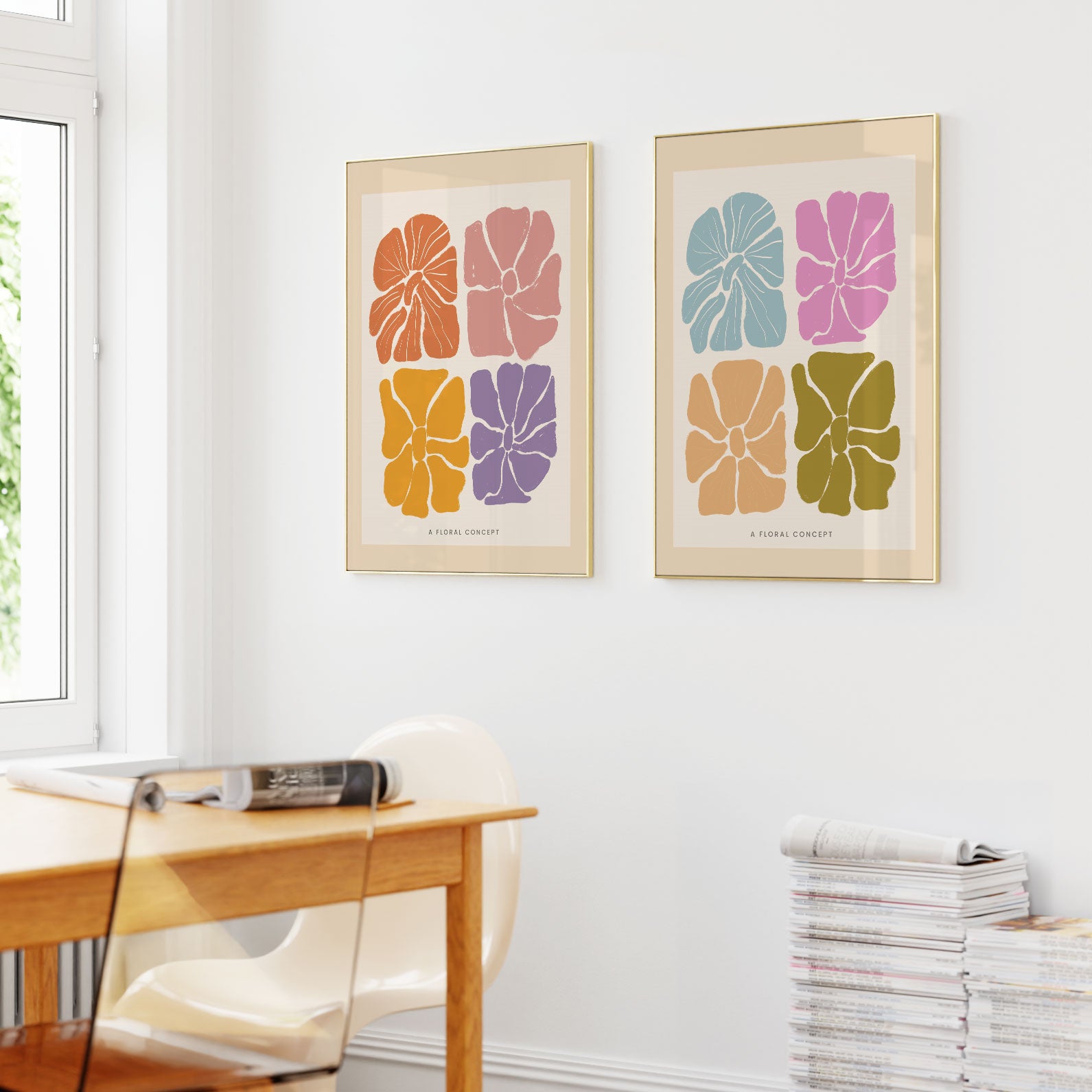 Floral Concept - from our Set of 2 Art Prints Collection is printed on premium-quality canvas or fine art paper with a smooth matte finish and vibrant, long-lasting colors that bring each detail to life. These Set of 2 Wall Art Prints are made with exceptional color clarity and precision, following the same high standards used by professional galleries and art studios. Perfect for art lovers or anyone looking to add a touch of modern botanical elegance to their space, these prints look stunning in any bedroom, living room, bathroom, balcony, or office. Get inspired by our designer-curated art sets, and complete your space with handmade, custom frames crafted in-house for a beautifully finished look.