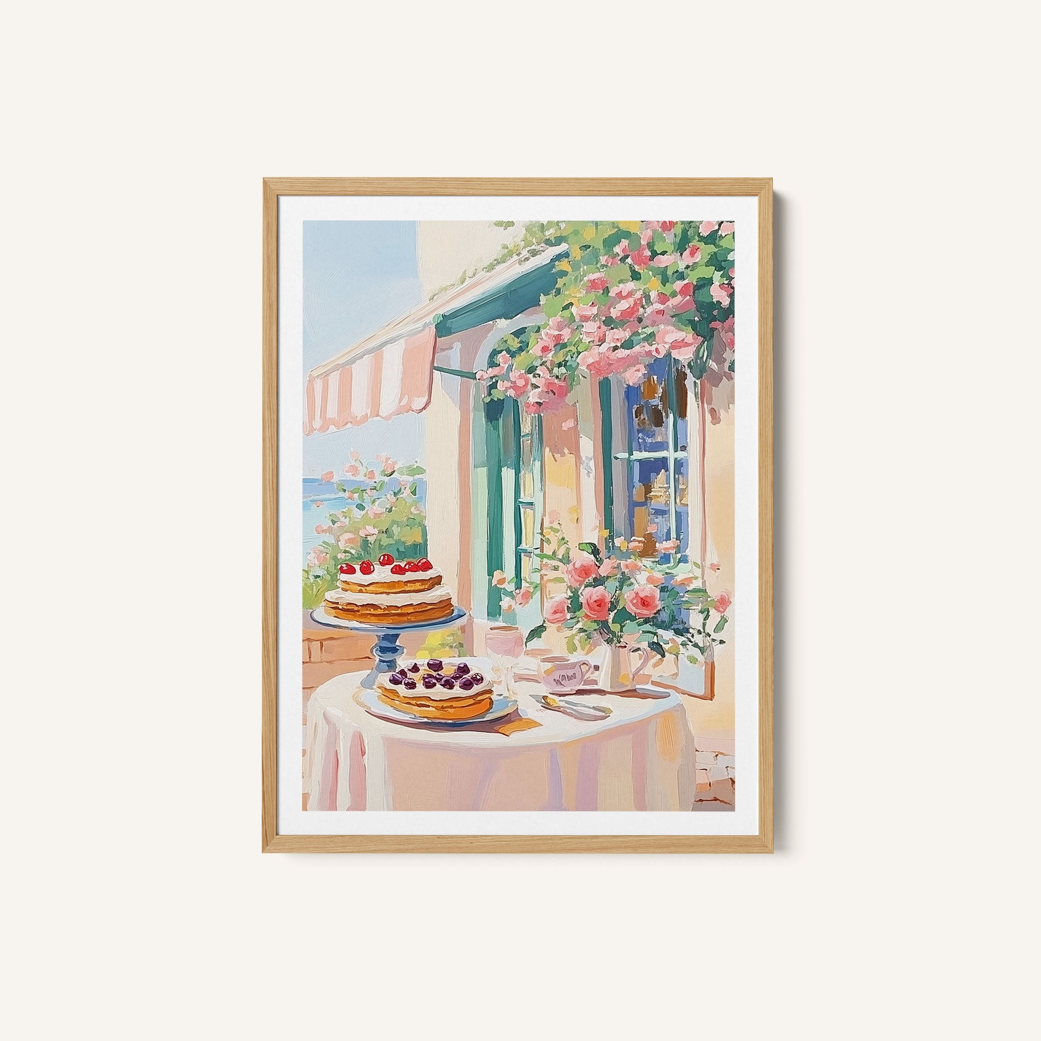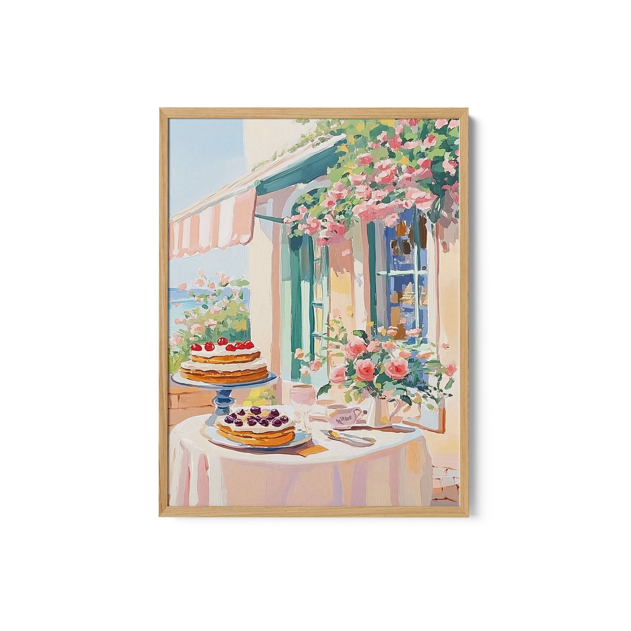 Elevate your space with the serene beauty of nature’s blooms. This art print, A French Dessert Cafe, from our Botanical Art Print Collection celebrates organic forms and botanical grace, layering lush floral tones in a carefully curated palette that brings a calm, natural vibrancy to any room. Bring the gentle elegance of nature into your space with this captivating art print.