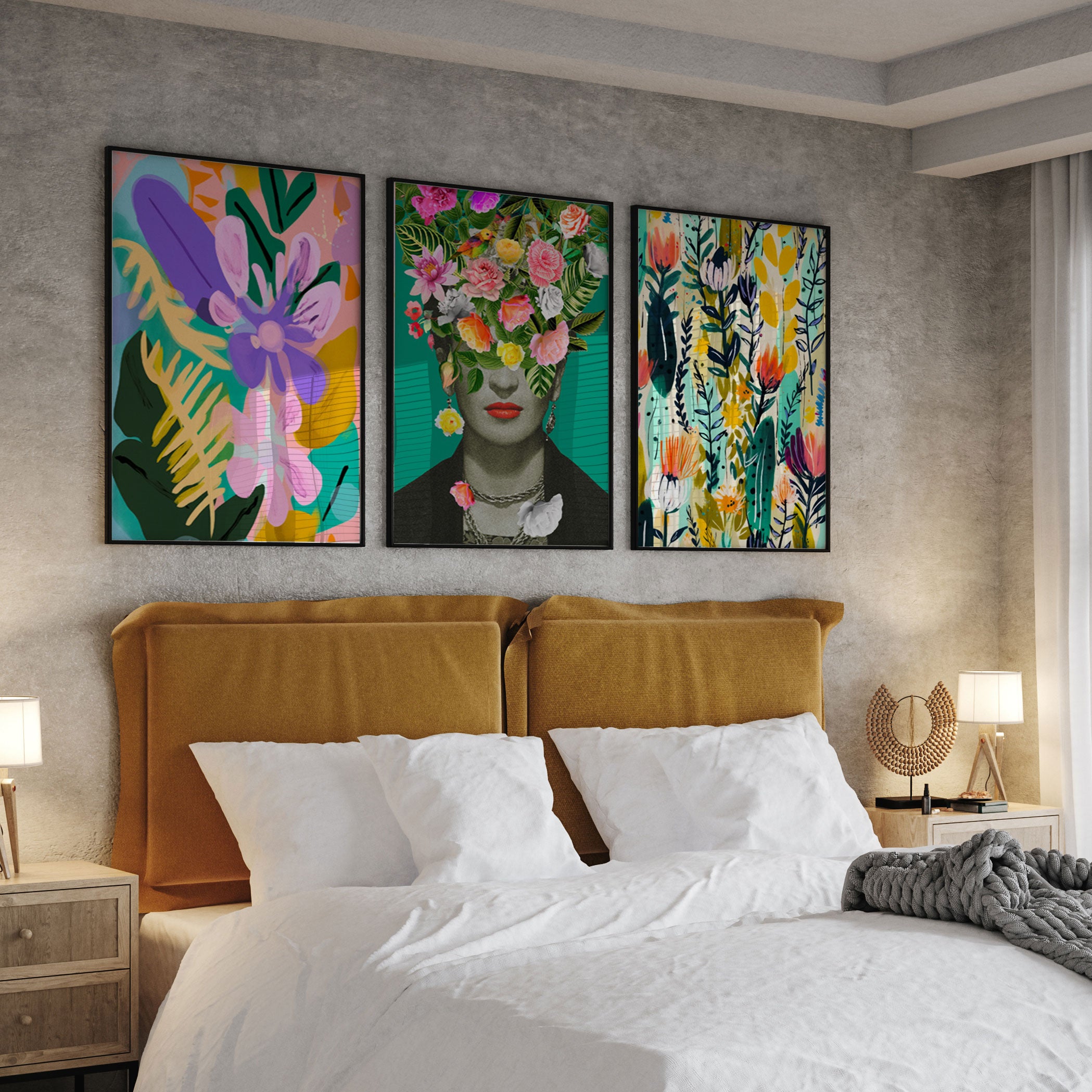 Frida Kahlo, Floral - from our Set of 3 Art Prints Collection is printed on premium-quality canvas or fine art paper with a smooth matte finish and vibrant, long-lasting colors that bring each detail to life. These Set of 3 Wall Art Prints are made with exceptional color clarity and precision, following the same high standards used by professional galleries and art studios. Perfect for art lovers or anyone looking to add a touch of modern botanical elegance to their space, these prints look stunning in any bedroom, living room, bathroom, balcony, or office. Get inspired by our designer-curated art sets, and complete your space with handmade, custom frames crafted in-house for a beautifully finished look.