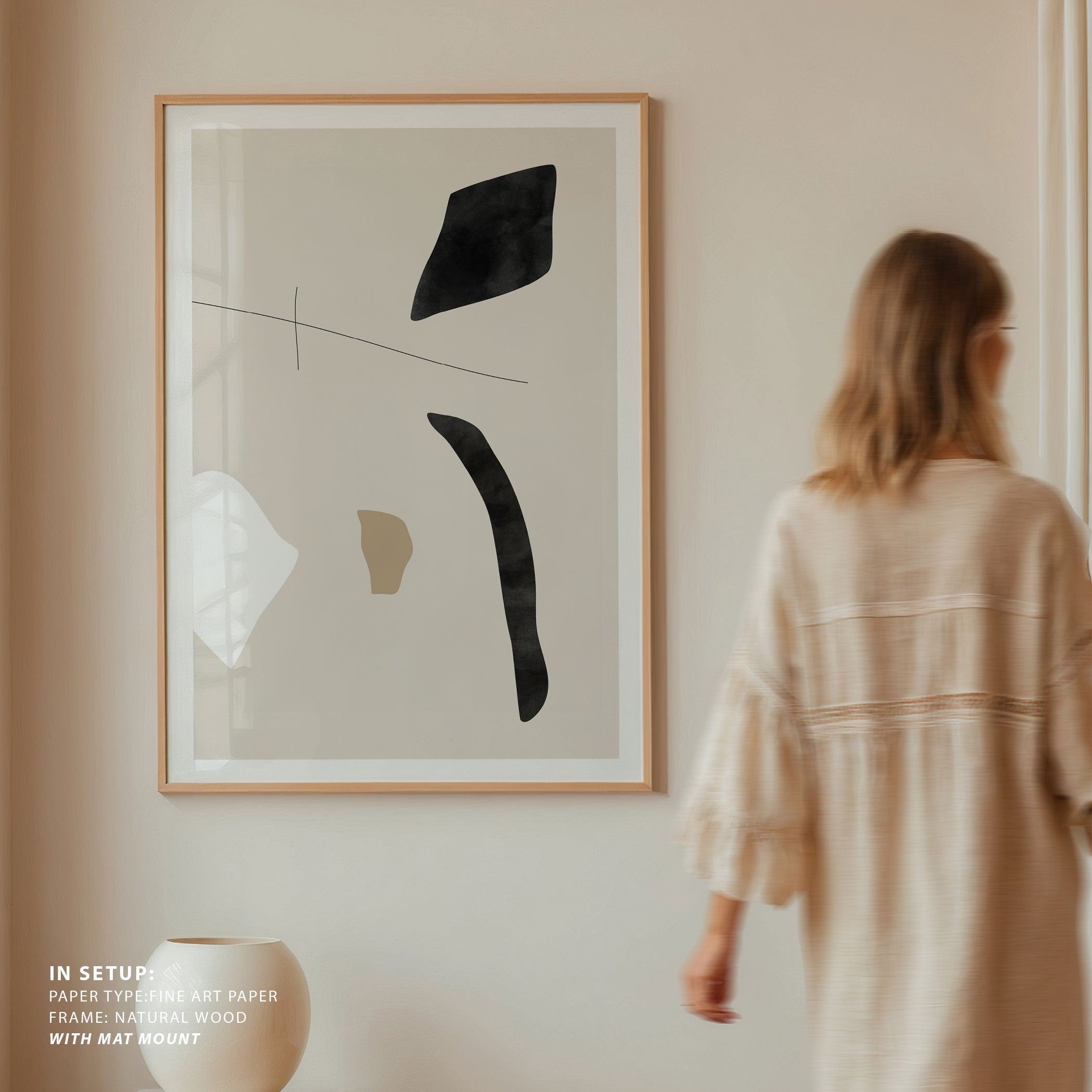 Transport your space to a simpler, quieter era with this neutral abstract art print. This art print, Graphic Shapes and Lines Poster from our Minimalist Neutral Art Prints Collection, reimagined as a modern, tranquil composition. Picture soft, flowing shapes in muted tones of beige, ivory, and sand, gently layered against a warm, minimalist background. The scene feels peaceful and timeless, as if you’re looking through a window into stillness, calm, and quiet reflection.