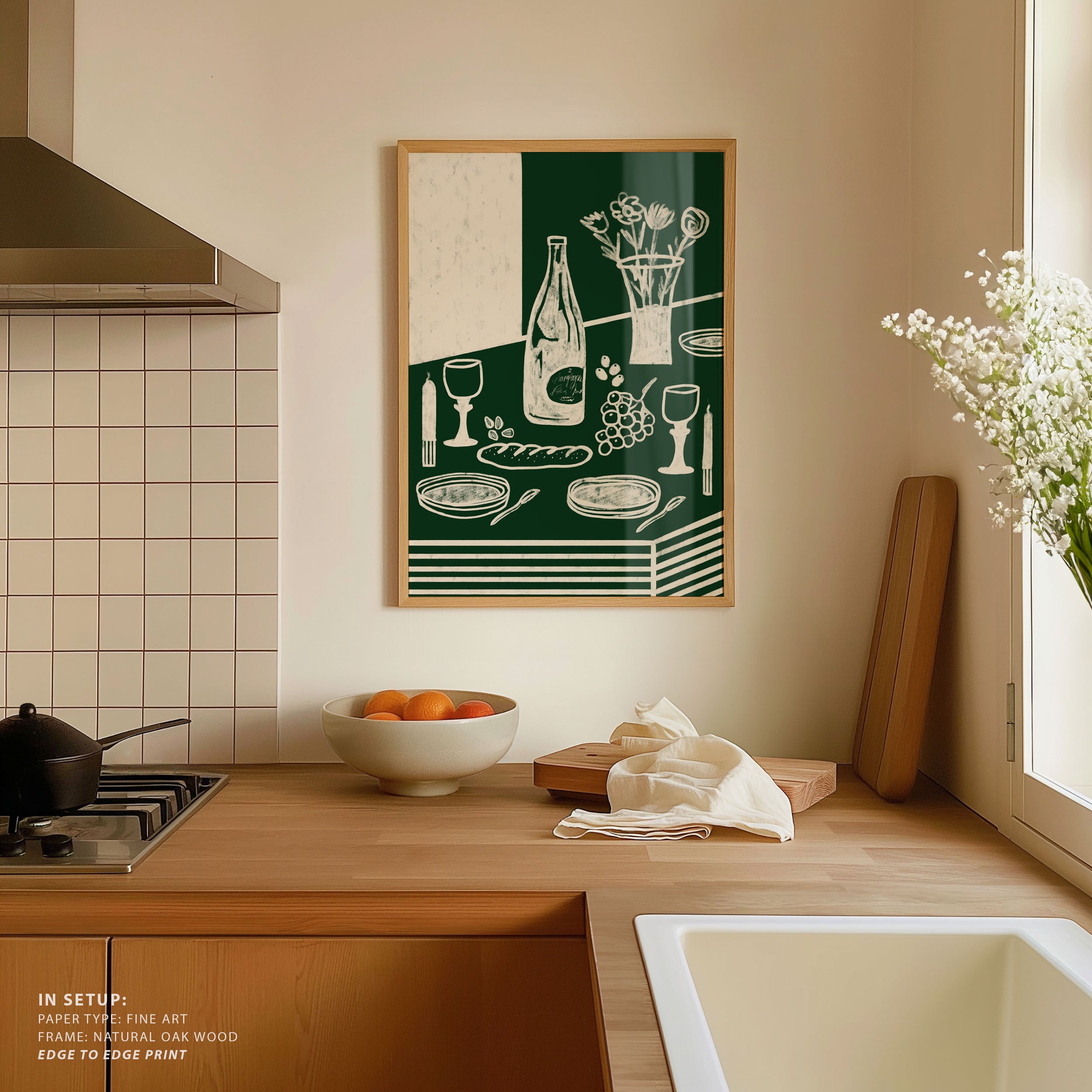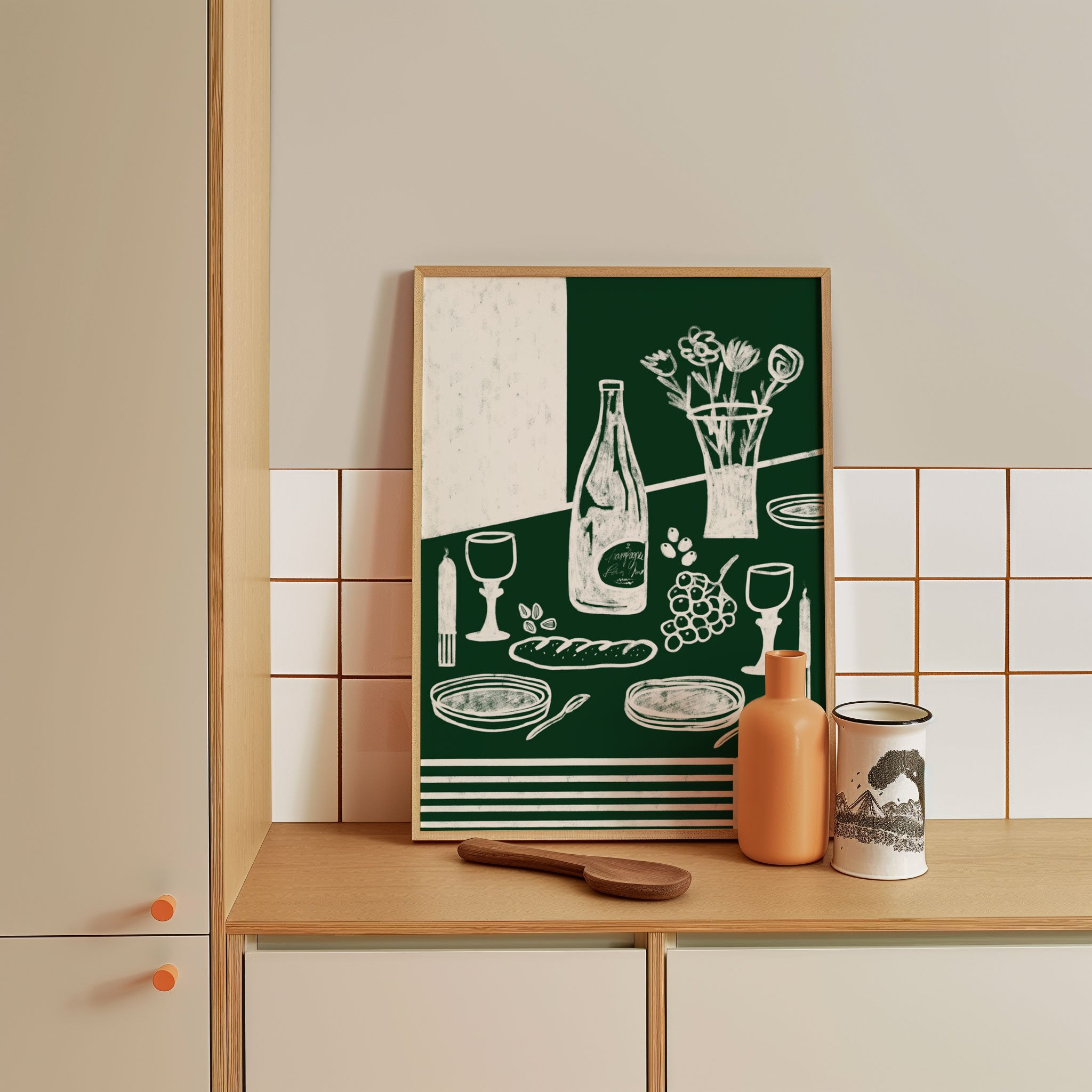 Transform your kitchen, café, or favorite serving space into a corner of creative flair with this trendy wall art print. Green Harmonia from our Kitchen and Cafe Art Collection features an artfully inspired illustration that exudes a bold yet minimalist vibe. This modern artwork brings a stylish, design-forward mood that pairs perfectly with today’s love for culinary spaces that reflect art, individuality, and taste. Ideal for anyone who appreciates beauty, self-expression, and contemporary decor in the heart of the kitchen or the soul of a café.
