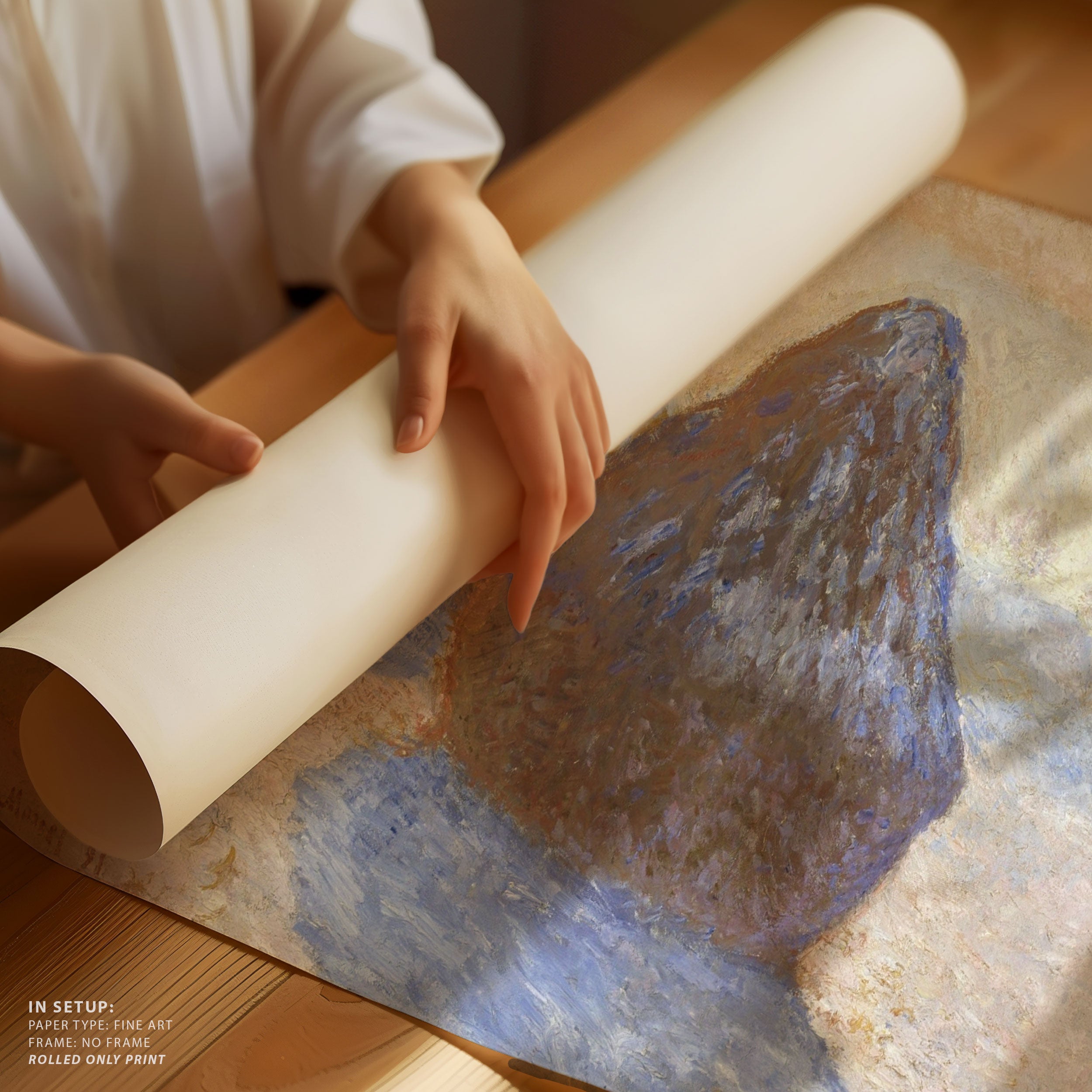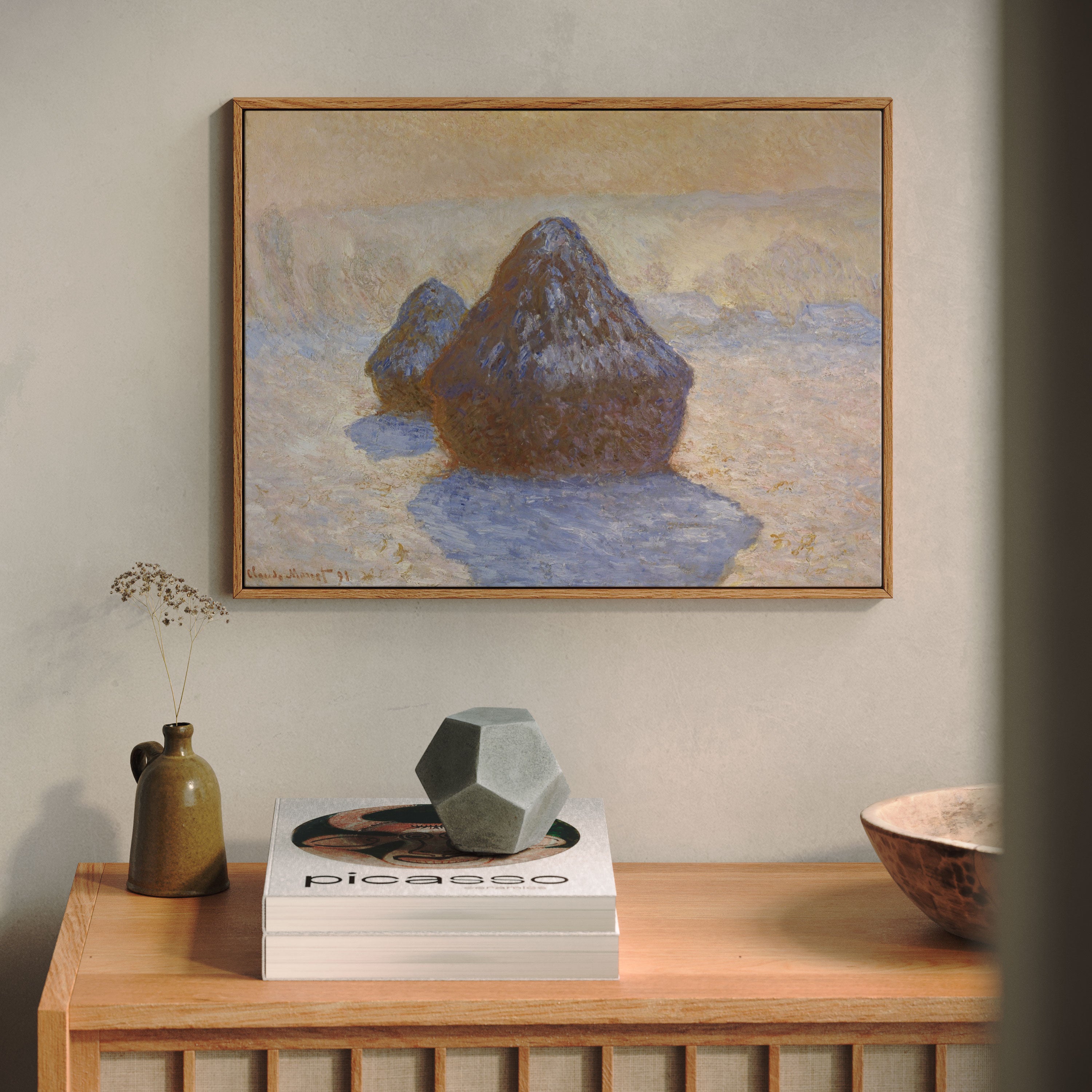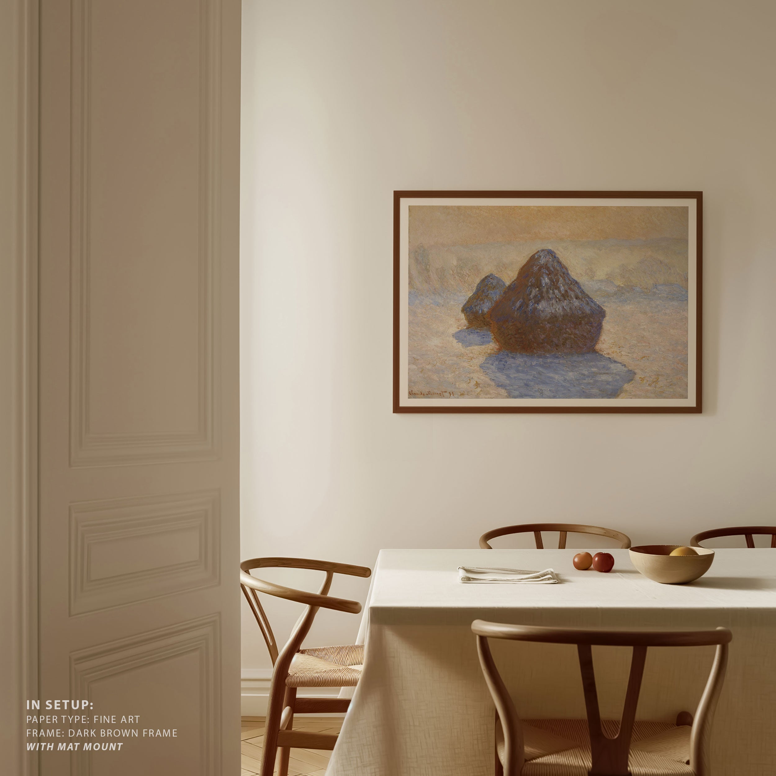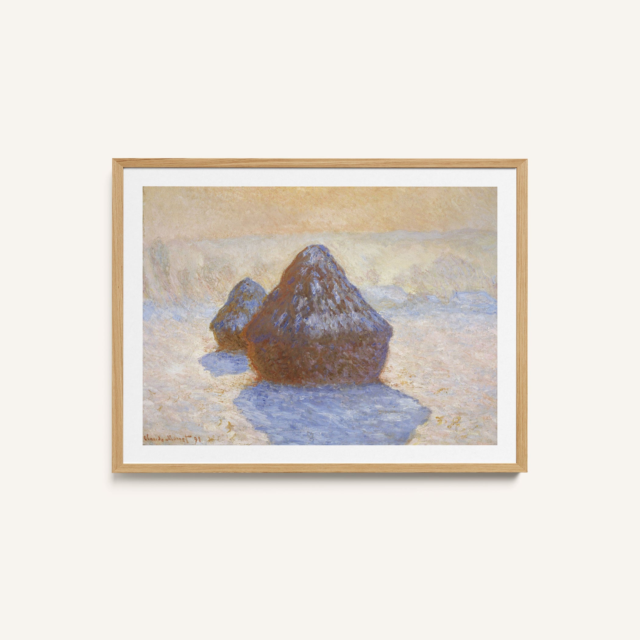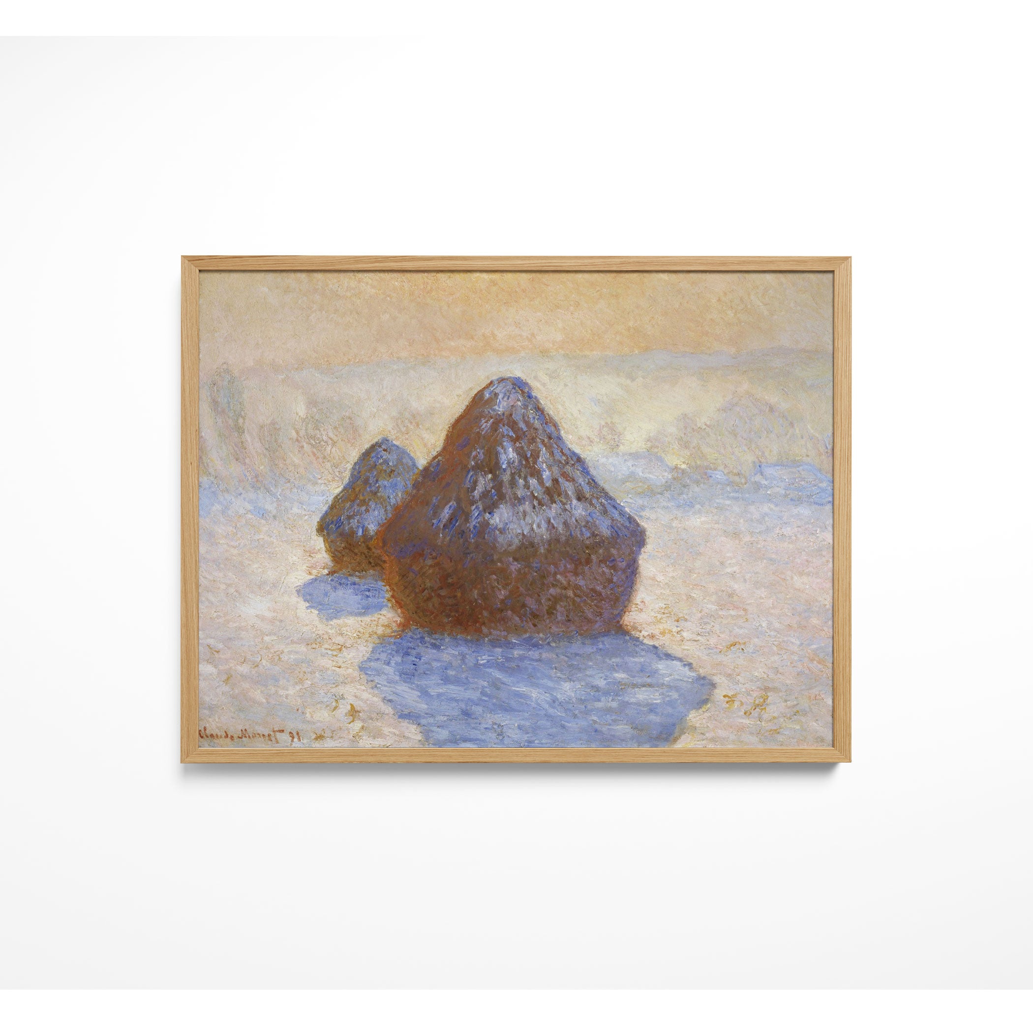 Bring elegance and harmony into your space with this beautiful artwork, The Haystacks- Snow Effectt, from our Impressionist Fine Art collection. Inspired by the timeless vision of Claude Monet, this piece features a serene blend of natural light, soft colors, and expressive brushstrokes adding a peaceful and sophisticated touch to any interior.